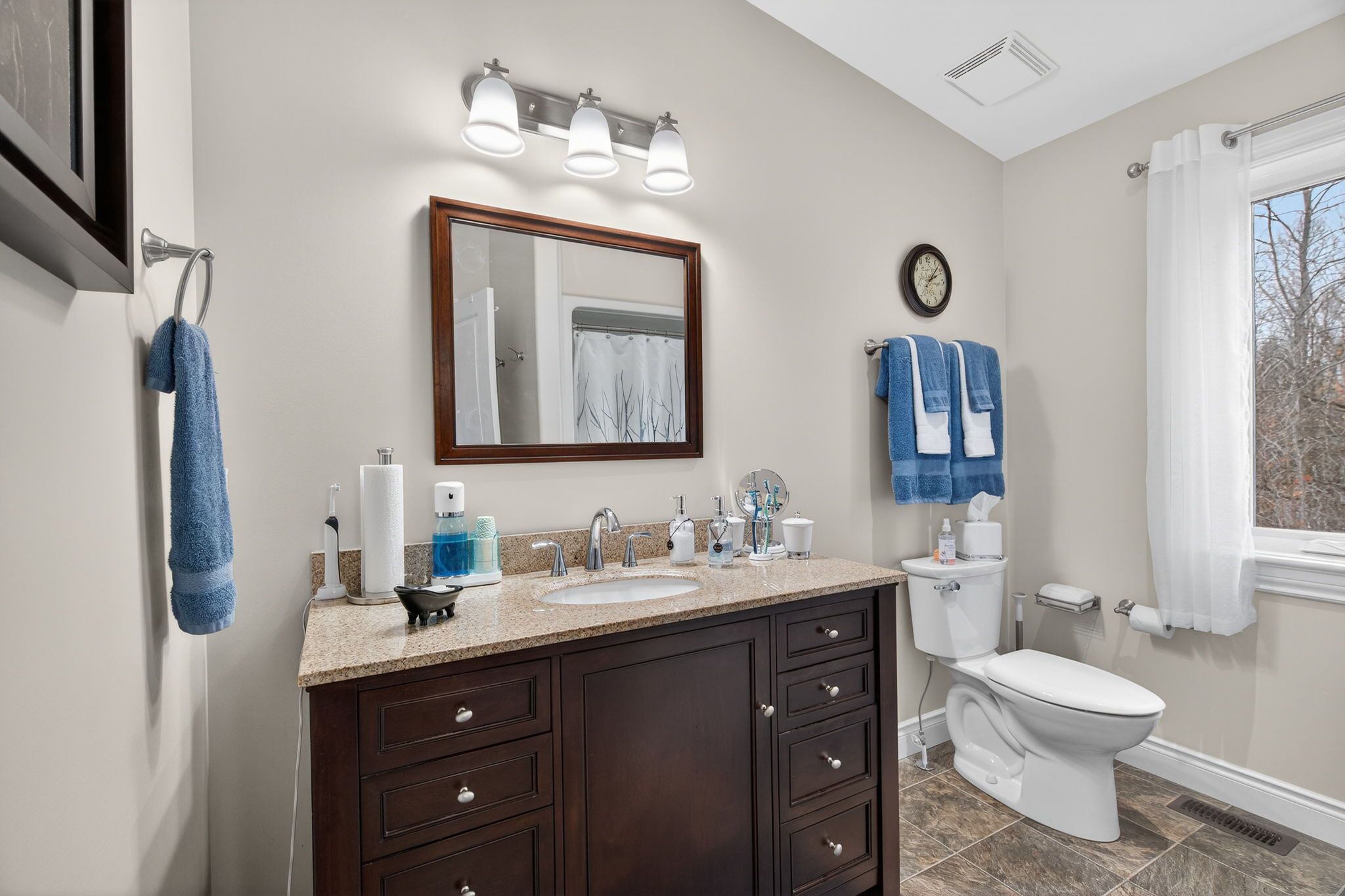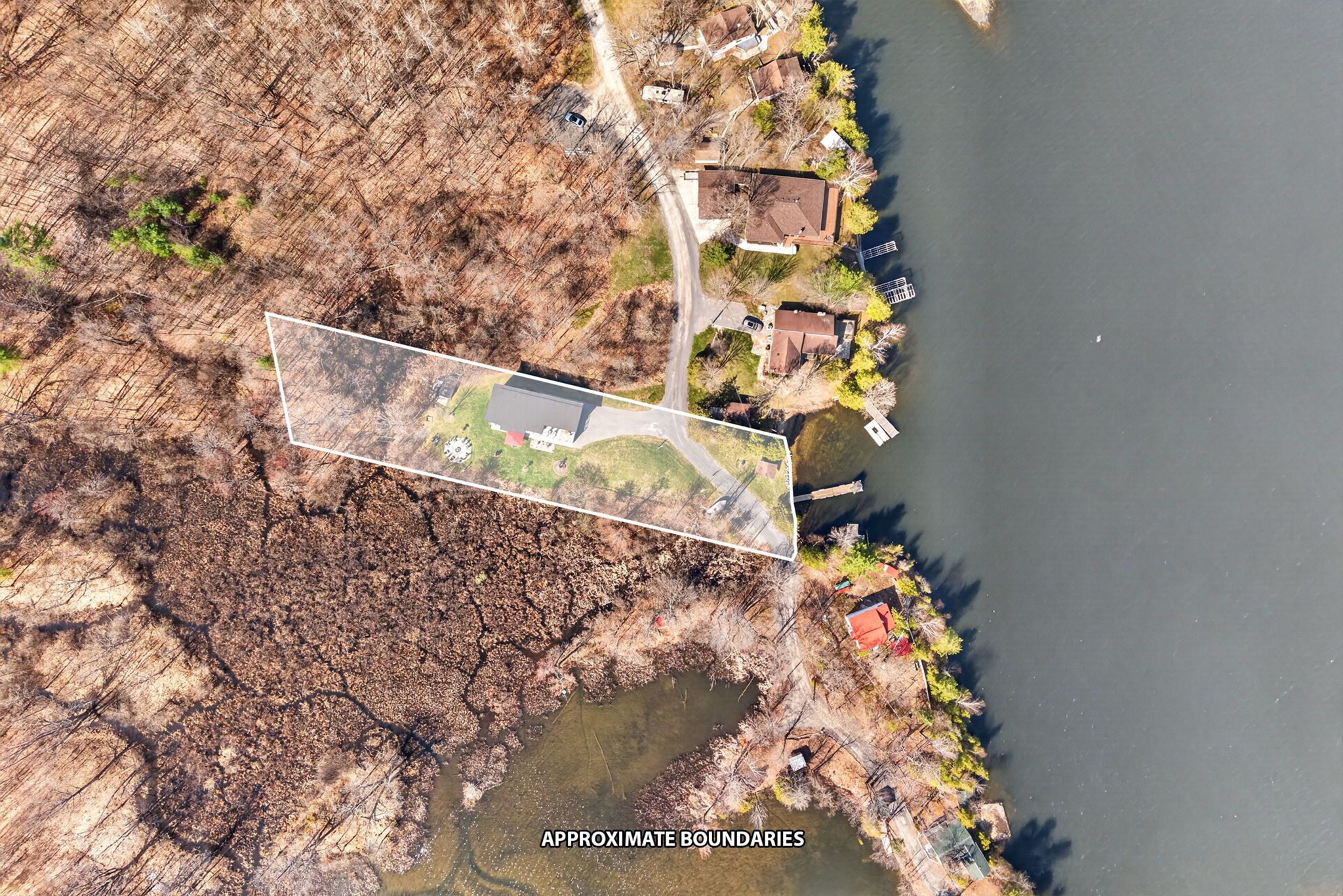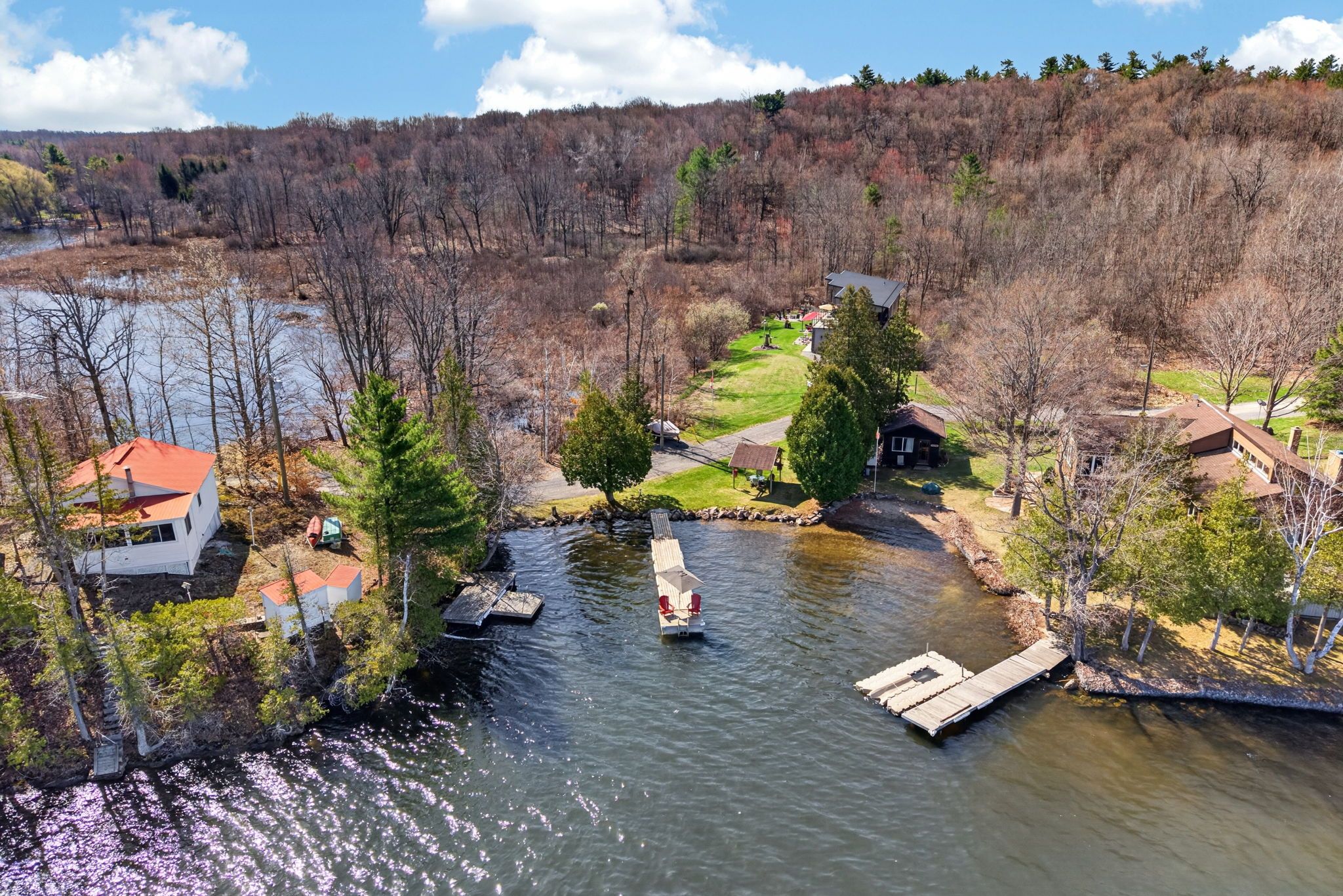 • Set on 85 ft. of waterfront with a permanent dock for recreation.