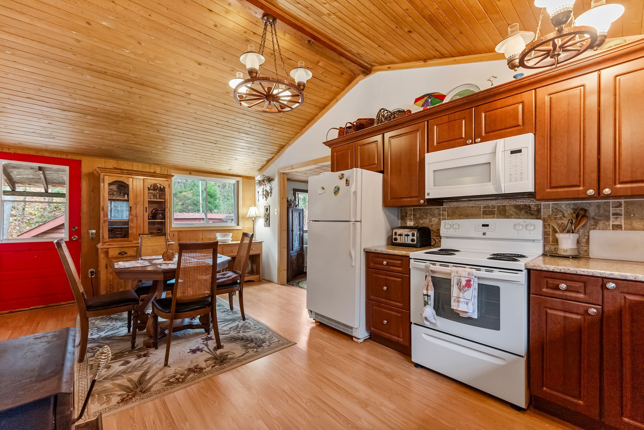 • Interior features vaulted pine ceilings and a quality kitchen.