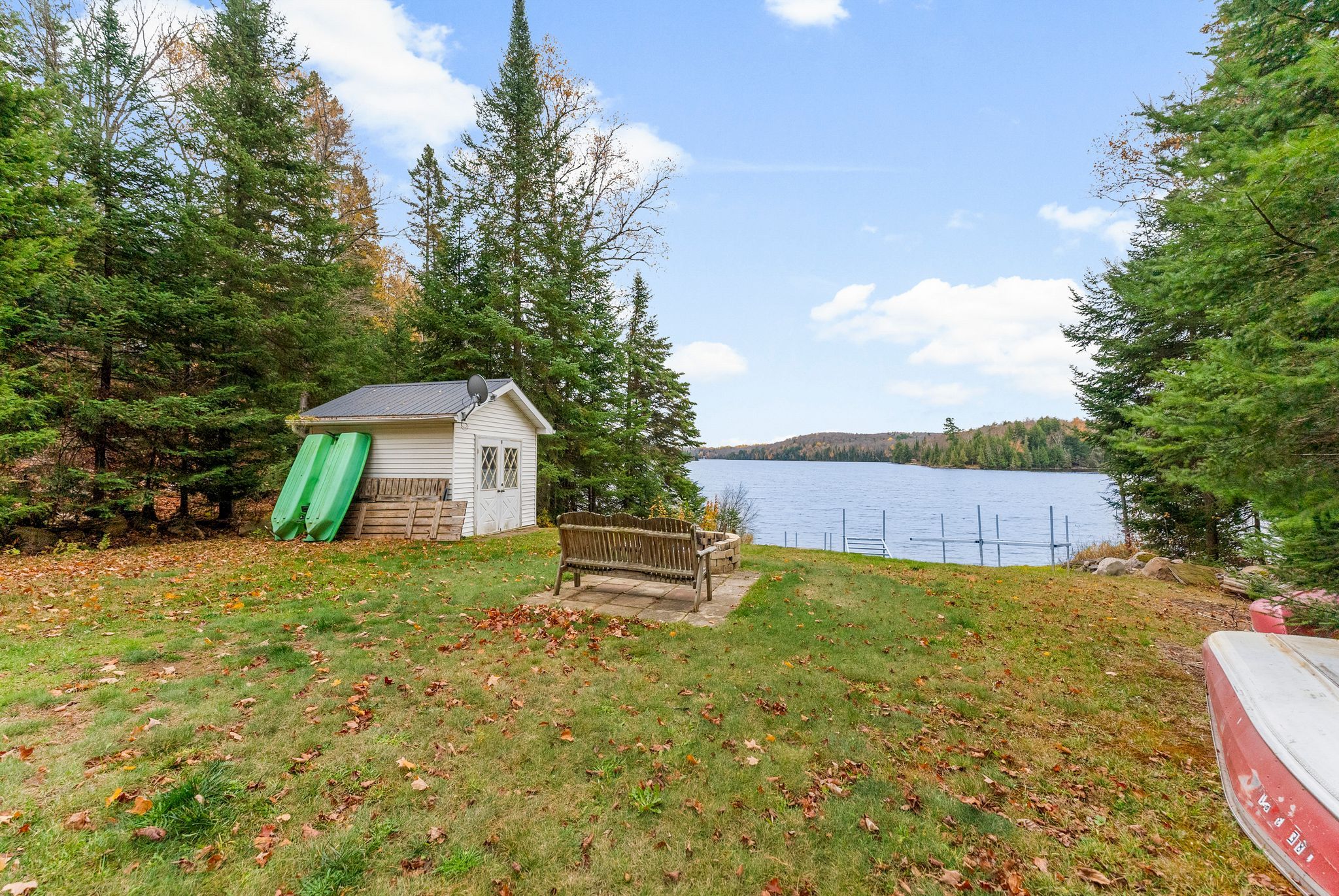 The owner welcomes you now to hastings highlands & salmon trout lake located just north of bancroft, ontario to this 2 bedroom fully furnished cottage. Come see for yourself. Blue sky, lush forest, clean blue waters, peace & quiet! Sit a while by the campfire, hike/play... Or just stay cosy inside! This secluded fully furnished well appointed cottage with 150' of great south facing shoreline - 1 & 1/2+ acre lot, adjacent to crown land on a privately maintained driveway just off year round mooney road on salmon trout lake is now for sale ! This 2 bedroom cottage with interior vaulted pine tongue & groove ceilings, drywalled with wood trim interior, quality kitchen/combined dining room, spacious living room overlooking the lake & two-tier deck, maintenance free hardboard siding together with brick accent , vinyl clad thermal windows, 100 amp breaker system, septic system and lake water with a heated water line , aluminum docking system , shoreline utility building (10', x 12), detached change house/storage building (21'x 8' ), 20 'x 22' drive shed and much more!.