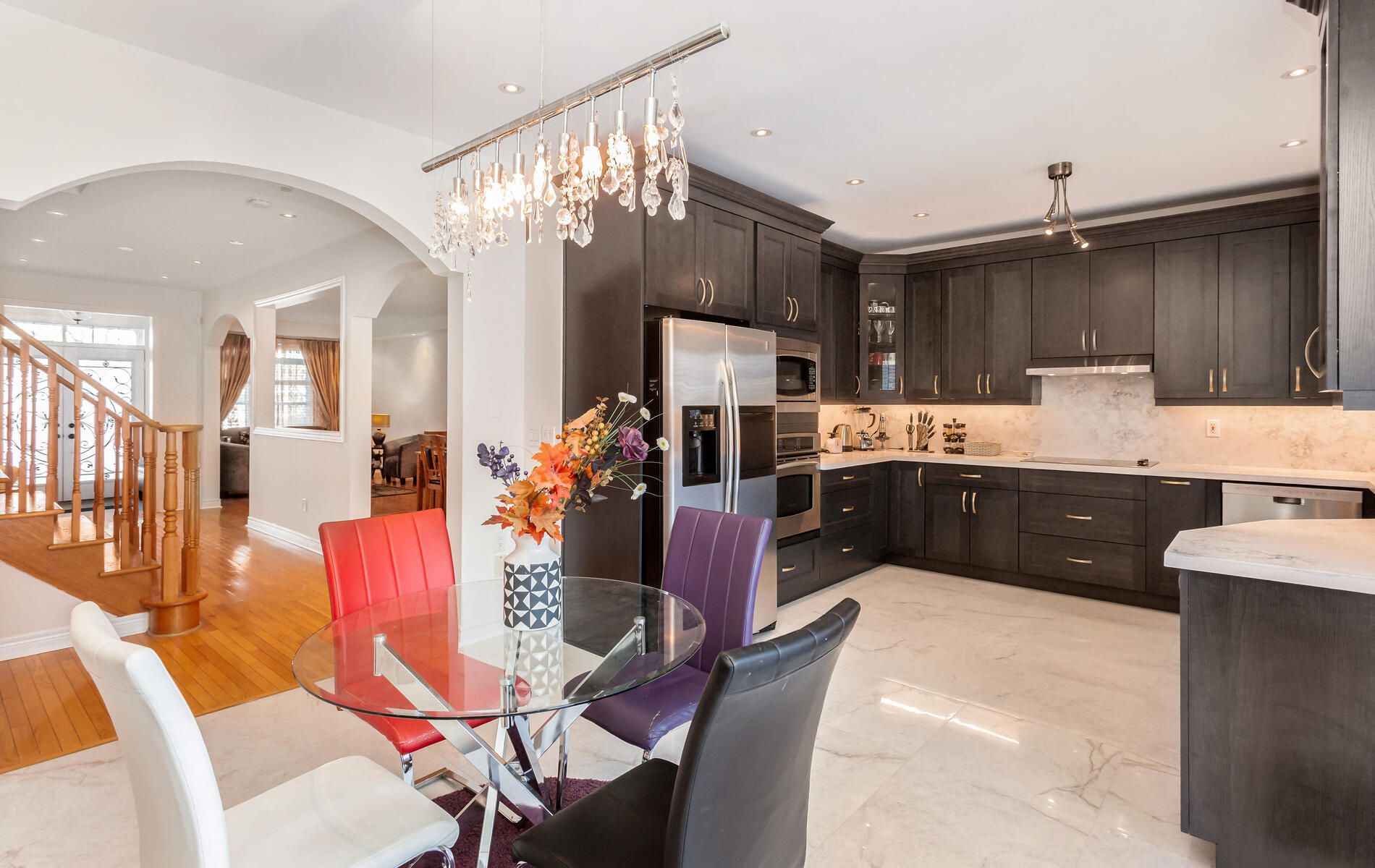 Welcome to this beautifully upgraded, turn-key executive detached home in the heart of churchill meadows. Offering approx. 3,100 sqft above grade plus nearly 1,000 sqft in the fully finished basement. Step inside to an impressive open-concept design featuring a grand open-to-above foyer and family room, enhanced by crystal chandeliers and a bright, airy flow that feels both elegant and welcoming. The home has been thoughtfully updated throughout with new tile flooring on the main level, a brand new powder room, and a full-house fresh painting. At the heart of the home is the stunning new modern kitchen, complete with quartz countertops, a matching quartz backsplash, brand new stove, built-in appliances, new dishwasher, and upgraded sink and faucets designed for both everyday living and entertaining. Upstairs, enjoy beautifully updated washrooms featuring new countertops, new sinks, and new faucets. California shutters throughout the entire property and curtains on every window. Timer-controlled exterior lighting for a polished finish day and night. The fully finished basement offers exceptional versatility, featuring a new kitchenette and expansive living space ideal for extended family, a home gym, the ultimate entertainment space or added living flexibility. This home also delivers the peace of mind buyers value most, with major updates including a new roof, new furnace, new air conditioner, and new water heater. Outside, the property is just as impressive showcasing a professionally renovated front and backyard, automatic sprinkler system, new front interlock, and a backyard built for summer nights with a gazebo perfect for hosting and relaxing. Complete with a double car garage, this is the definition of move-in ready. Set in one of mississauga's most desirable family communities, close to top-rated schools, parks, shopping, transit, and major highways. This is the one that checks every box.