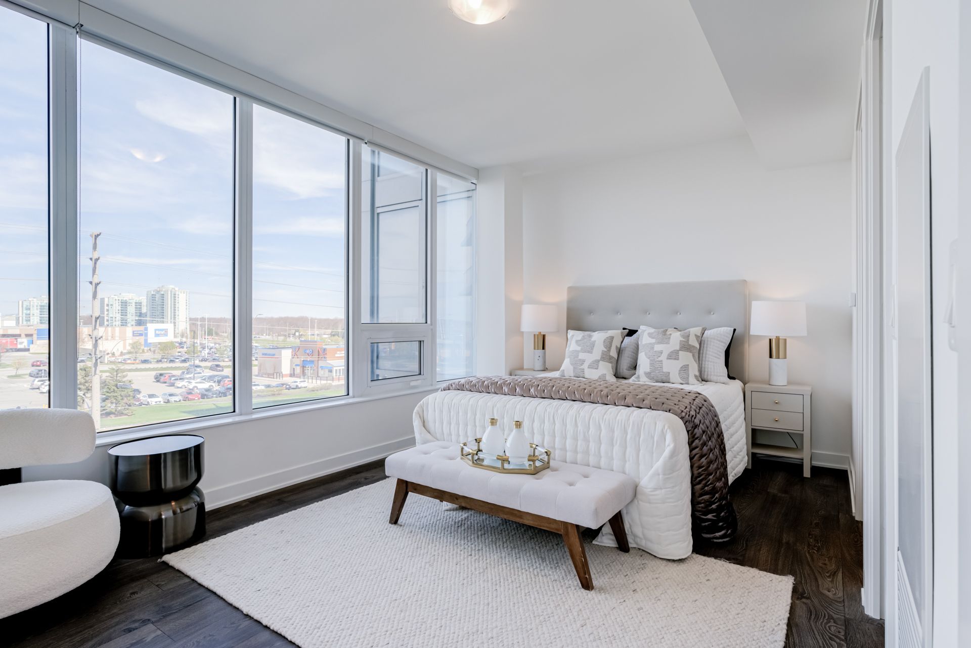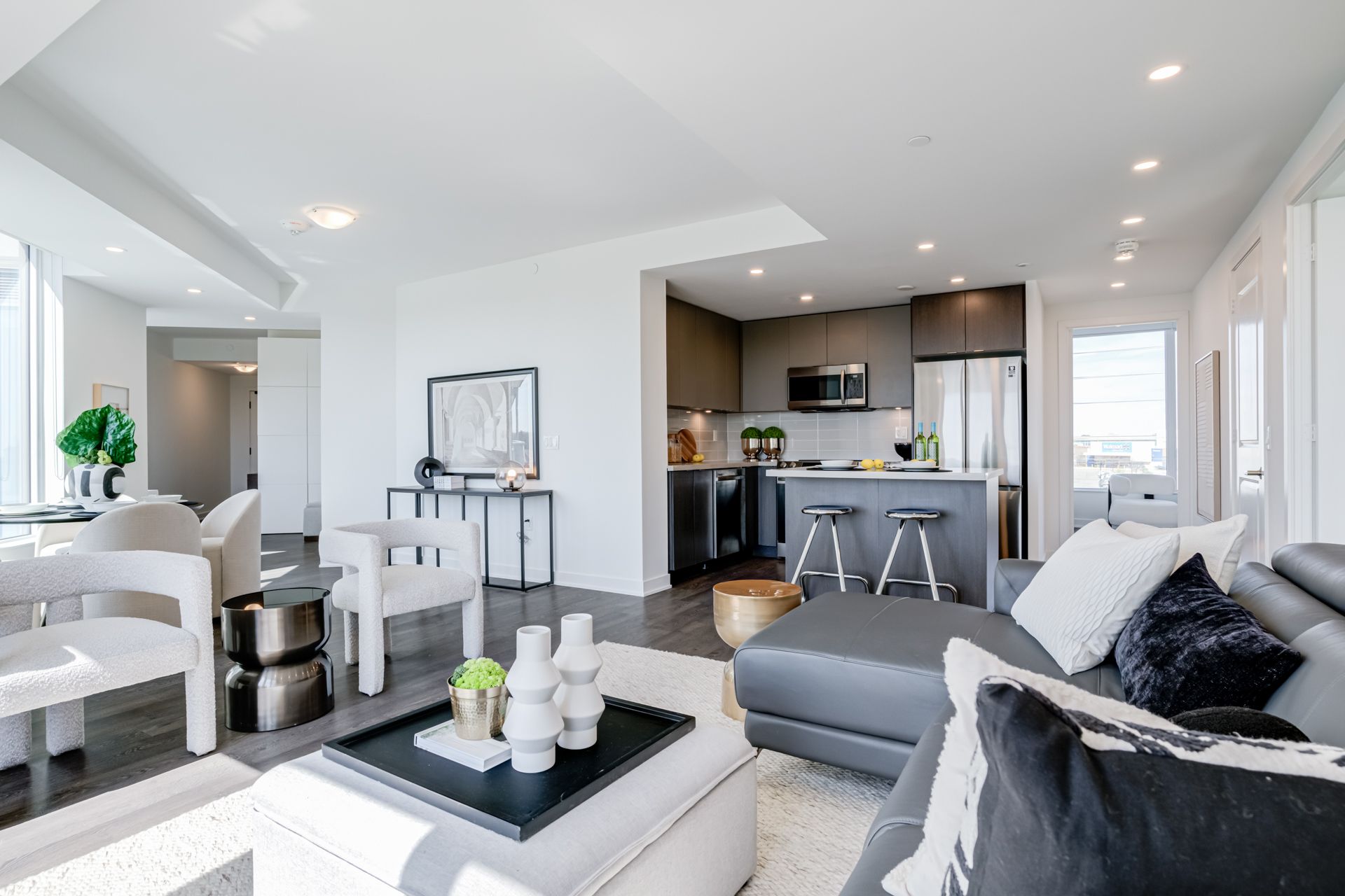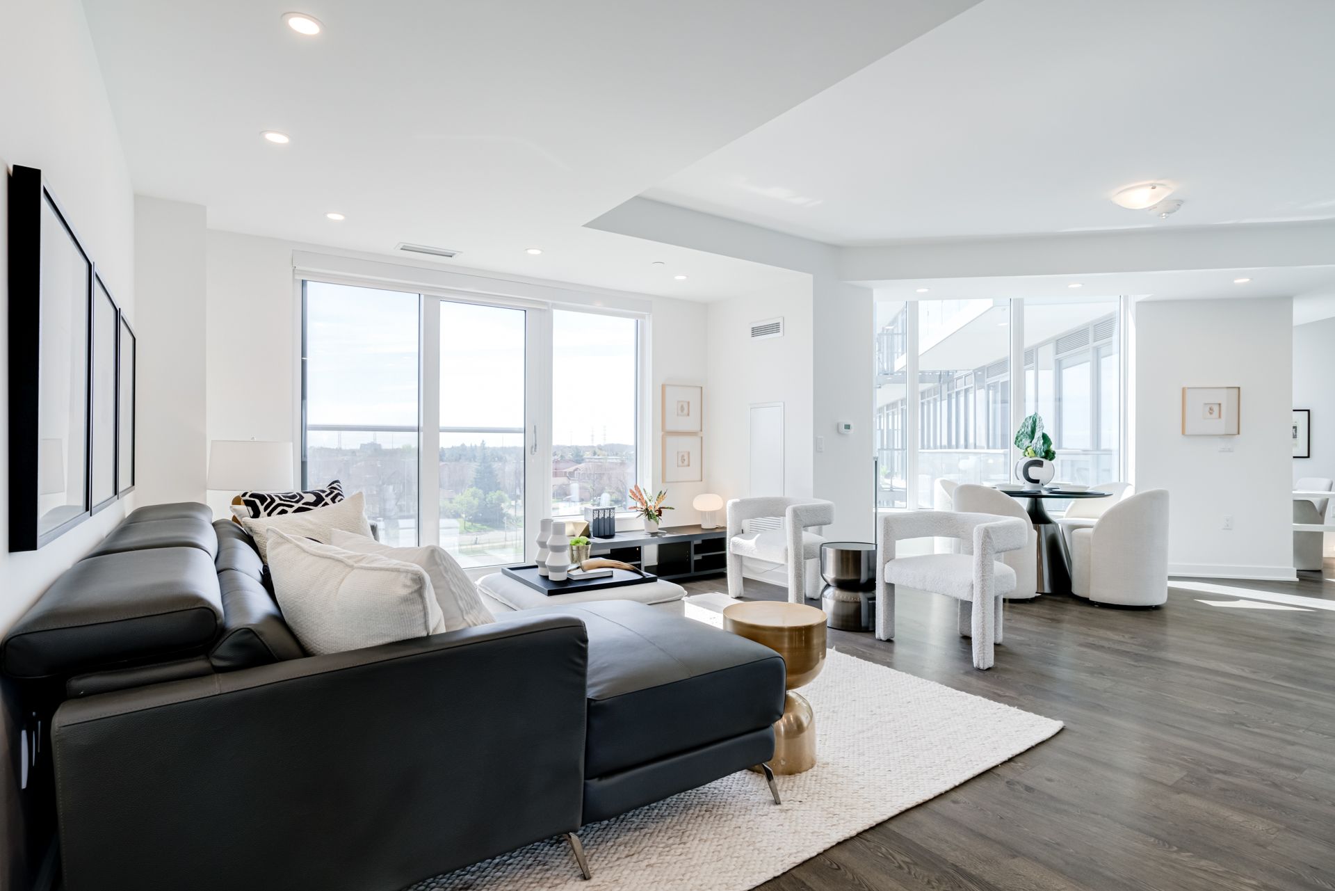 • Modern finishes with 9ft ceilings and wall-to-wall windows.