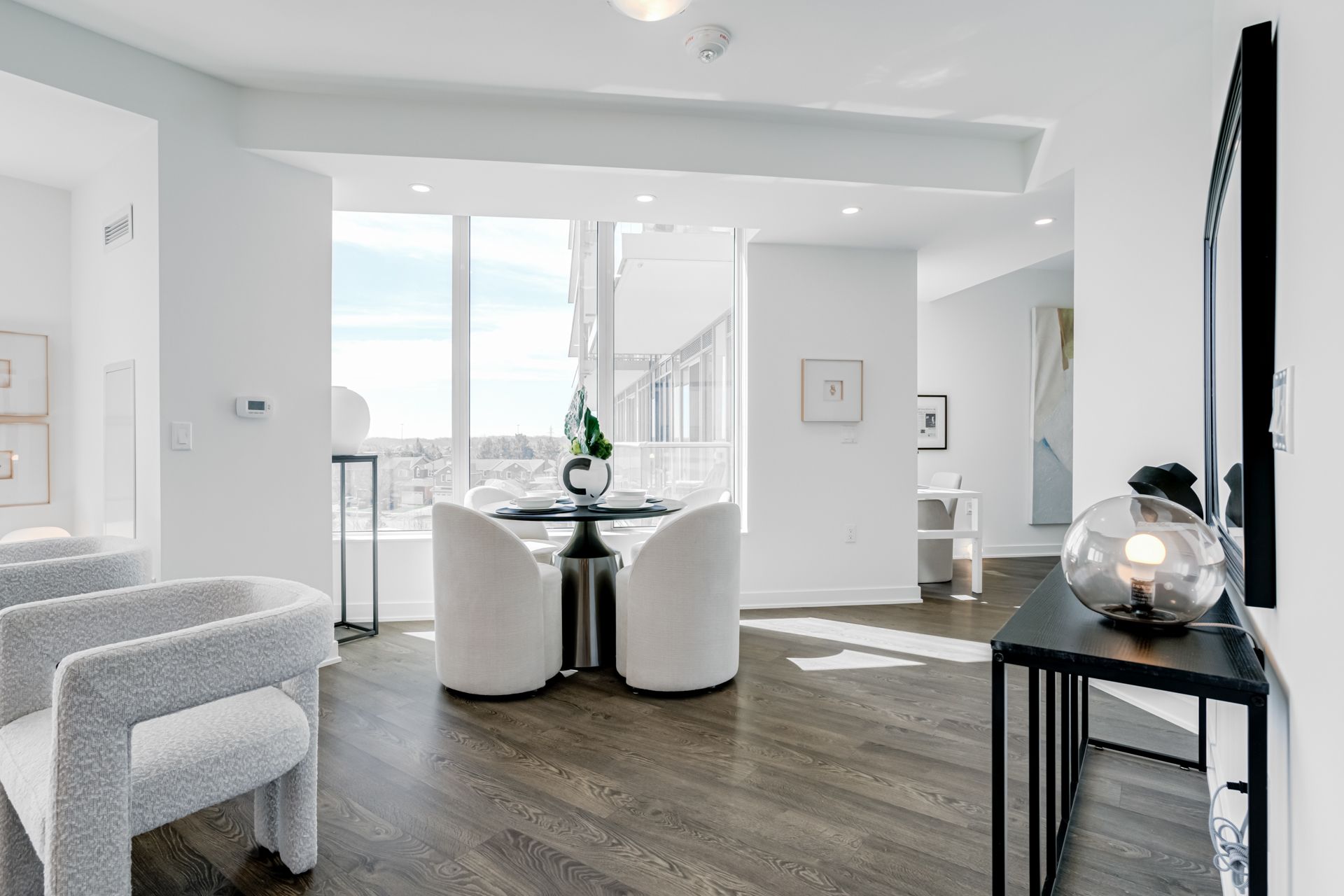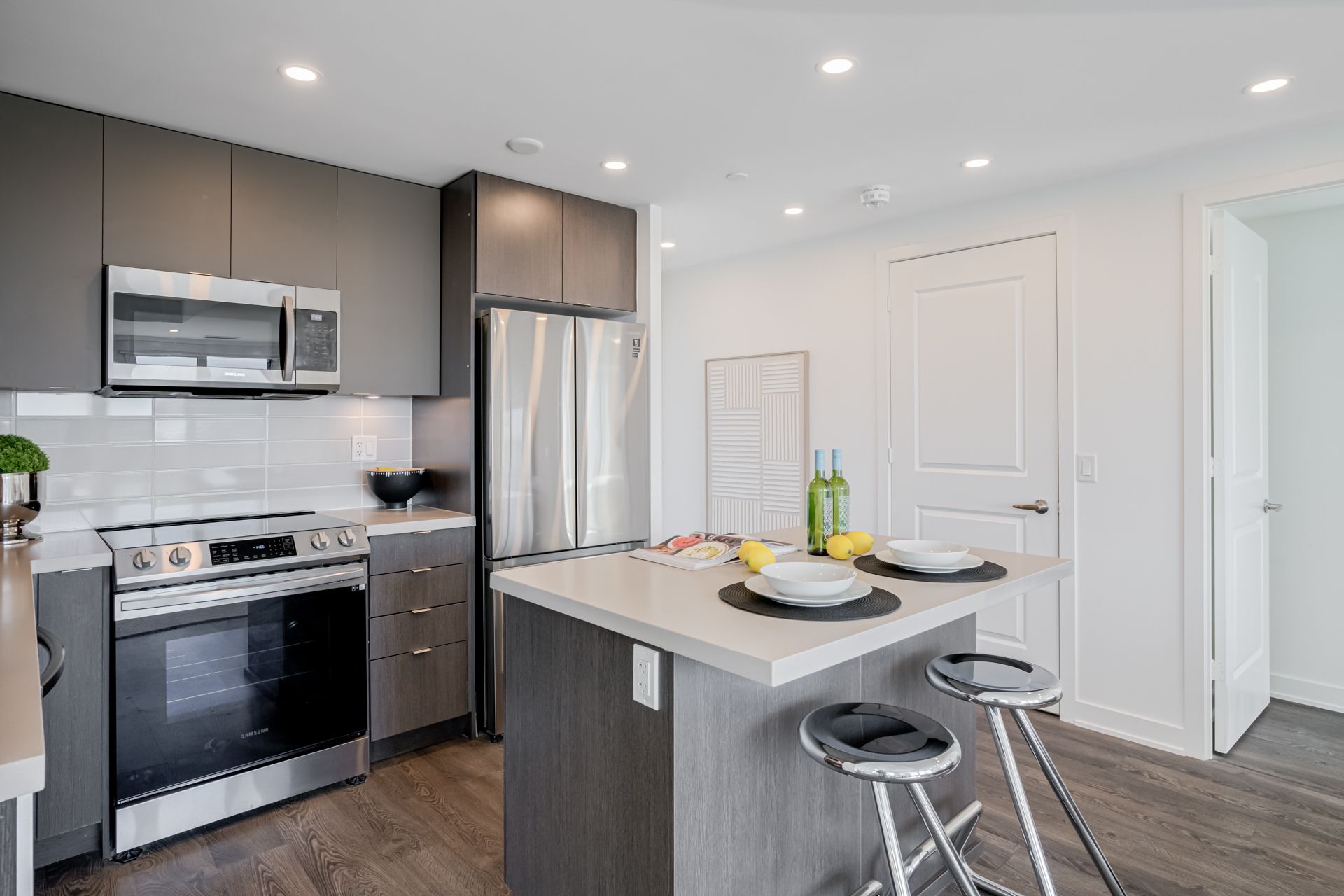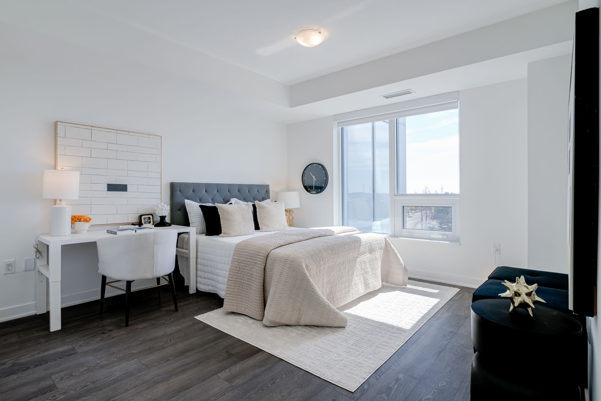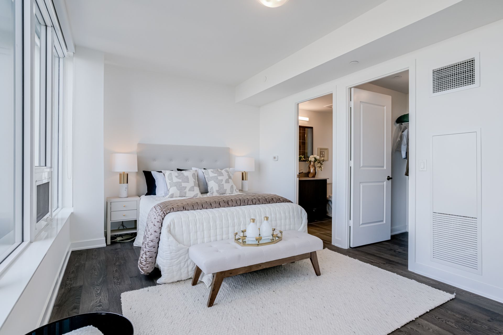 • Modern finishes with 9ft ceilings and wall-to-wall windows.
