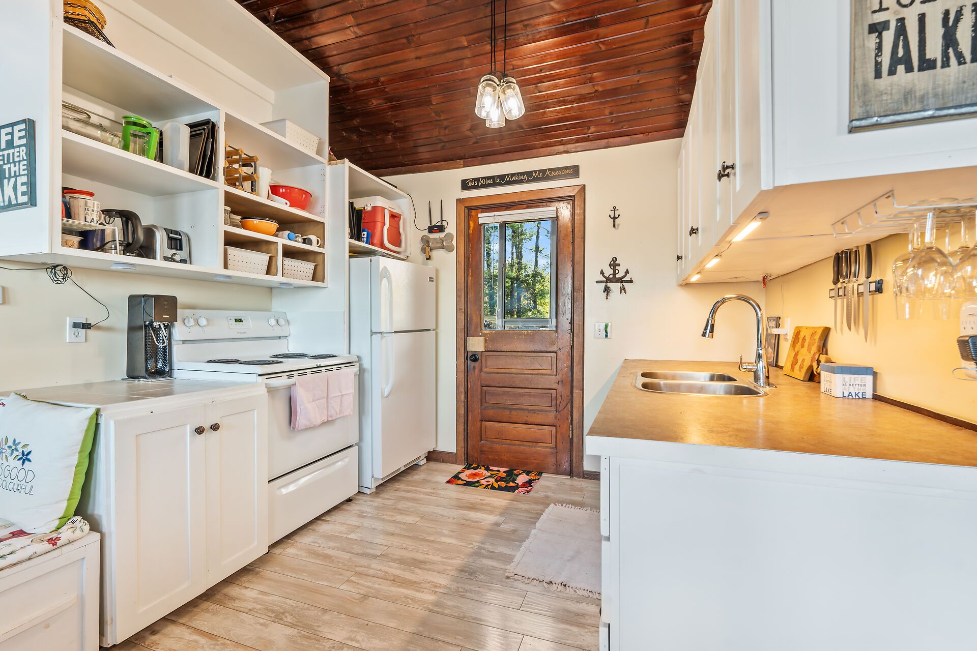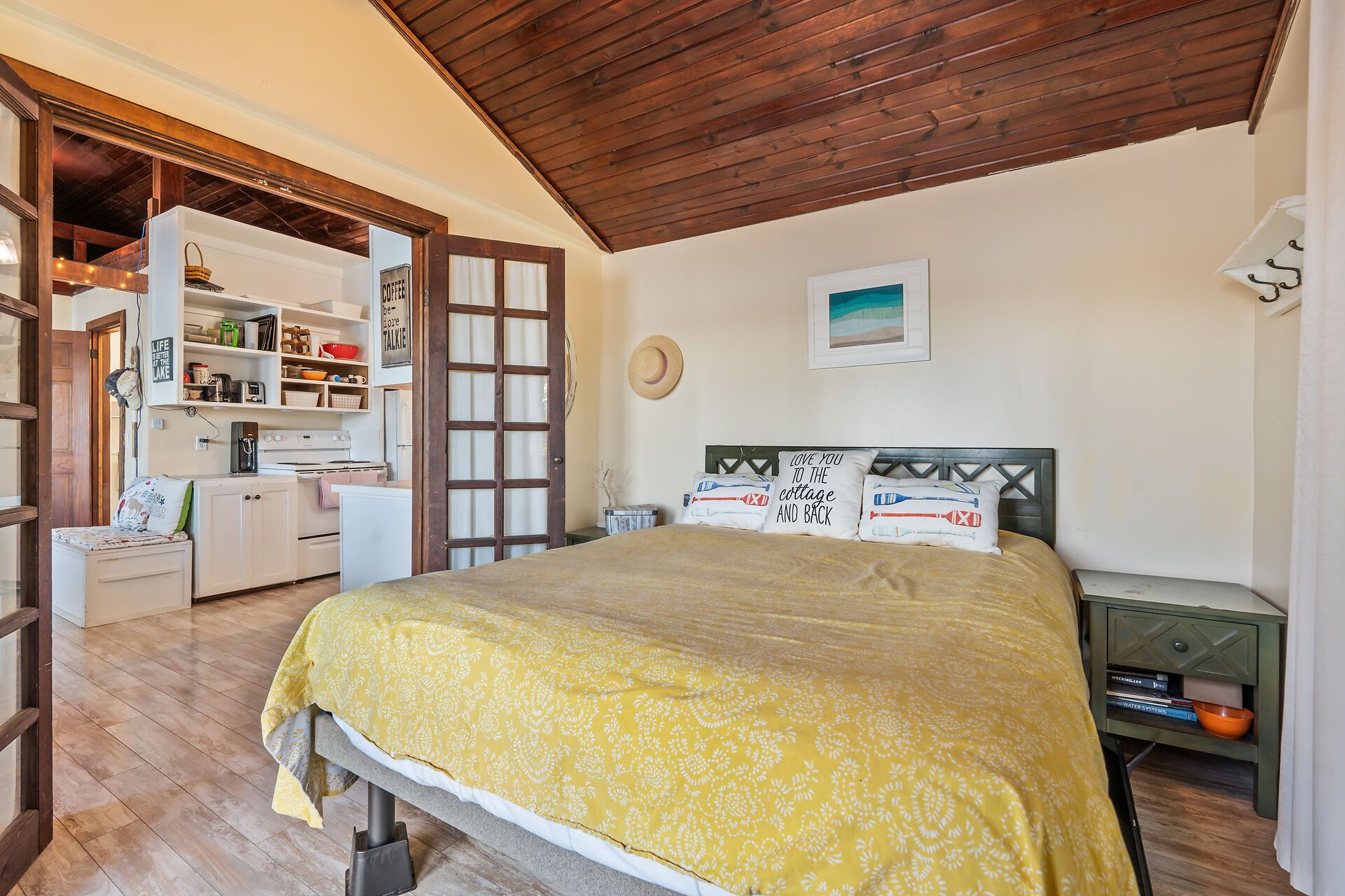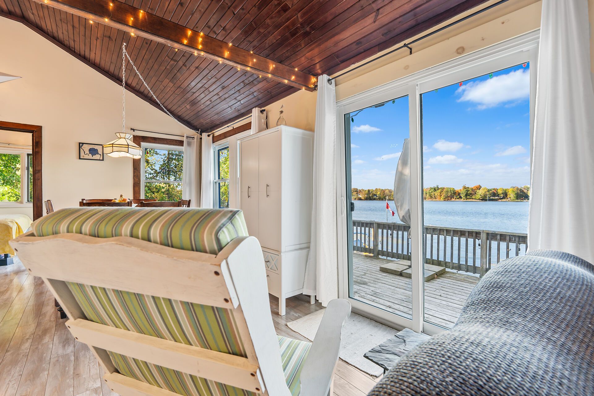 Charming turnkey cottage on lyndhurst lake - 465k lyndhurst road, lyndhurst, ontario. Welcome to your lakeside retreat! This 2-bedroom, 1-bathroom, open concept cottage with vaulted ceilings in the living room and primary bedroom is located on lyndhurst lake. The cottage is bright and airy with large windows that bring the outdoors in, creating the perfect space to relax or entertain. Enjoy your morning coffee and gorgeous sunsets on the oversized private deck overlooking the lake or spend it around the firepit with friends and family. Two additional buildings on the property are: 10' x 16' storage shed, and 9' x 12' office/bunkie with 60-amp power and hard-wired internet cable with a beautiful view of the lake. An engineered stone seawall and steps were installed (2019) that gives easy access to the water's edge and dock. The gradual sandy/rocky shore is great for kids and dogs playing in the water, or easy access to get in/out of a canoe/kayak. This property is 2. 57 acres located in a quiet, peaceful setting on lyndhurst lake in leeds and thousand islands. The property is ideal for spending time with family, birdwatching, relaxing on the deck or dock, jumping off the raft, or canoeing/kayaking/boating through the gananoque lake system. Highlights: turnkey cottage, metal roof, 5 new windows and a patio door, laminate flooring, 200-amp power in the cottage, new drilled well and uv system in 2023, all year-round deeded access through the campground. Located between toronto and montreal and just minutes from the charming village of lyndhurst, this property offers the best of both worlds - peaceful lakefront living with convenient access to local amenities.
