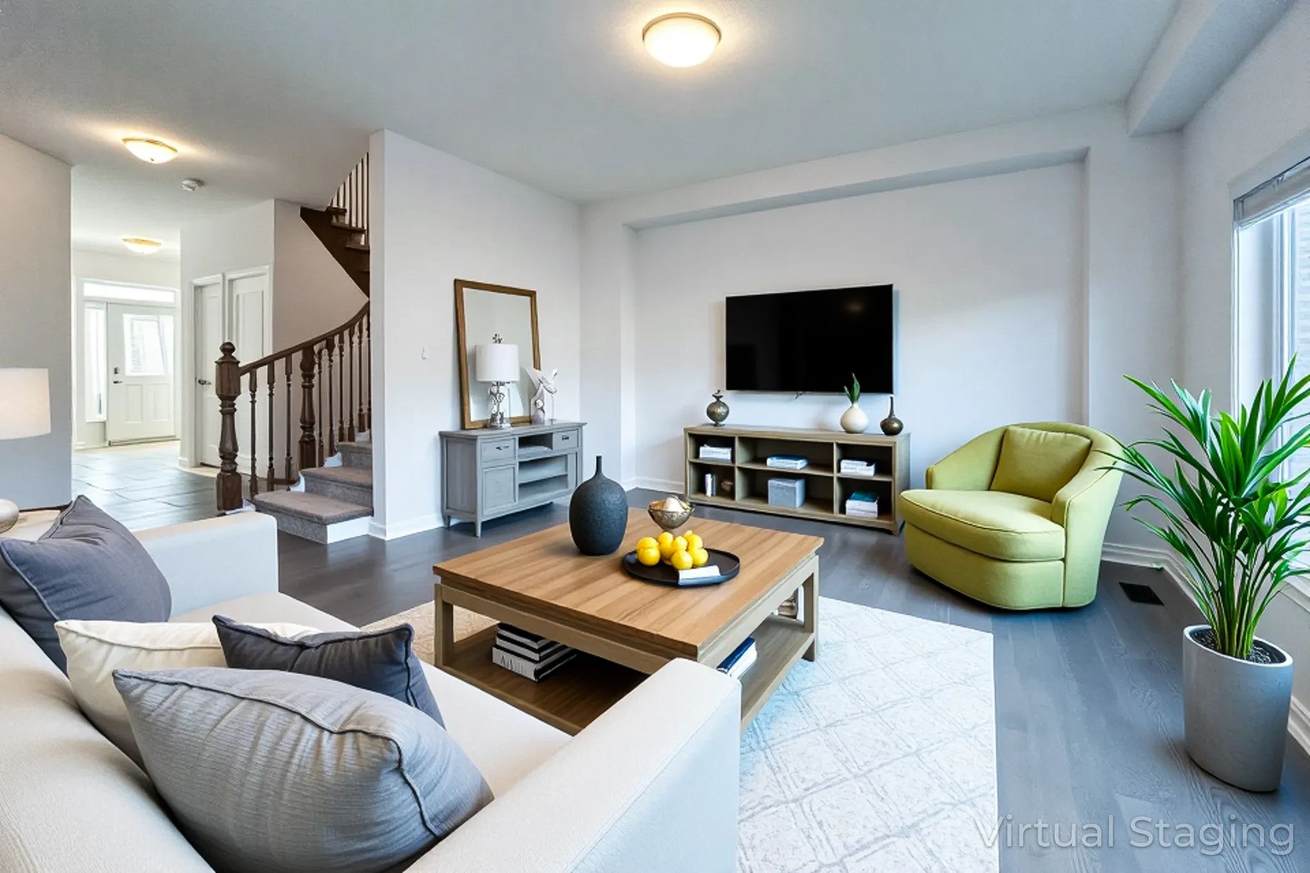 • Open-concept layout with a modern kitchen and upgraded appliances.