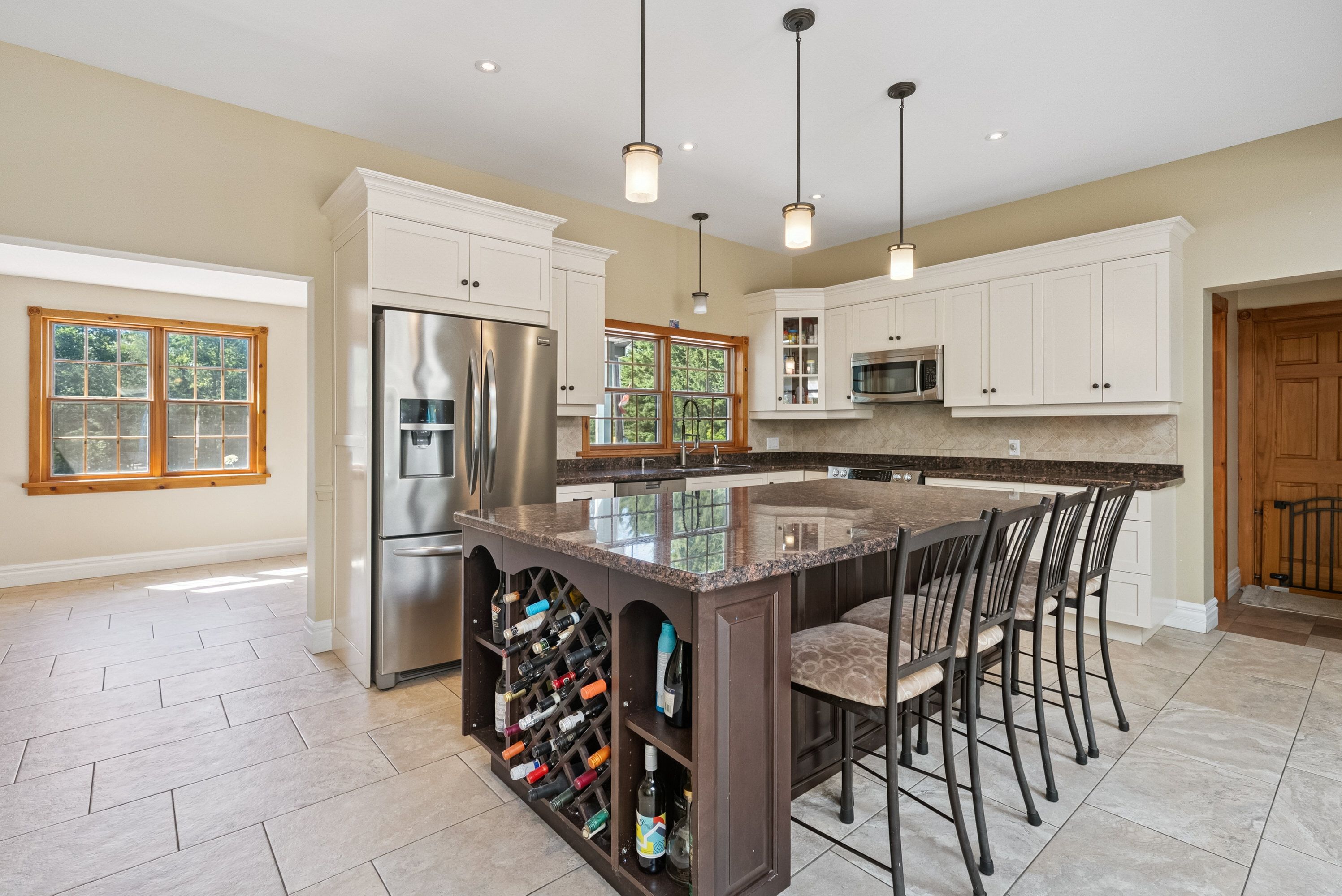 • Custom eat-in kitchen designed for gathering, with a walkout to the deck.