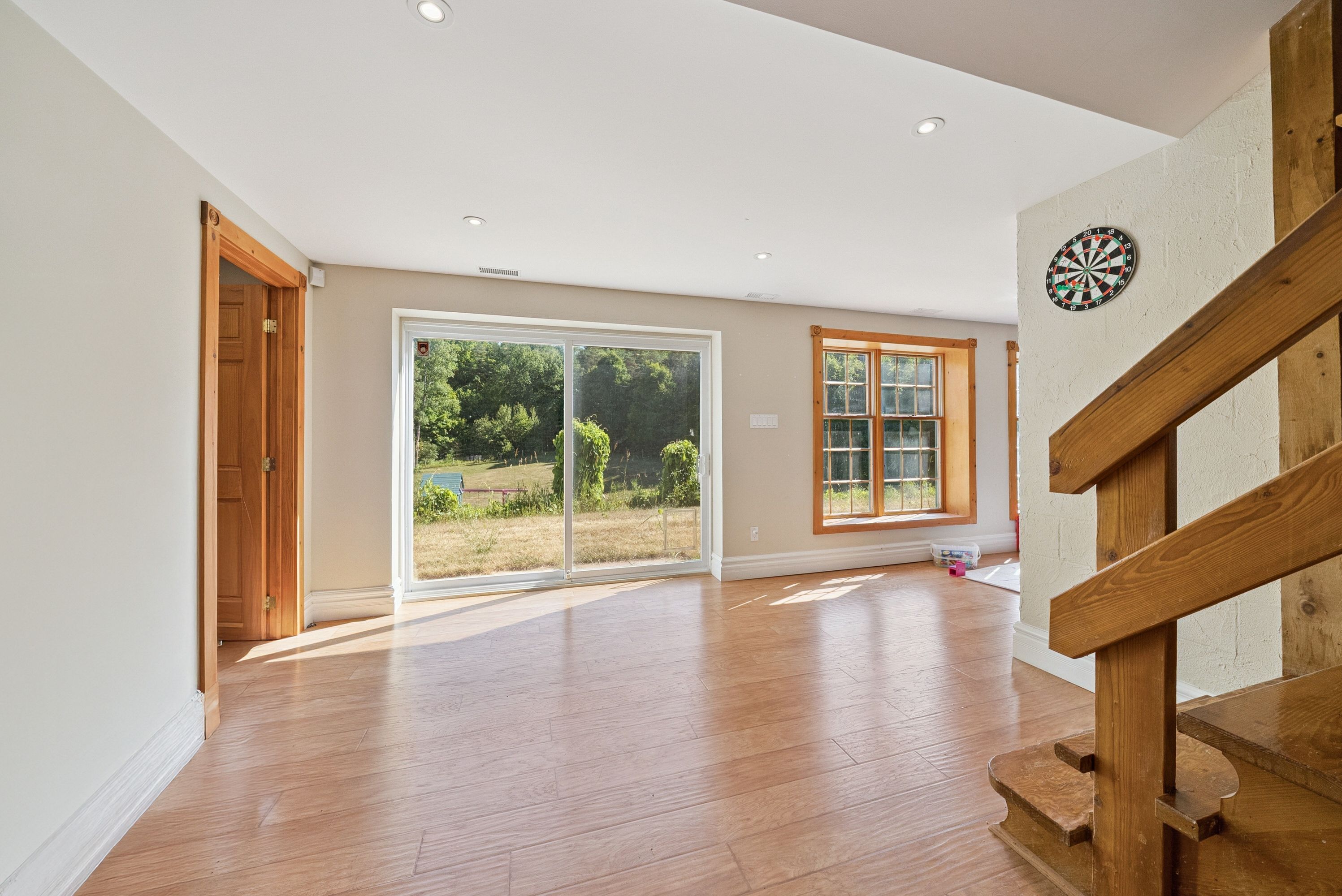 Set on a breathtaking 10. 03-acre lot with approximately 317 feet of frontage and stretching over 1,380 feet deep, this exceptional property backs directly onto the york regional forest north tract--offering access to approximately 800 acres of pristine trails and natural beauty. The grounds present a harmonious blend of open space, manicured lawns and gardens, a paddock, mature forest, and private walking trails. Perched atop the property is a striking 1-storey residence offering approximately 3,670 square feet of finished living space. The home features 3+1 bedrooms, a finished walkout lower level, a three-car garage with a workshop and loft space, an inground saltwater pool, and efficient ground-source heating. Flooded with natural light and showcasing panoramic views, the great room boasts soaring 22-foot cathedral ceilings with exposed wood beams, dramatic floor-to-ceiling windows, rich hardwood flooring, and a stunning wood-burning fireplace--making it the heart of the home. The custom, family-sized eat-in kitchen is designed for gathering and function. It features a beamed ceiling with large skylights, a generous center island with seating for four, stainless steel appliances, a wood stove, pantry, and a walkout to a spacious deck overlooking the pool and grounds. The main floor primary suite is bright and inviting, with an exposed beams ceiling, generous natural light, and a private 3-piece ensuite. Experience the perfect blend of privacy, nature, comfort and convenience all while being just minutes from highway 404 and the shopping, dining, and amenities of newmarket.