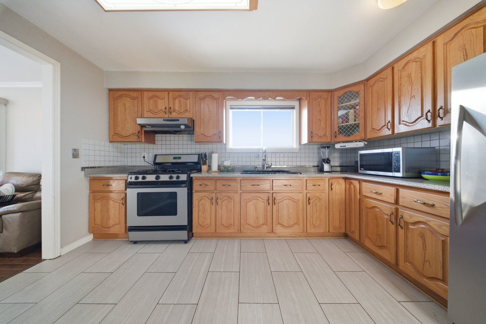 • Large kitchen equipped with a gas stove and ample storage.