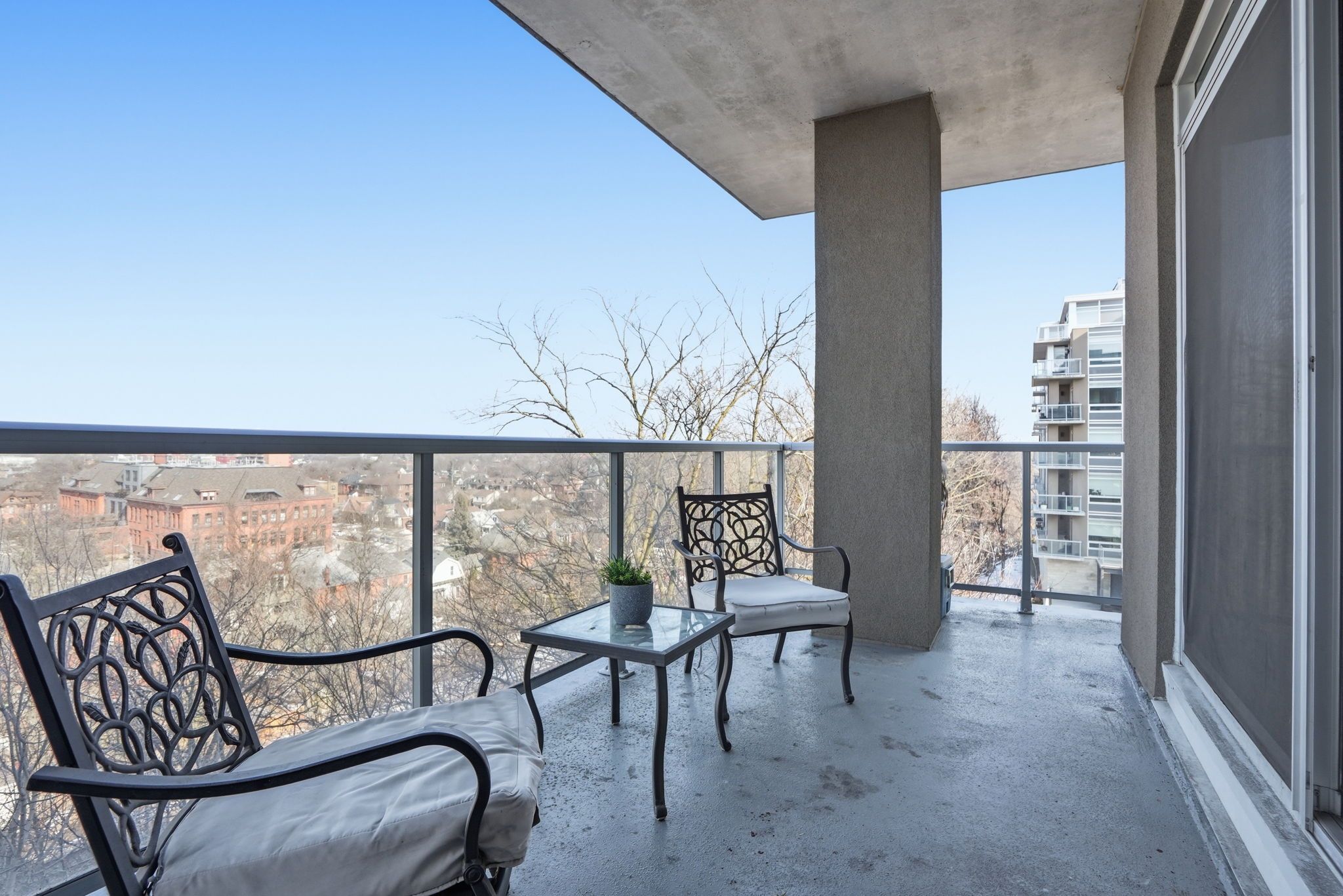Welcome to 937 square feet of corner-unit perfection, where south-facing panoramic views deliver both golden morning light and glowing evening skies. This 2-bedroom, 2 full bathroom residence strikes the perfect balance of sophistication and calm. It's just minutes from downtown hamilton, yet tucked into peaceful surroundings near trails and green space. Step out onto the oversized balcony and take it all in. Inside, the open-concept layout is wrapped in oversized windows and flooded with natural light. The kitchen features sleek finishes, stainless steel appliances, an under-mount sink and a generous-sized breakfast bar. The primary suite is generous and private, complete with a walk-in closet, ensuite and enough space for a home office or reading nook. The second bedroom is a true bedroom - not a den - with a full closet and large windows showcasing those stunning south-facing views. Both full bathrooms are thoughtfully upgraded with modern vanities, full mirrors and smart storage. Extras include: in-suite laundry, a full-size locker and an underground parking space. Residents enjoy premium amenities including a fully equipped gym, party room, visitor parking and access to the impressive rooftop terrace. Location? Exceptional. Minutes to the 403, linc, st. Joseph's hospital, mcmaster university, the go station, and the vibrant restaurants and cafés of james street south. A rare opportunity to own a corner unit with views that truly never get old, at a price point that still makes sense. Rsa.
