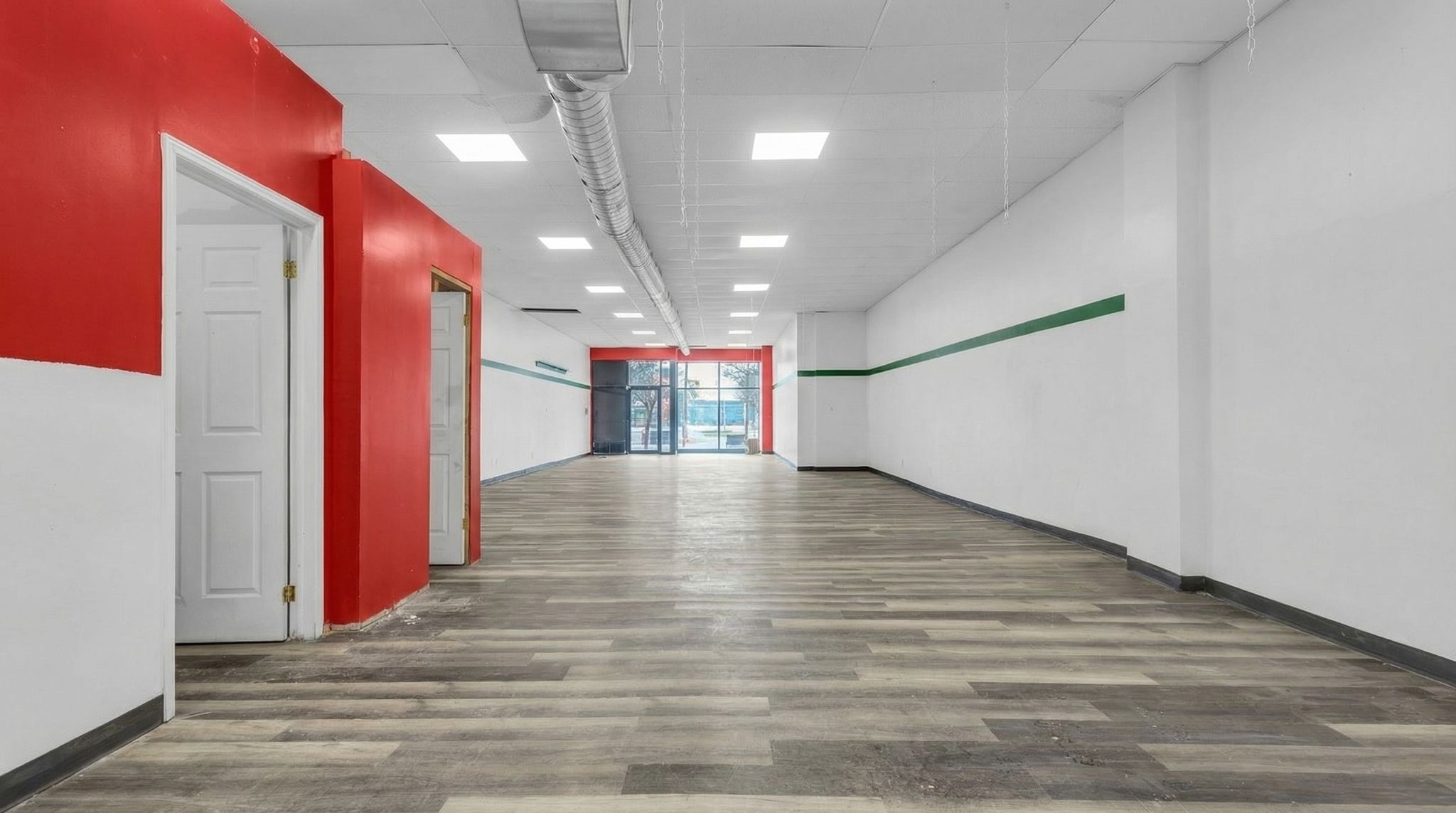 • New vinyl flooring and glass storefront enhance visibility.