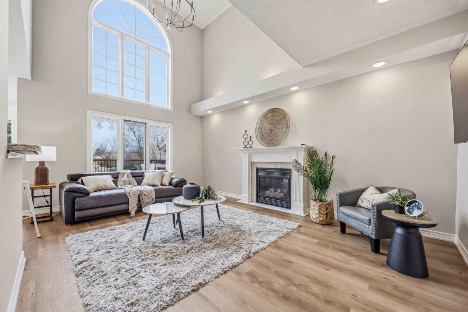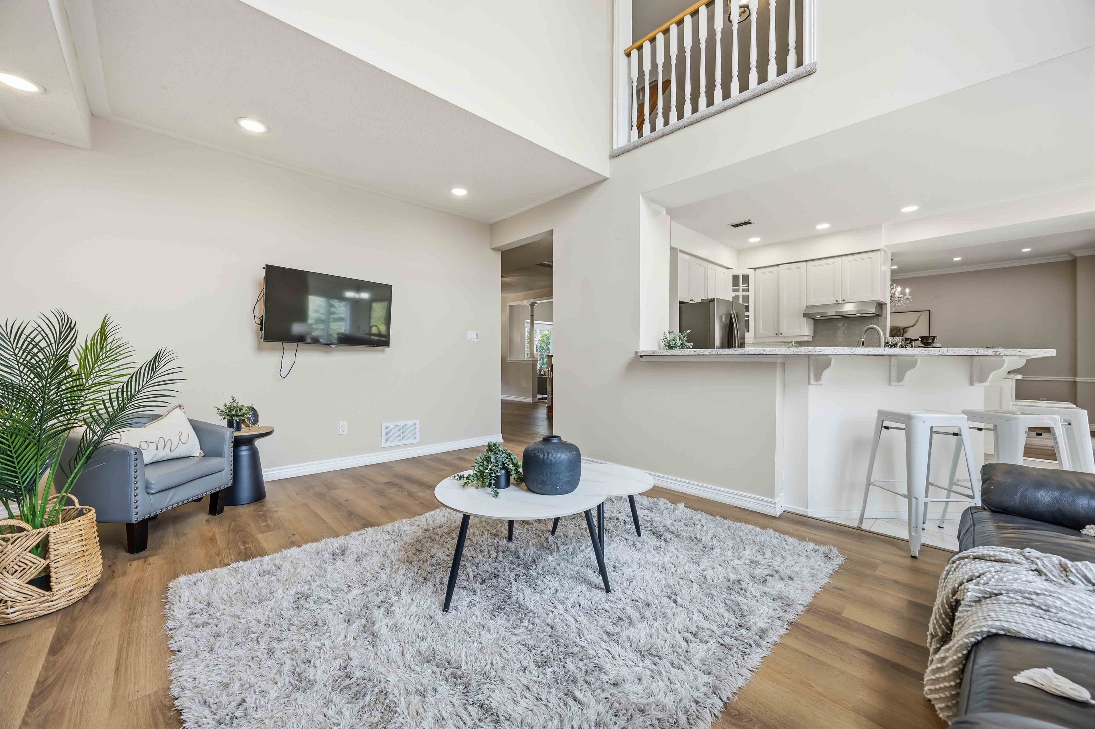 • Spacious living area including a family room with a gas fireplace.