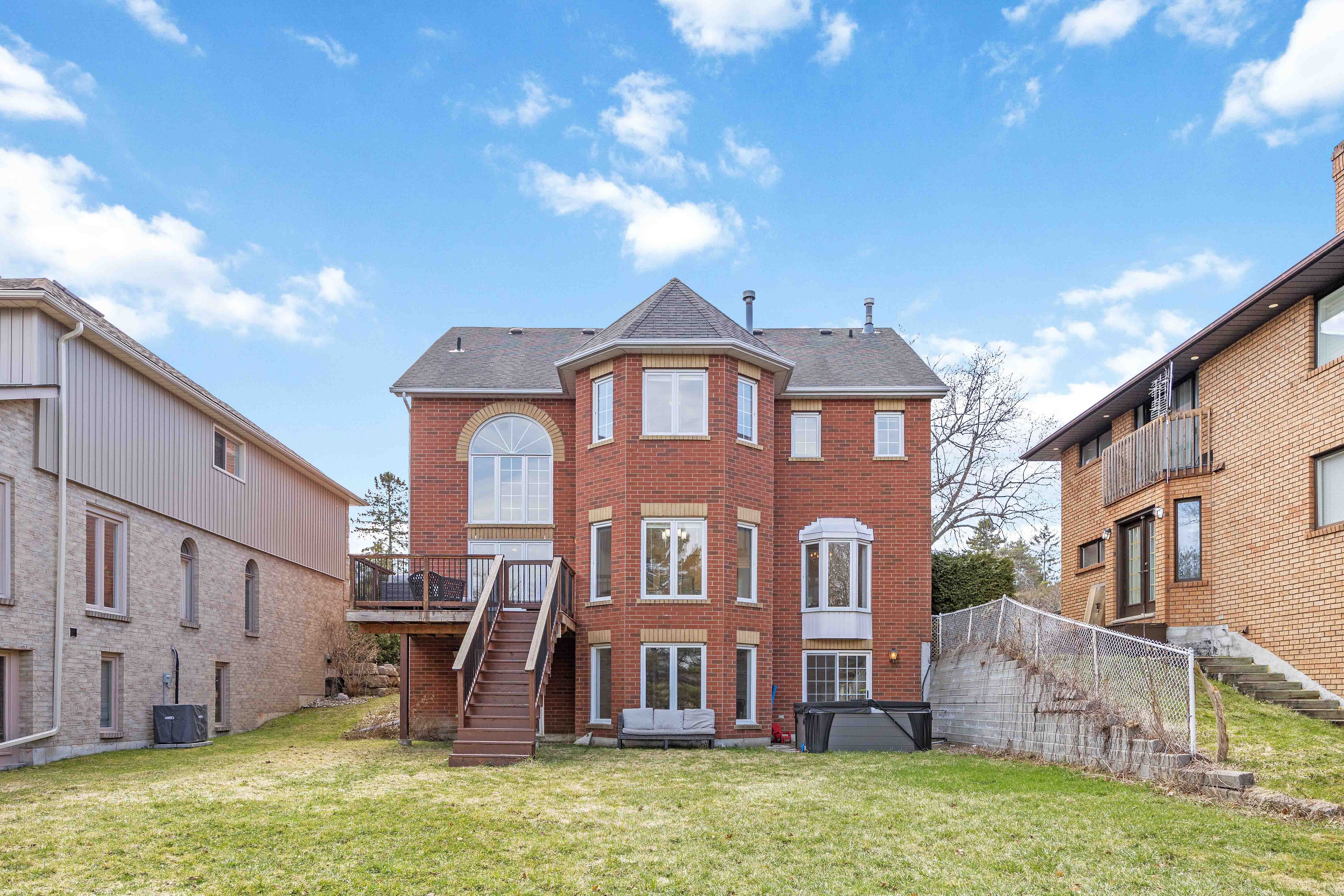 Stunning all brick 4-bedroom, 5-bath custom built family home on a rare 50 x 248 ft lot in the highly desirable rosebank community. Ideally located just steps to top-rated schools, parks, petticoat creek conservation area, rouge park, rouge beach, and scenic waterfront trails. Offering 4,507 sqft of above grade living space including a fully finished basement with two walk-outs. This beautifully upgraded home features new luxury vinyl plank flooring, a hardwood staircase, pot lights, all baths reno'd, upgraded lighting including pot lights, freshly painted and thoughtful finishes throughout. The main floor boasts a formal living room with crown moulding and a bay window overlooking the front gardens, along with an elegant formal dining room featuring french doors, smooth ceilings and a bay window with backyard views. The recently renovated kitchen with quartz countertops, a subway tile backsplash, pantry, breakfast bar, and updated stainless steel appliances. The adjoining breakfast area includes a garden door walk-out to a private, scenic backyard oasis. The impressive family room showcases a soaring cathedral ceiling, gas fireplace, and tranquil backyard views. A convenient main floor laundry room with direct garage access adds everyday practicality. Upstairs, you'll find new broadloom, 4 generously sized bedrooms, including a luxurious primary retreat with a walk-in closet and 5-piece ensuite featuring a granite double vanity, glass shower, and relaxing soaker tub. An open concept den area offers flexible space for a home office, sitting area, or playroom. The third level loft provides additional living space and could easily serve as a second primary suite, complete with a gas fireplace, hardwood floors, huge walk-in closet, and 3-piece bath. The finished above grade basement adds even more functional space with two walk-outs, a 2-piece bath, cold cellar, and ample storage. A rare opportunity to own in one of pickering's most sought-after neighbourhoods!