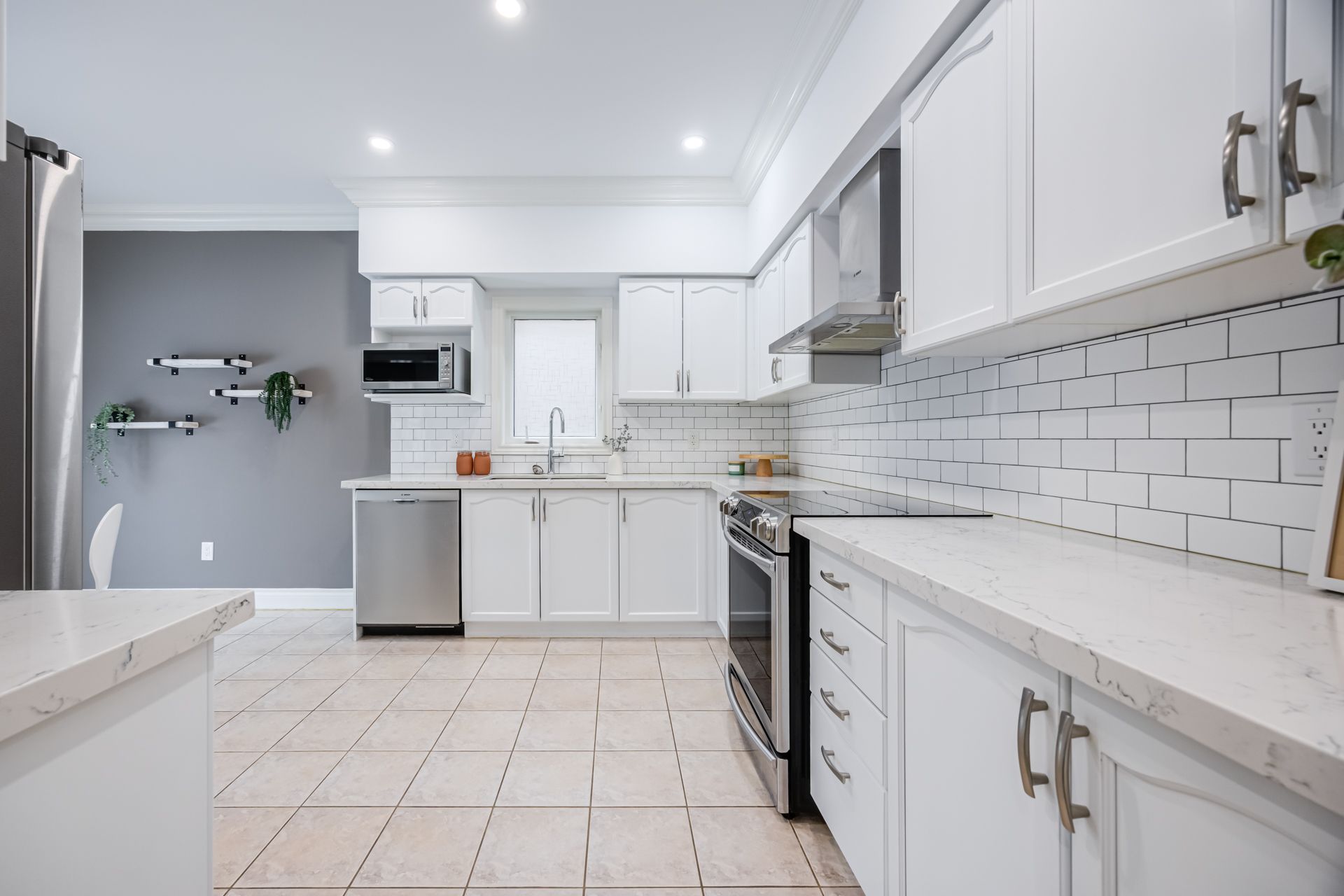 • Upgraded kitchen and bathrooms featuring quartz countertops and stainless steel appliances.