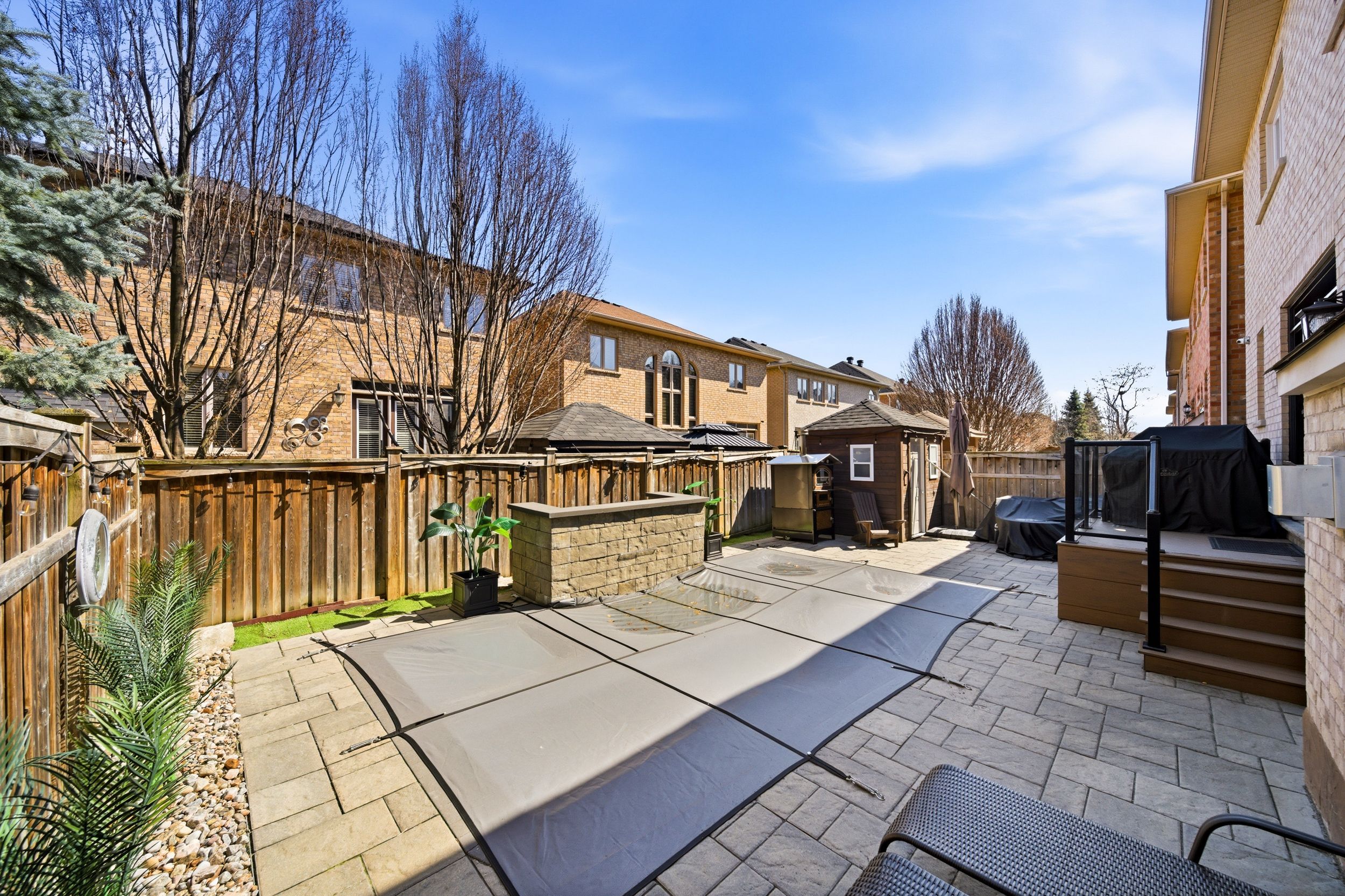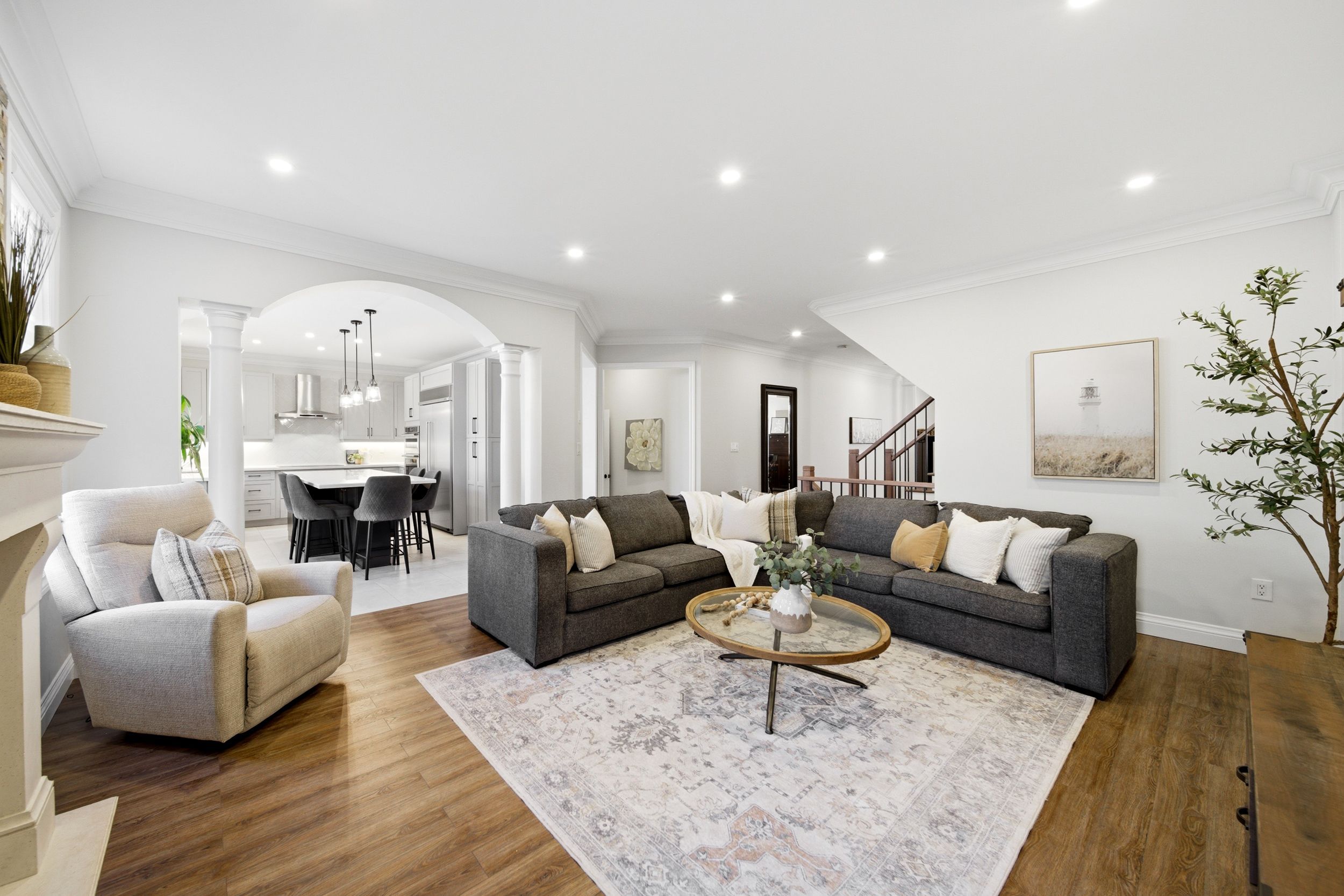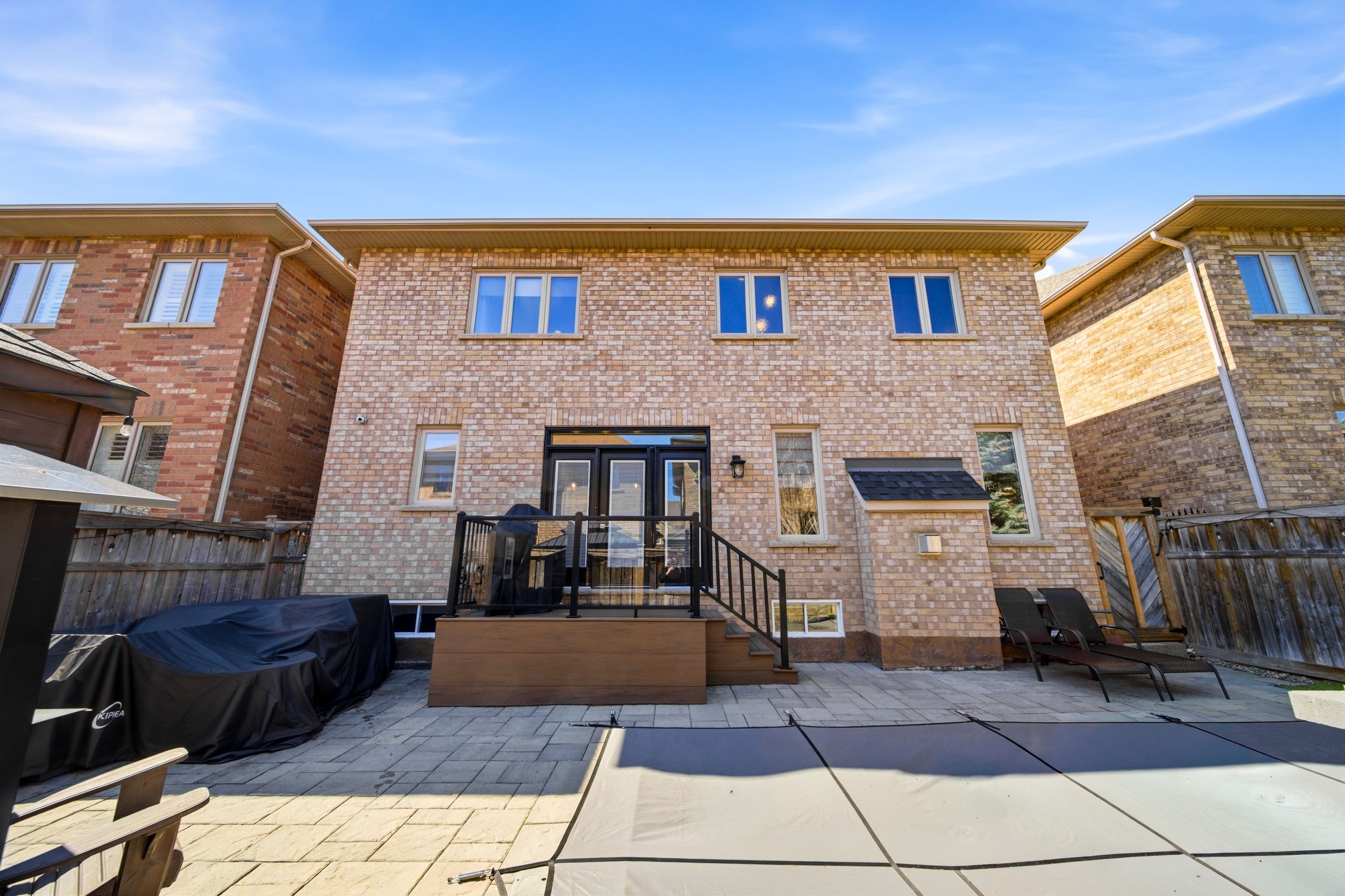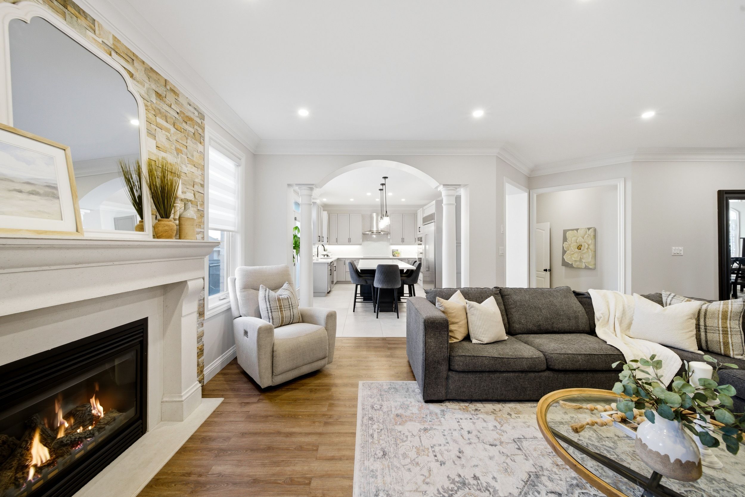 Nestled in family-friendly alton village, this meticulously renovated home offers the perfect blend of style, comfort and convenience--steps to top-rated schools, parks and all amenities. The front exterior boasts exceptional curb appeal, highlighted by a charming balcony and inviting alcove entrance. Step through double doors into a welcoming foyer. Thoughtfully curated upgrades are showcased throughout, rich hardwood floors, stunning staircase w wrought iron spindles, pot lights, shutters, updated light fixtures, crown moulding and custom closets. The heart of the home is the beautifully redesigned kitchen, featuring a large quartz island with seating, ss appliances, double ovens, wine fridge and seamless access to the backyard deck--ideal for effortless indoor-outdoor entertaining. The kitchen opens to a warm and inviting family room anchored by a gas fireplace with custom surround. A separate dining room with 3 arched windows provides an elegant setting for hosting. Convenient main-level laundry completes this level. Upstairs, you'll find 4 spacious bedrooms filled with light. The primary suite is a true retreat, offering a walk-in closet and renovated ensuite with a deep soaker tub and glass shower. The main bathroom has also been tastefully updated. Finished lower level expands your living space with a large open-concept recreation room, office area, gym zone, and stylish barn door leading to generous storage. Step outside to your private backyard oasis featuring a saltwater fibreglass pool (lifetime warranty), composite deck with glass railings, landscaped patio & a bbq gas line. Additional updates provide peace of mind, including waterproofing membrane completed before basement finishing, replaced garage doors, epoxy garage floors, ev charging station, roof (2022), windows & doors (2019), furnace & hot water tank (2020) and a/c (2021). Set in a prime location close to trails, parks and amenities, this truly turnkey home is ready for you to move in and enjoy.