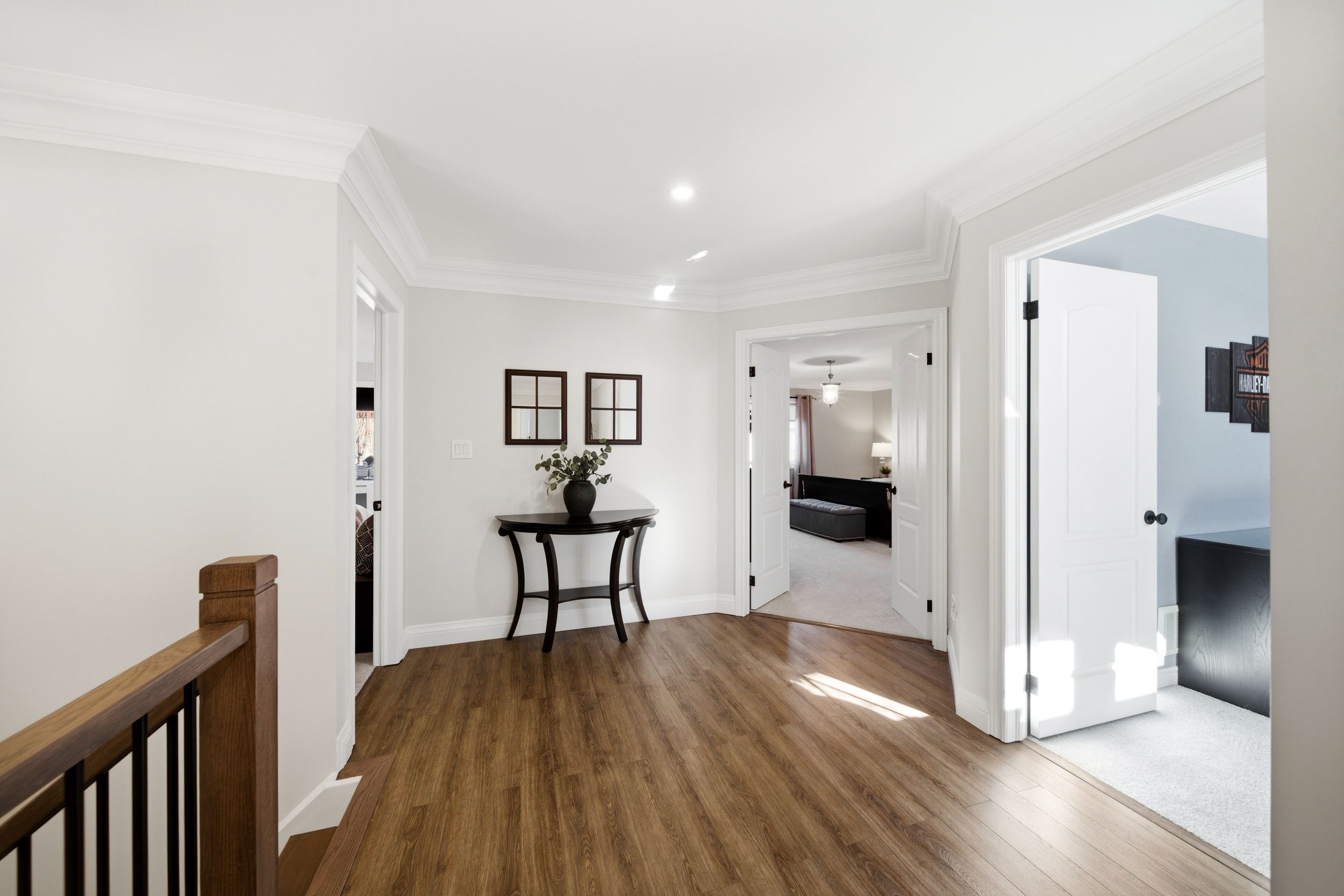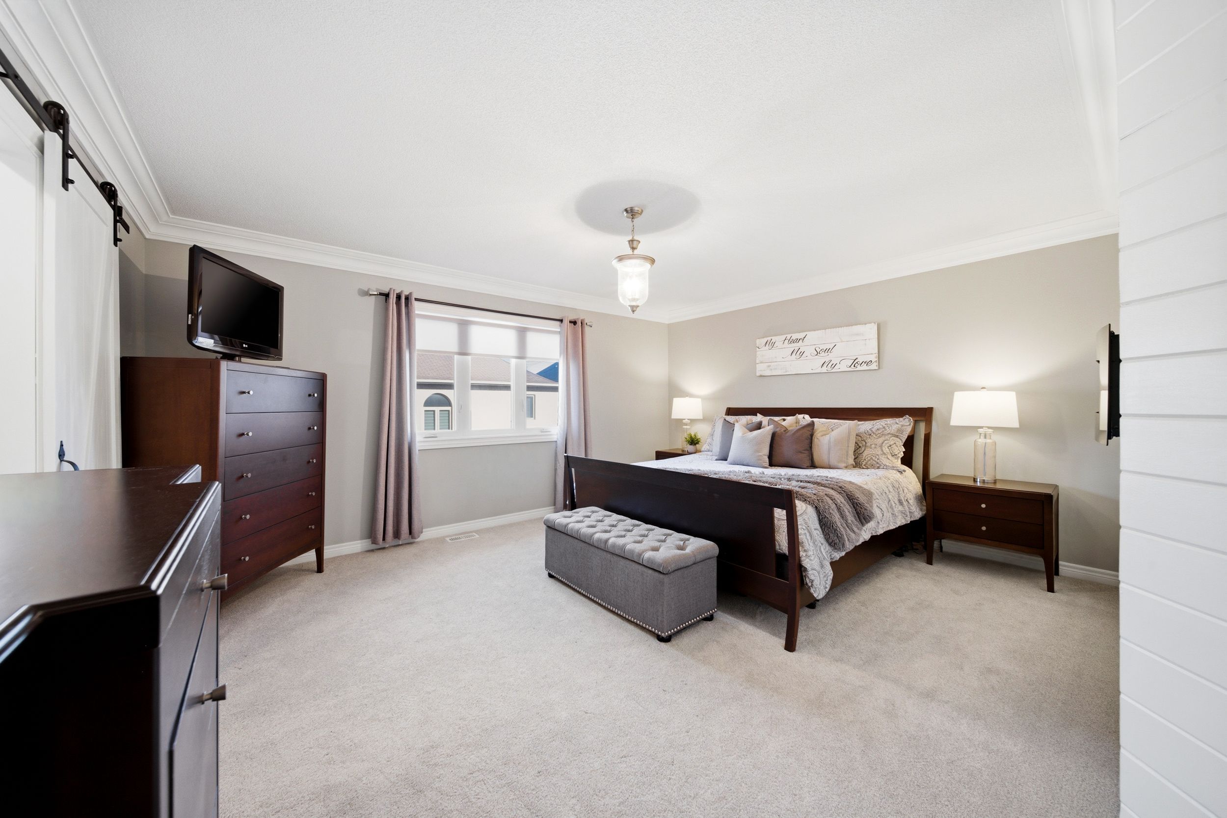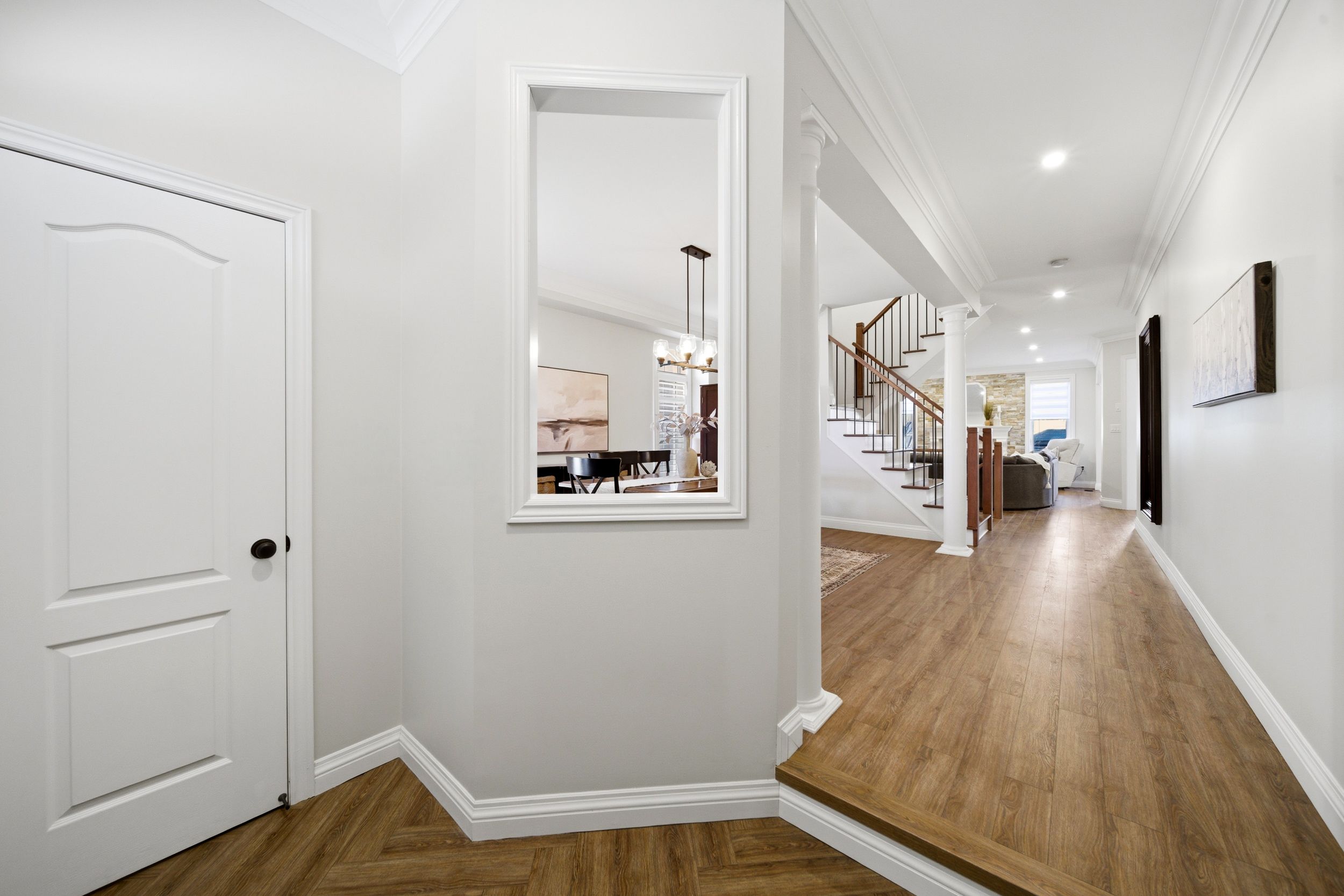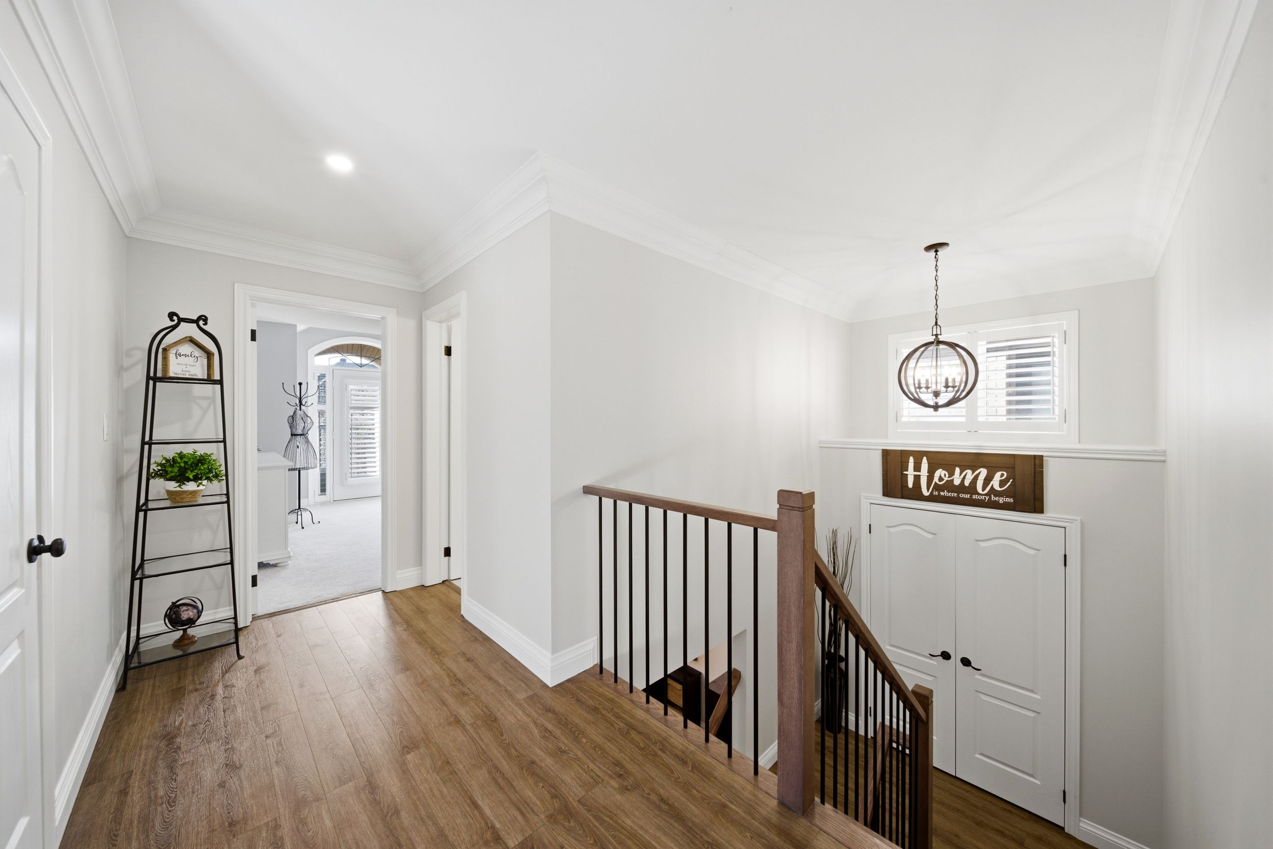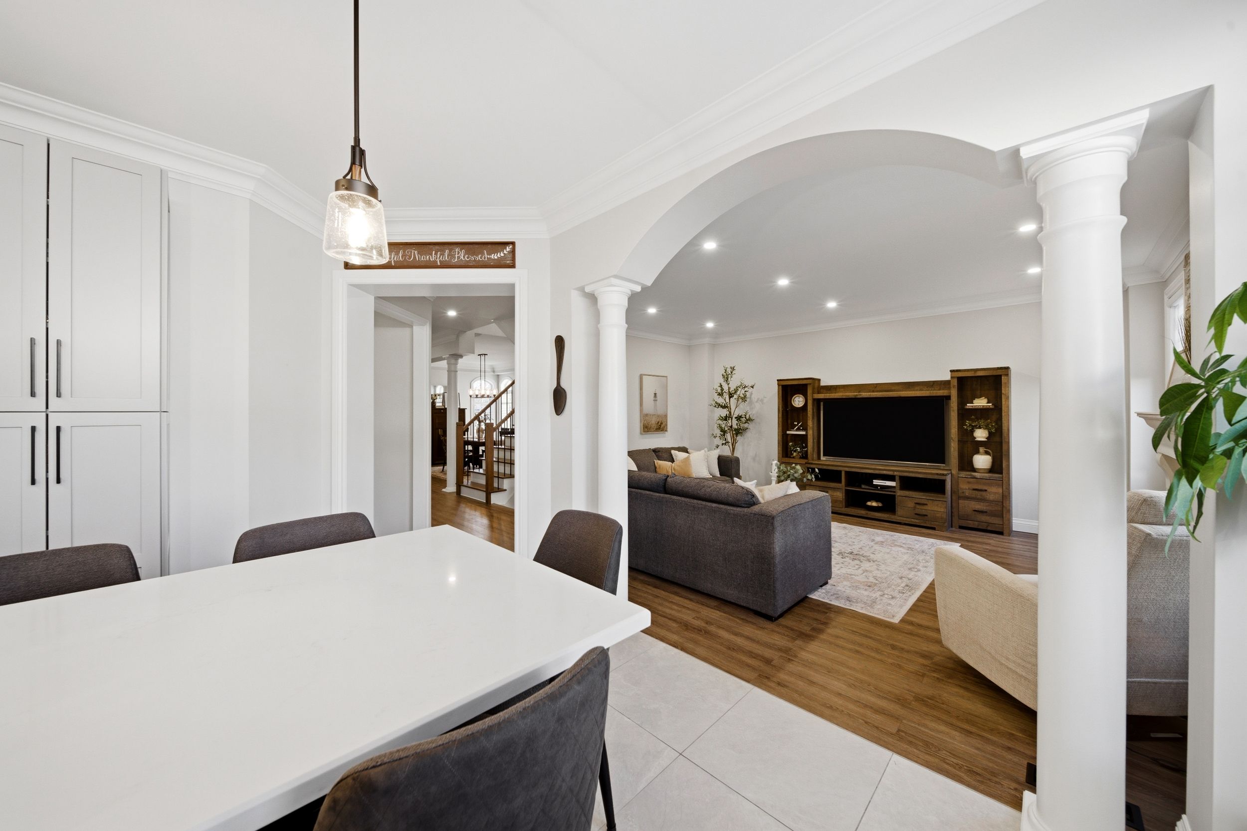 Nestled in family-friendly alton village, this meticulously renovated home offers the perfect blend of style, comfort and convenience--steps to top-rated schools, parks and all amenities. The front exterior boasts exceptional curb appeal, highlighted by a charming balcony and inviting alcove entrance. Step through double doors into a welcoming foyer. Thoughtfully curated upgrades are showcased throughout, rich hardwood floors, stunning staircase w wrought iron spindles, pot lights, shutters, updated light fixtures, crown moulding and custom closets. The heart of the home is the beautifully redesigned kitchen, featuring a large quartz island with seating, ss appliances, double ovens, wine fridge and seamless access to the backyard deck--ideal for effortless indoor-outdoor entertaining. The kitchen opens to a warm and inviting family room anchored by a gas fireplace with custom surround. A separate dining room with 3 arched windows provides an elegant setting for hosting. Convenient main-level laundry completes this level. Upstairs, you'll find 4 spacious bedrooms filled with light. The primary suite is a true retreat, offering a walk-in closet and renovated ensuite with a deep soaker tub and glass shower. The main bathroom has also been tastefully updated. Finished lower level expands your living space with a large open-concept recreation room, office area, gym zone, and stylish barn door leading to generous storage. Step outside to your private backyard oasis featuring a saltwater fibreglass pool (lifetime warranty), composite deck with glass railings, landscaped patio & a bbq gas line. Additional updates provide peace of mind, including waterproofing membrane completed before basement finishing, replaced garage doors, epoxy garage floors, ev charging station, roof (2022), windows & doors (2019), furnace & hot water tank (2020) and a/c (2021). Set in a prime location close to trails, parks and amenities, this truly turnkey home is ready for you to move in and enjoy.
