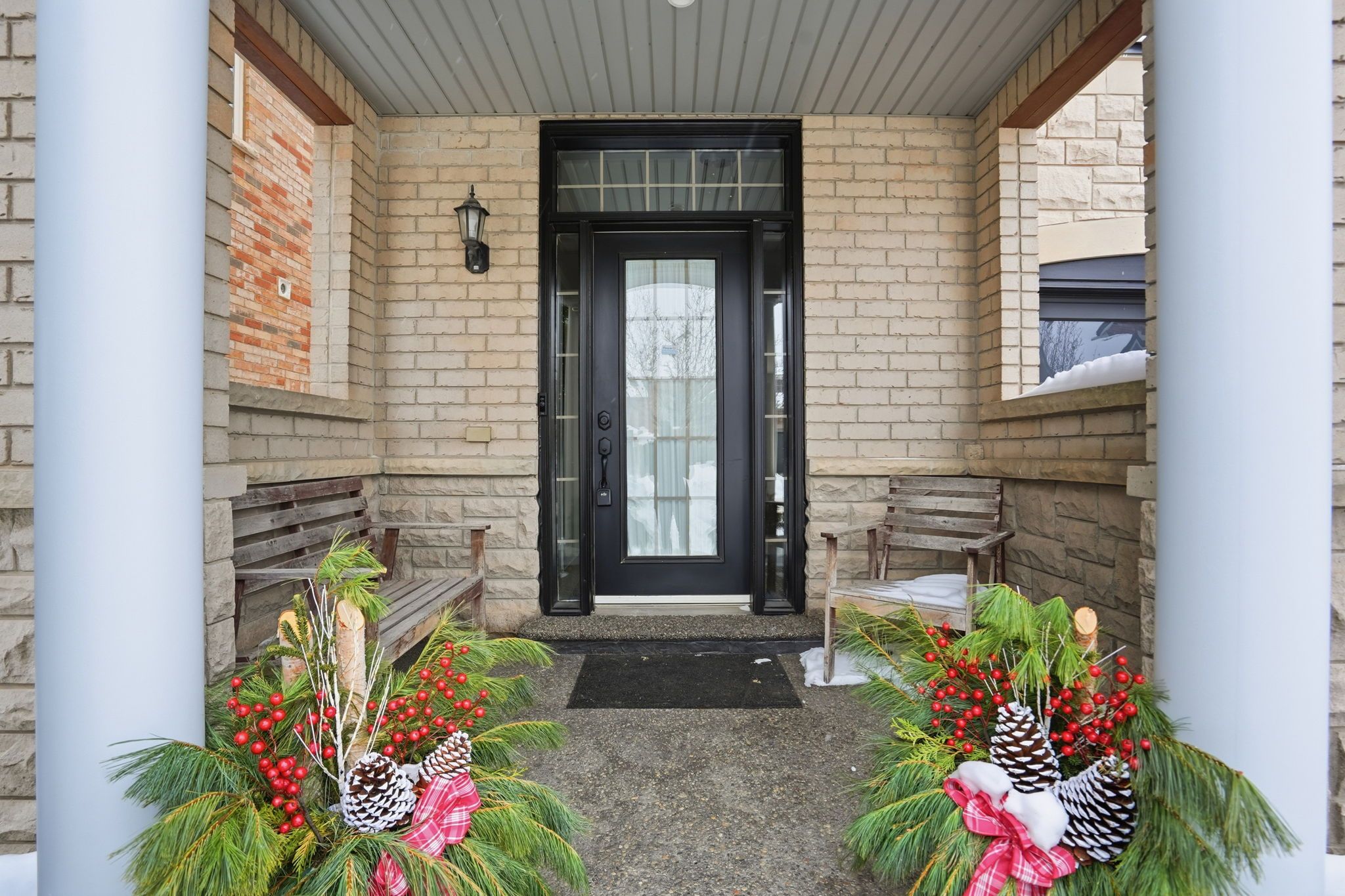 • Beautiful custom stonework landscaping enhances curb appeal.