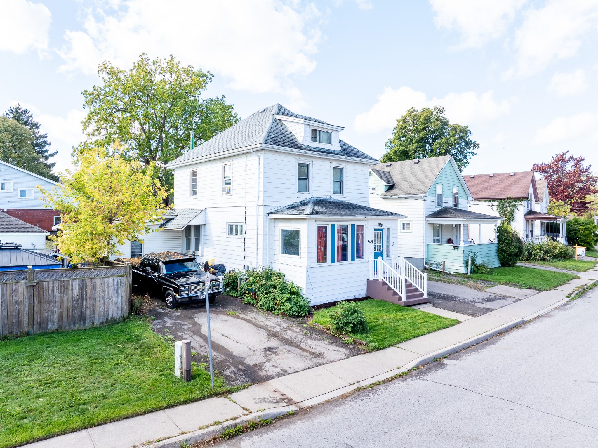 Near clifton hill, in the heart of niagara falls! This exceptional duplex offers incredible income potential in a prime location near the niagara river, casinos, shopping, and major attractions. Featuring two completely separate units and three hydro meters, this property provides flexibility and additional earning opportunities across three levels. Main floor includes a spacious layout with a large living room, dining area, kitchen, three bedrooms, a 4-piece bathroom, and a walkout to the backyard. Upper unit boasts bright open-concept living area with a loft-style bedroom, perfect for tenants or short-term rental. Basement is fully unfinished and ready for your vision with potential for in-law suite or additional rental space. The fenced lot includes an attached garage and two driveways (one on each side of the home) offering parking for up to eight vehicles. Recent updates include a new furnace and a/c (2023). Don't miss this fantastic opportunity to own a versatile income property in one of niagara's great downtown areas.