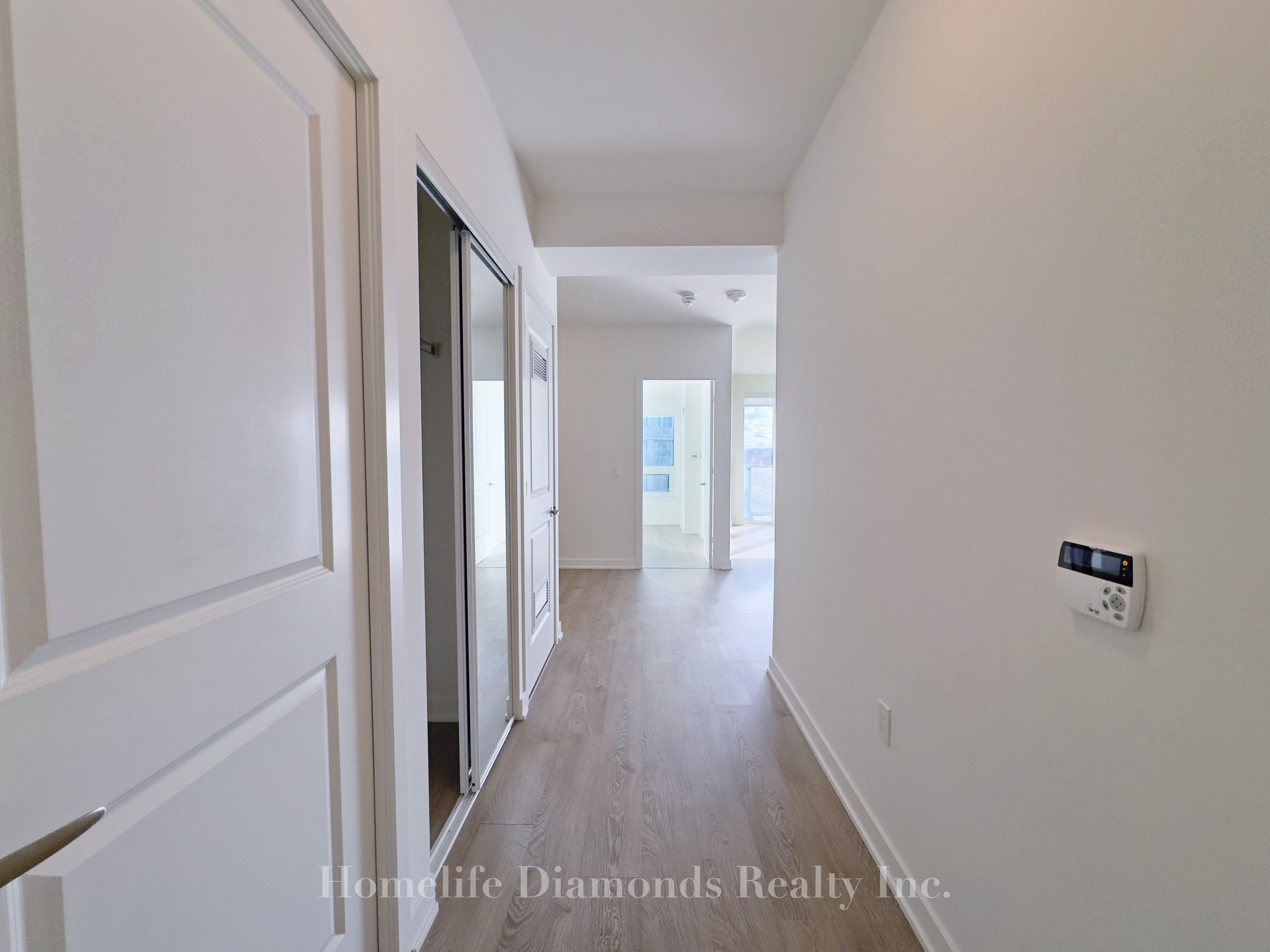 Welcome to this stunning 2 bedroom + den, 2 full washroom condo at the prestigious erin squarecondos by pemberton group. With over 900sqft of beautifully designed living space, this cornerunit offers an open-concept layout flooded with natural light and modern finishes throughout. The wrap-around balcony provides spectacular views and the perfect space for morning coffee orevening relaxation. The unit features: spacious primary bedroom with ensuite bathroom & walk-incloset, ensuite laundry for convenience, modern kitchen with stainless steel appliances, quartzcountertops & modern cabinetry, floor-to-ceiling windows, versatile den space - perfect for ahome office or guest area. Underground parking & locker included. Located in the heart of erin mills, right across from erin mills town centre and credit valleyhospital, this condo offers unmatched convenience. Steps to transit, top-rated schools,restaurants, cafes, grocery stores, and shopping. Quick access to highways 403, 407, and qew. Close to university of toronto mississauga campus and parks including erin mills athleticfields.