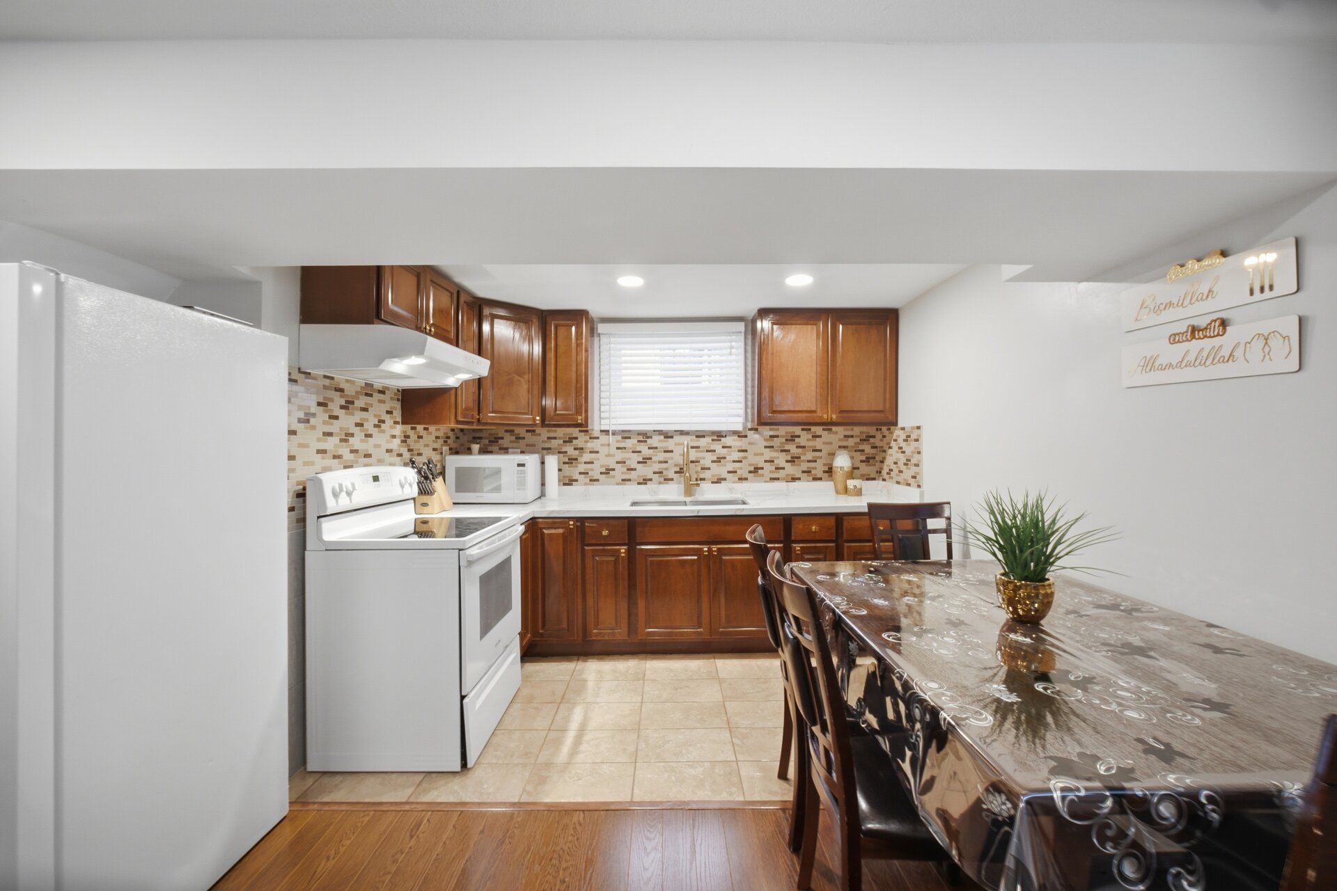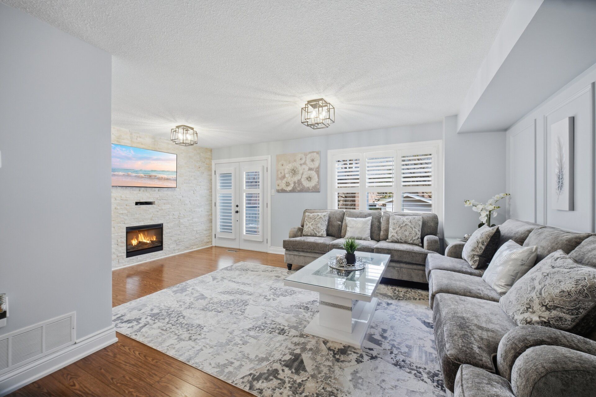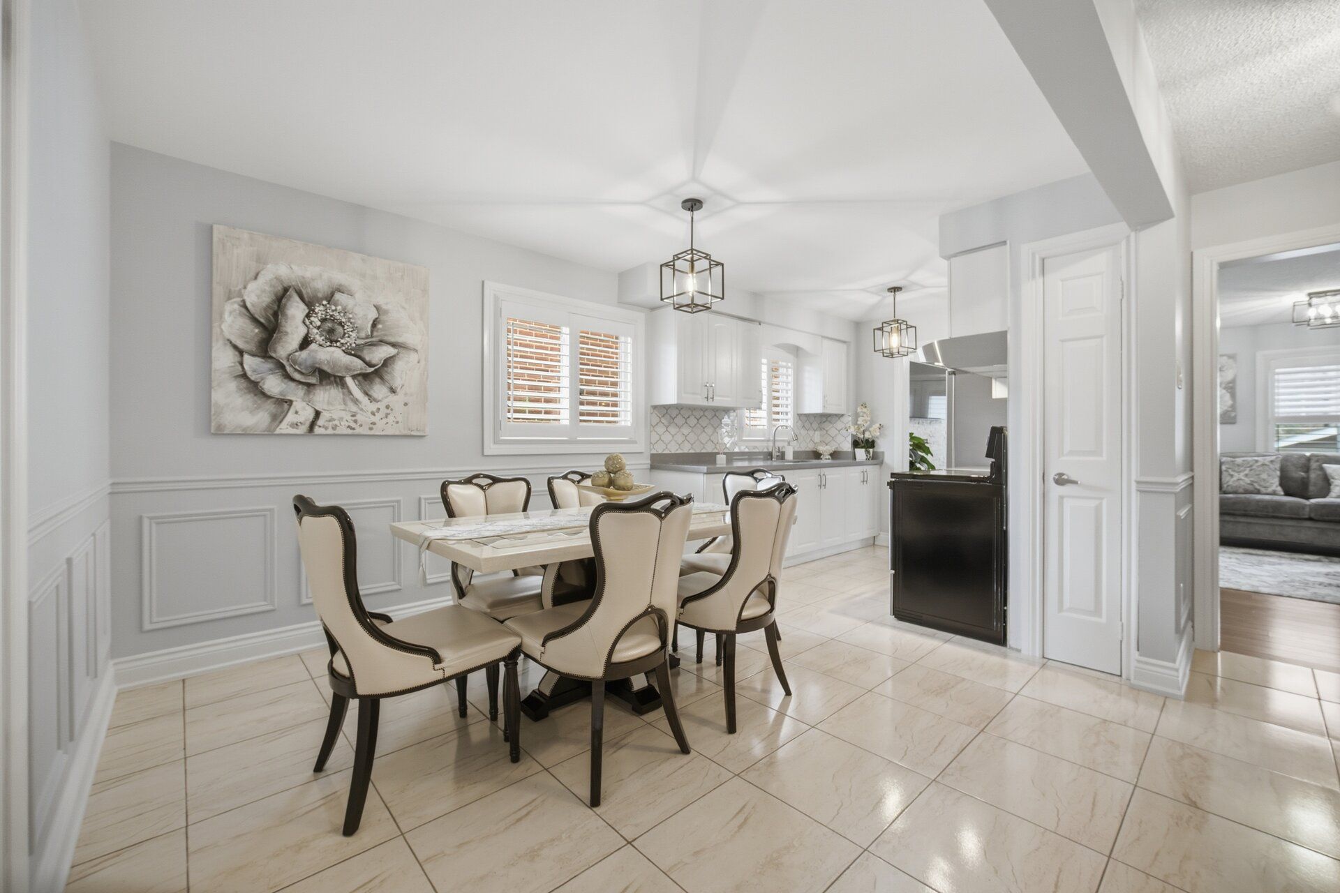 Located on a quiet, family-friendly street in central mississauga. This property features numerous high-end upgrades throughout, including newer ceramic flooring and high quality laminate flooring (completely carpet-free), upgraded stairs with wrought iron pickets from the basement all the way to the second floor, pot lights, wainscotting, and stone accent walls. The main level offers an open-concept floor plan that feels both spacious and modern. Highlights include a complete kitchen renovation with quartz counters, custom backsplash, and an undermount sink. The dining area features a bold accent wall with an electric fireplace with french doors leading out to a fully enclosed backyard with a large patio and garden. The upper level boasts three well-sized bedrooms and an updated bathroom. The lower level provides additional living space with a second modern kitchen featuring quartz counters, a tv area, and another full bathroom. Extra wide driveway and no sidewalk fits up to 4 cars. Ideally situated near highway 10 and eglinton, this home offers excellent highway access, a great school district, and close proximity to square one. This property truly must be seen to be appreciated. See features list for detailed list of upgrades.