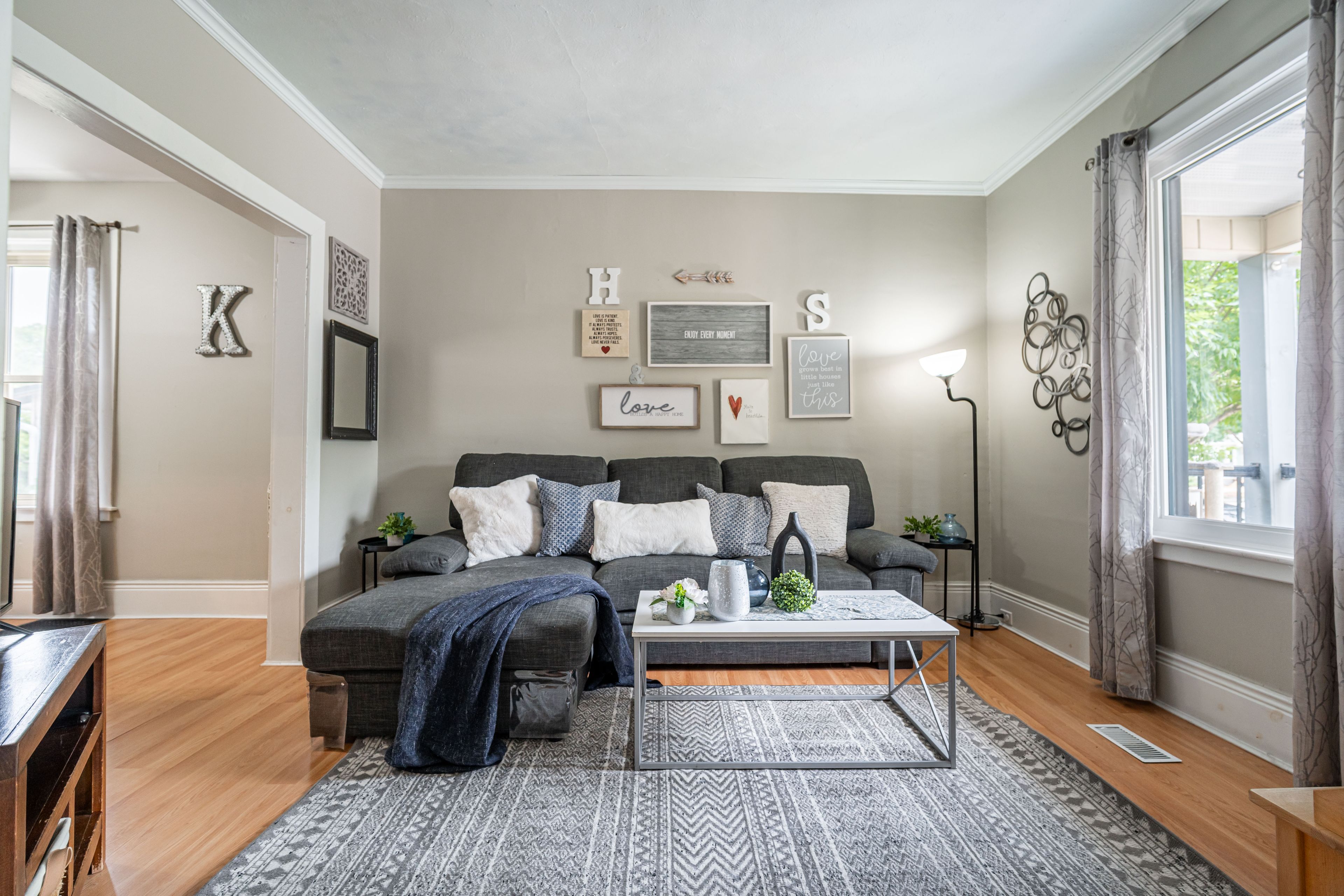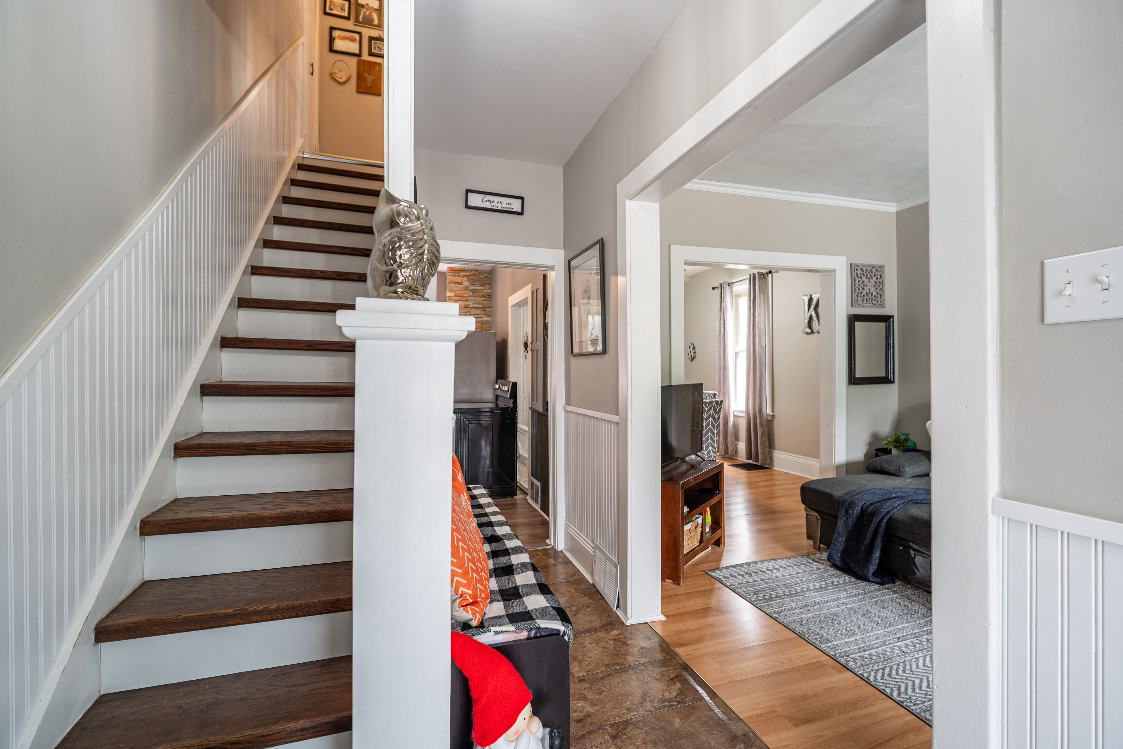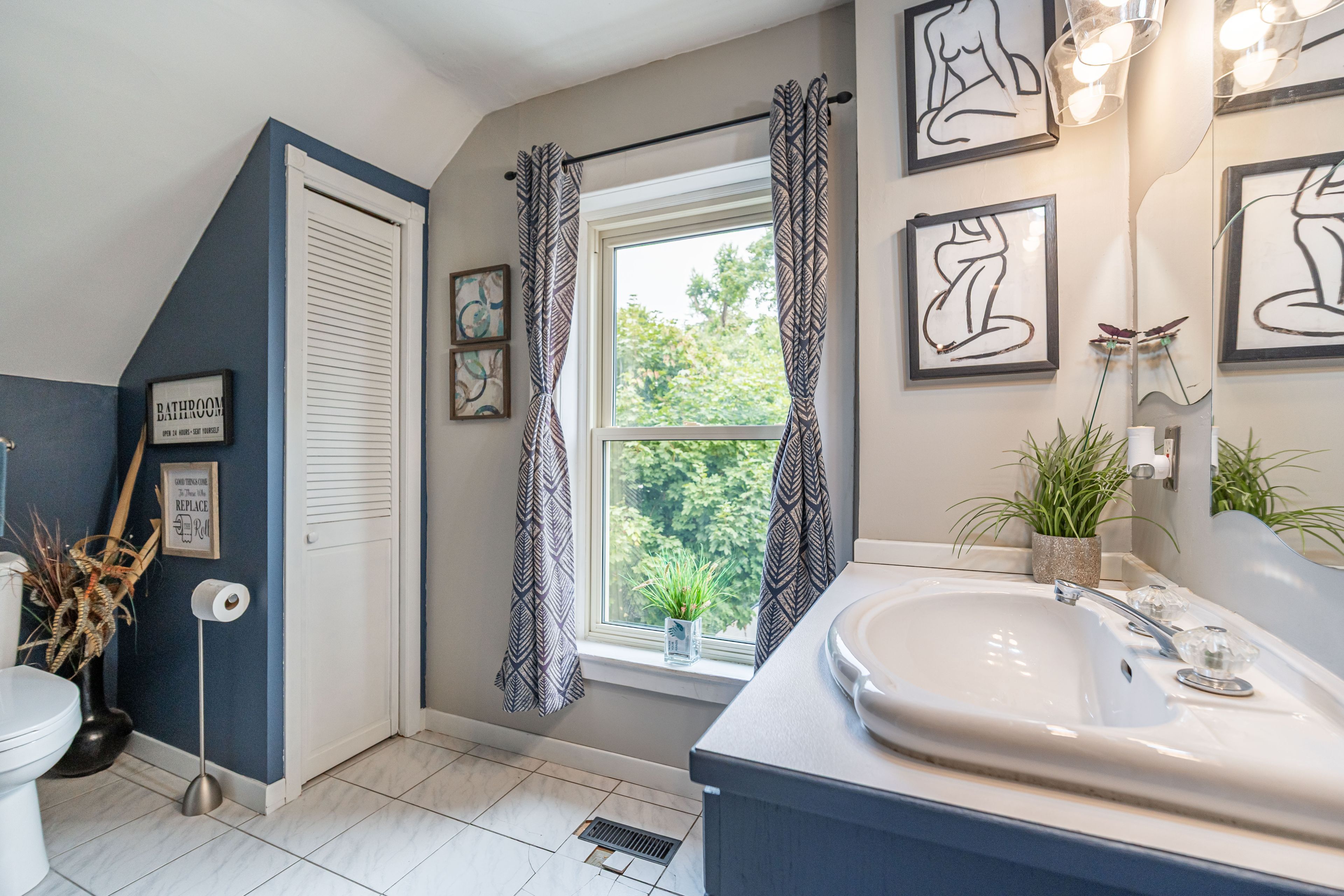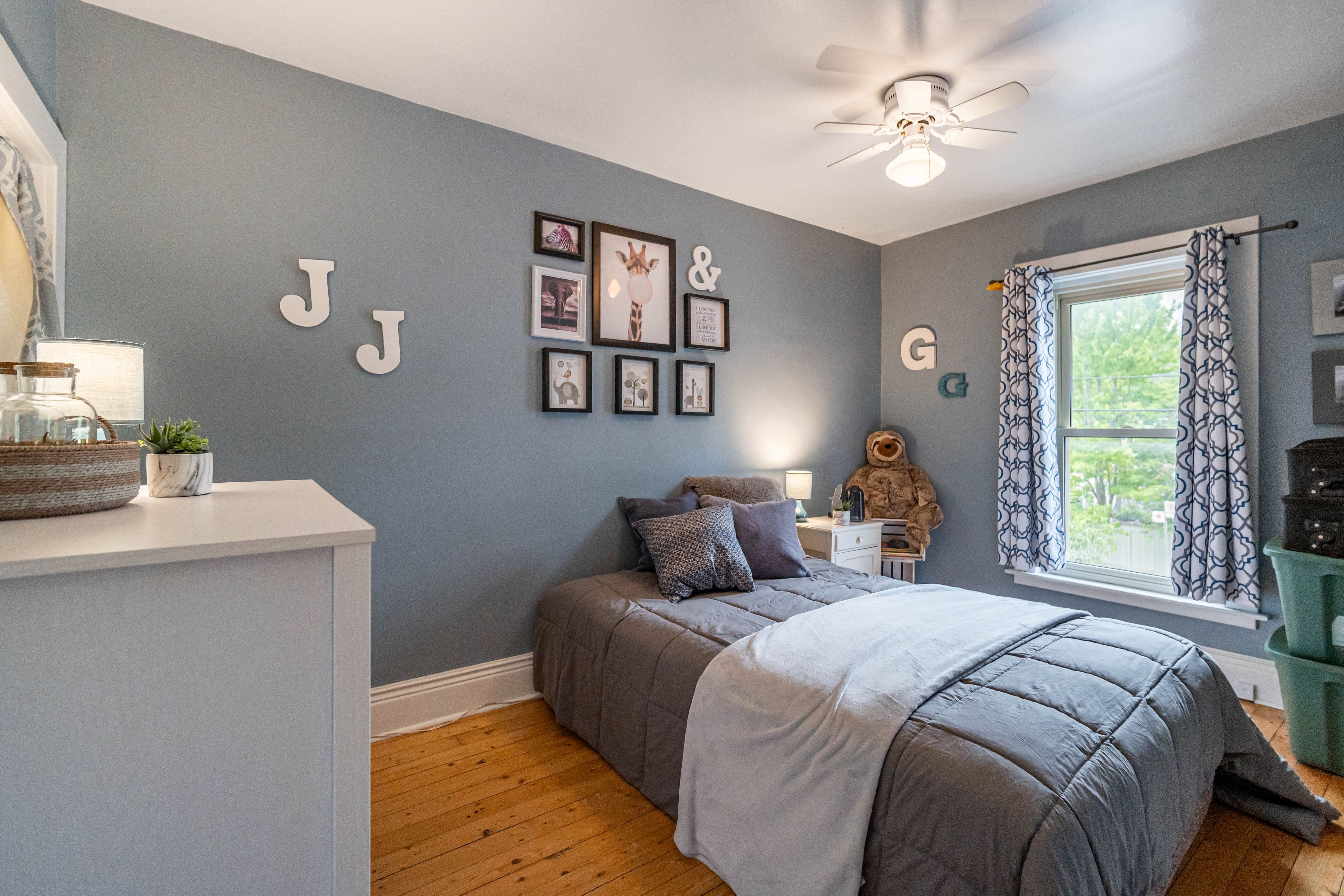 • Three spacious bedrooms with original trim and oversized windows for natural light.