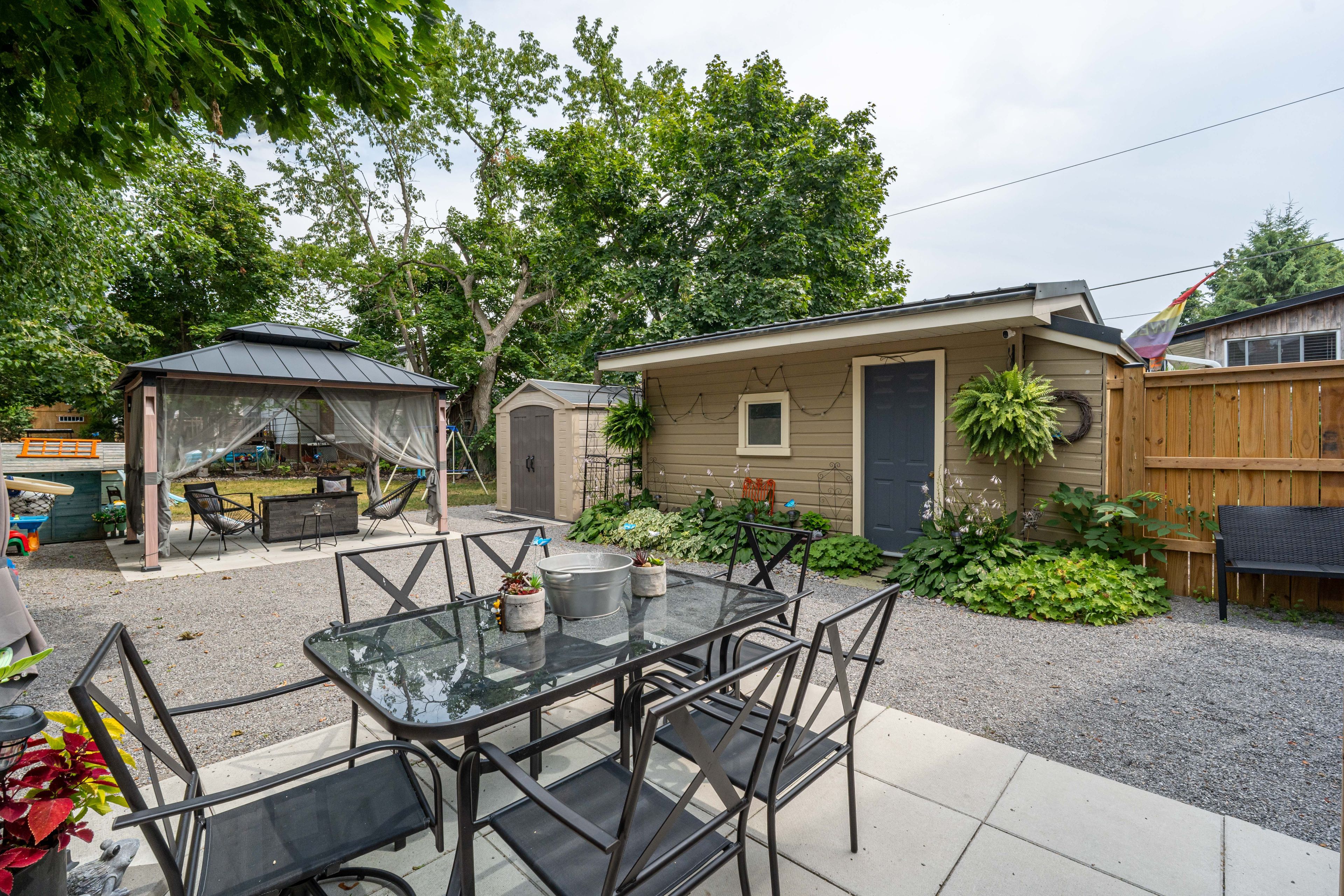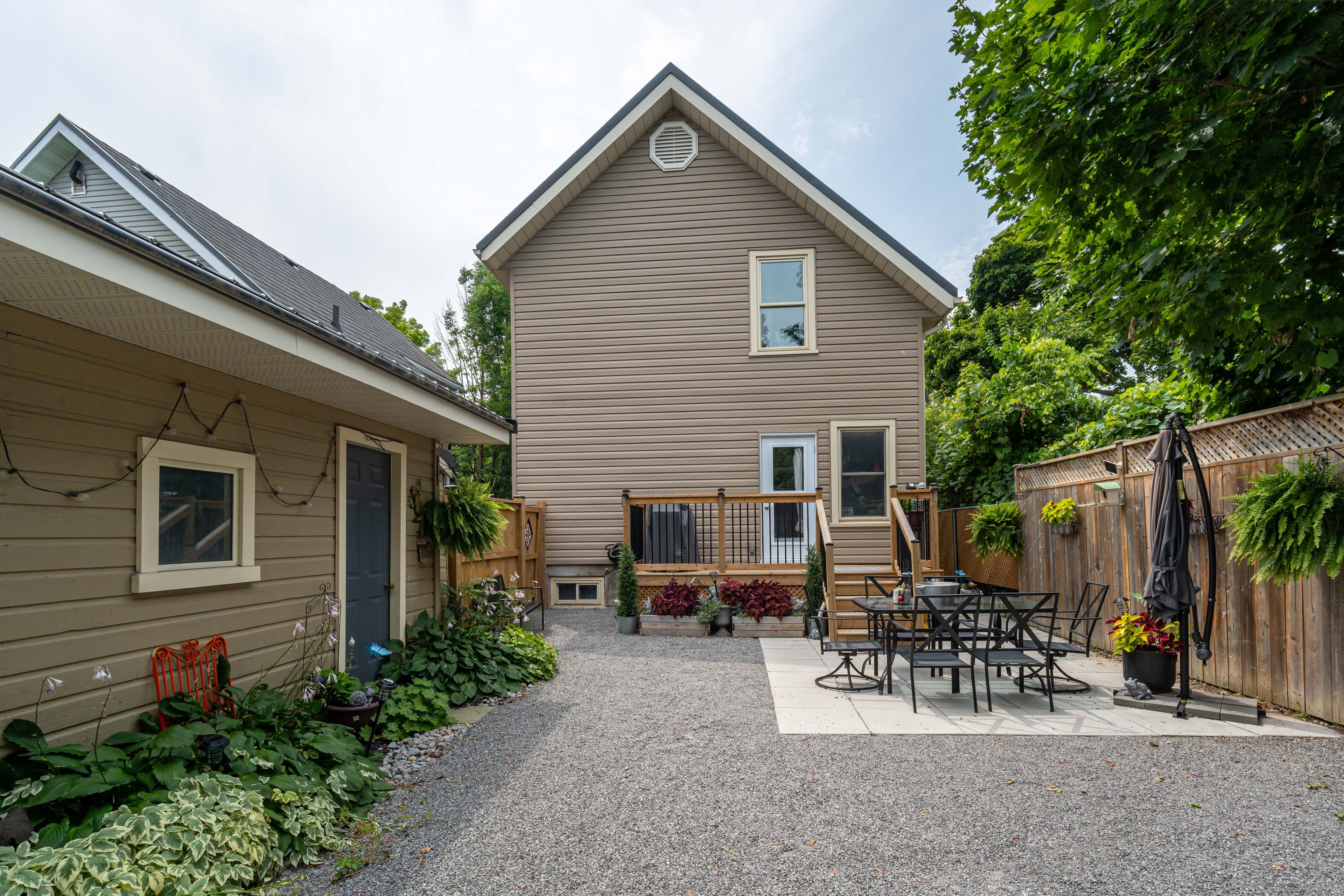 Nestled on a beautifully landscaped lot, this charming two-storey home is a true hidden gem, blending timeless character with thoughtful modern updates. Offering three generous bedrooms, the home showcases original trim, soaring ceilings, and oversized windows that flood the space with natural light. The main floor features spacious living and dining areas, perfect for everyday living and entertaining, while the kitchen walks out to a brand-new back deck overlooking a fully fenced backyard oasis. Complete with a cozy gazebo, swing set, and ample space to gather, the backyard is ideal for relaxing or hosting family and friends. Recent improvements include a brand-new front door, front window, and back door, striking front interlock, and a furnace and a/c replaced just two years ago. Laminate flooring extends through most of the main and second levels, which also include a full bathroom and three well-proportioned bedrooms. Both the home and detached garage are topped with durable metal roofs, and the private driveway adds everyday convenience. Ideally located within walking distance to downtown peterborough, restaurants, shops, the hospital, schools, and transit, this home offers the perfect combination of charm, comfort, and unbeatable location. A must-see property.