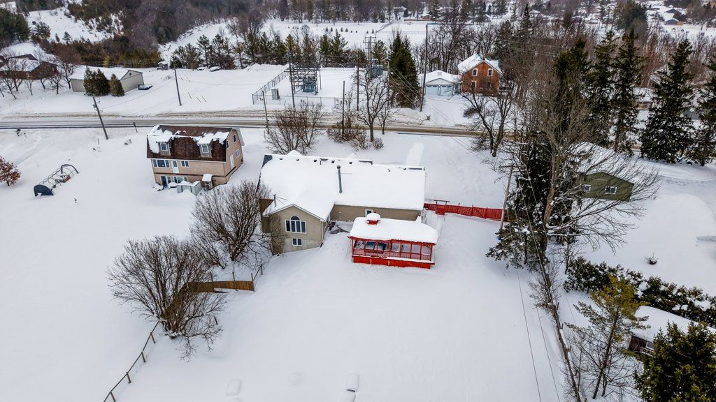 This is the one for you on 1. 21 acres at the edge of the village of paisley! Great curb appeal with this bungalow sporting dormers, a covered front porch and an attached garage! Have a look at the back deck with hot tub oasis and backyard firepit scenery!! Floorplan of this home has been very well thought out featuring an open concept living area with a vaulted ceiling and spectacular views of the saugeen river area of paisley and neighboring farmers fields. Two fireplaces are on the main floor, one in the dining room (built-in with mantle) and the other is a wood stove in the living room. Direct access to the saugeen river out your back door makes it perfect for fishing, canoeing and kayaking. Back yard is generously fenced. Basement is a walk-out with separate entry which offers the possibility of an in-law suite. Unspoiled except for a roughed in bathroom, the basement is ready for development! New roof shingles in 2022, new furnace in 2025. Floor plans do not show the entire back deck, which extends behind the 2 car garage. Close enough to the village of paisley to have town water/sewer, yet far enough away to be sitting on a small acreage. Have a look!