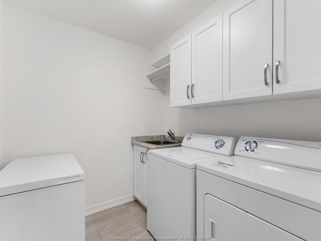 Looking to downsize or embrace a low-maintenance lifestyle without sacrificing comfort or style? This beautifully maintained cerasa-built ranch townhome sits on a quiet street in the charming town of amherstburg, just steps from point west golf course. With no smoking and no pets ever in residence, the home has been kept in pristine condition. The thoughtful, open-concept layout features 2 bedrooms, 2 bathrooms, main-floor laundry, and a modern kitchen with granite countertops. The spacious primary suite includes a walk-in closet and a luxurious ensuite complete with double sinks and a spa-inspired shower. Step outside to a covered patio perfect for relaxing, and enjoy the convenience of an attached 2-car garage. The expansive unfinished basement offers endless potential-create additional living space, a hobby area, or simply enjoy abundant storage. No association fees add to the appeal.