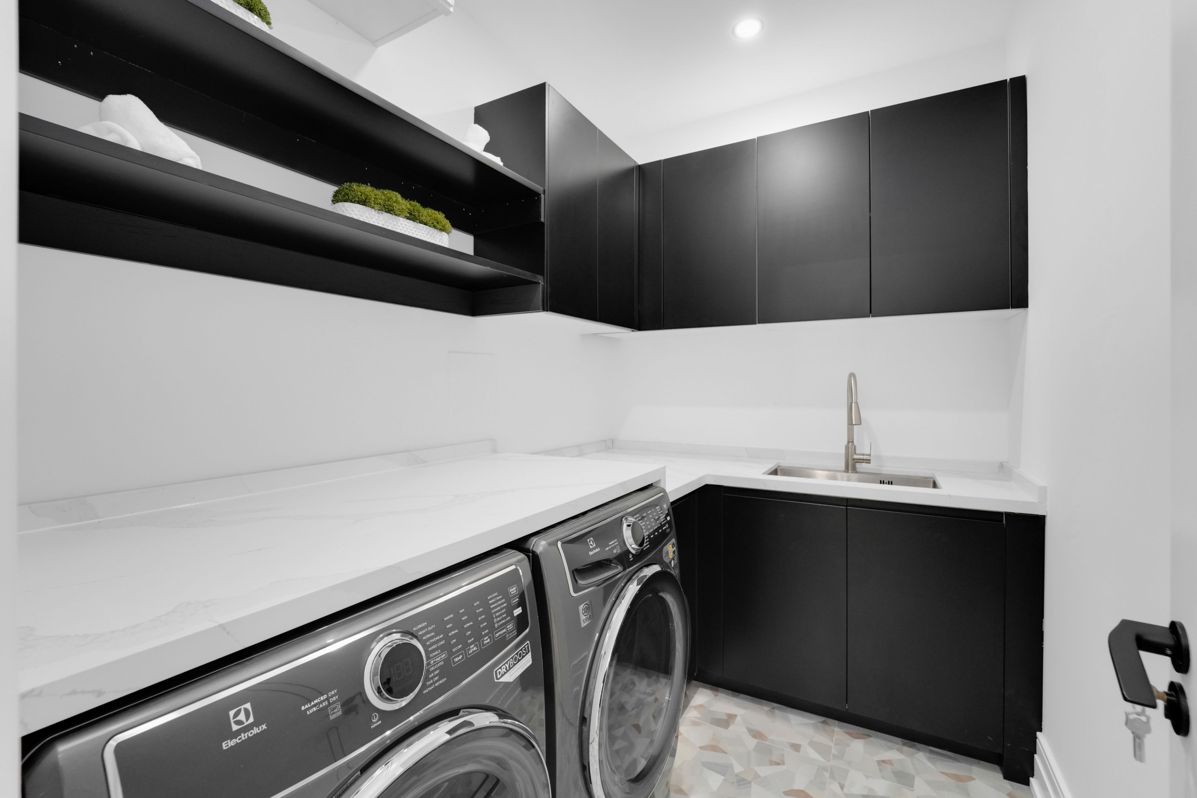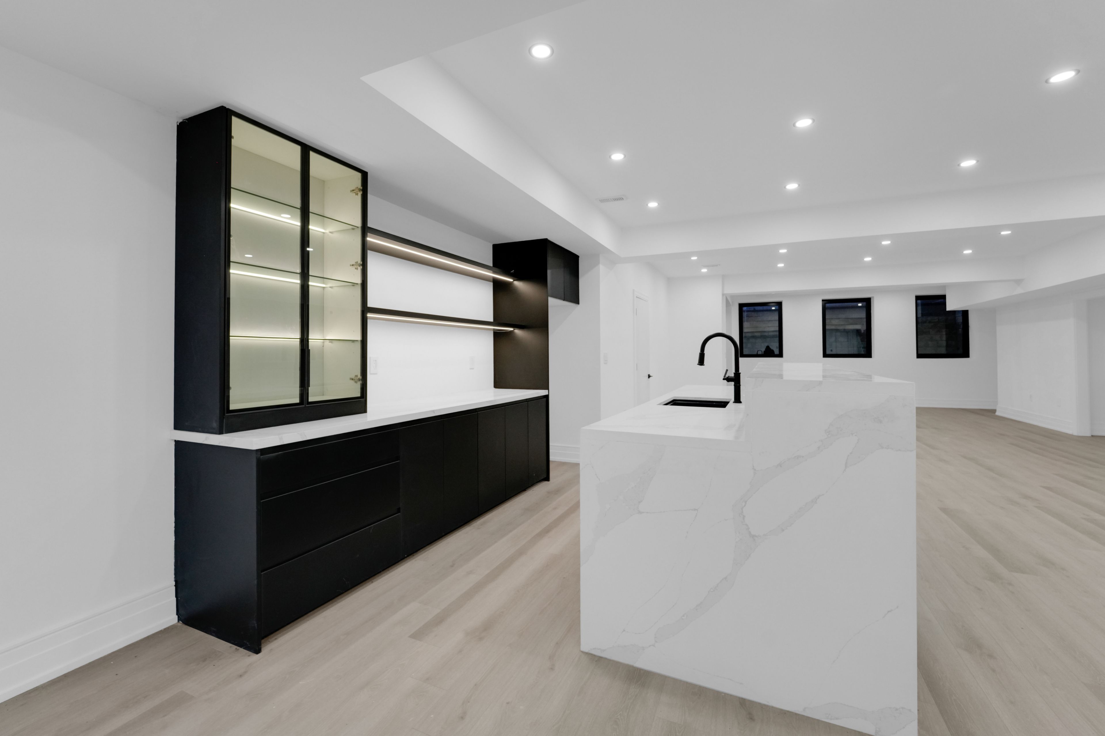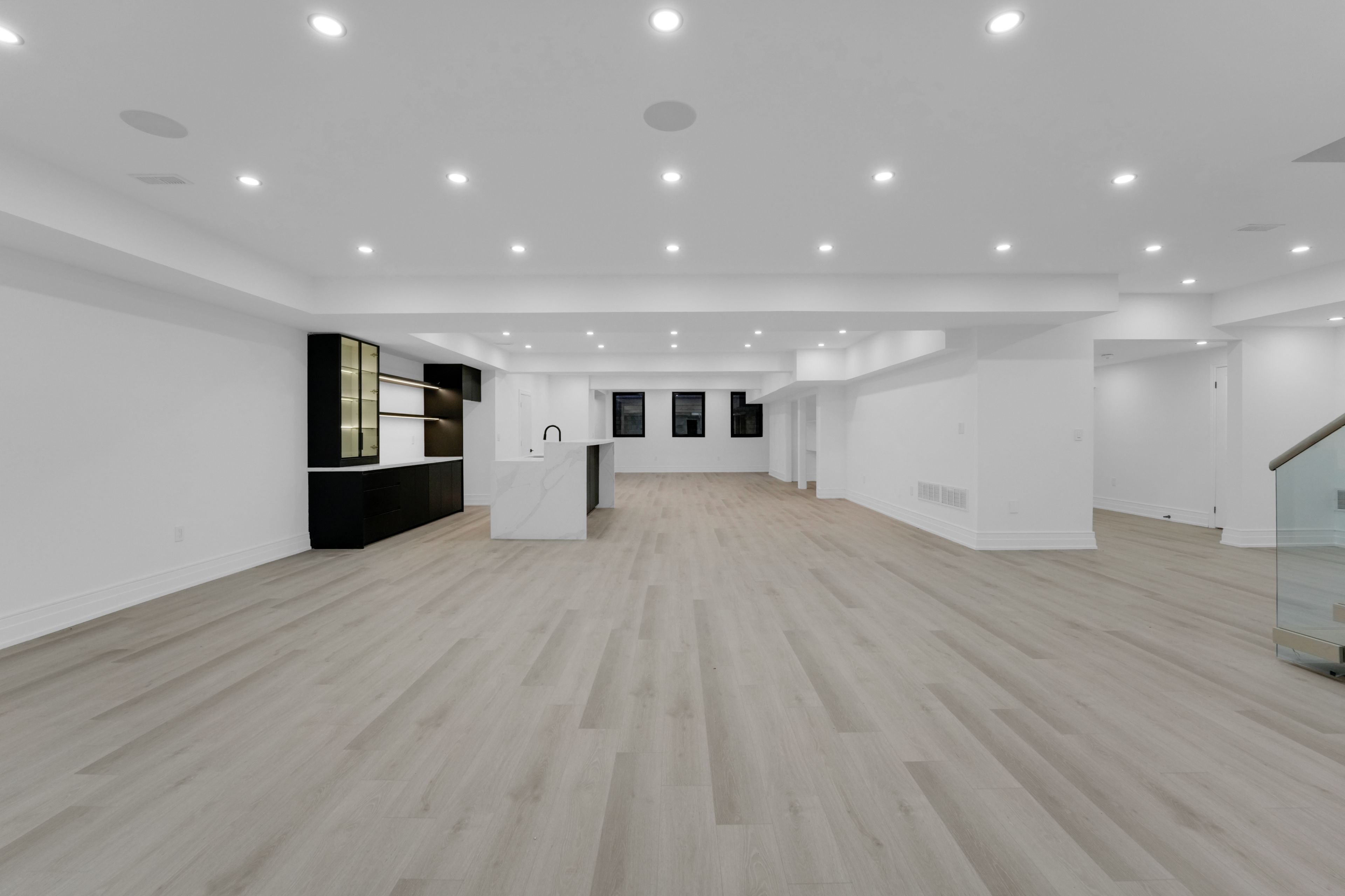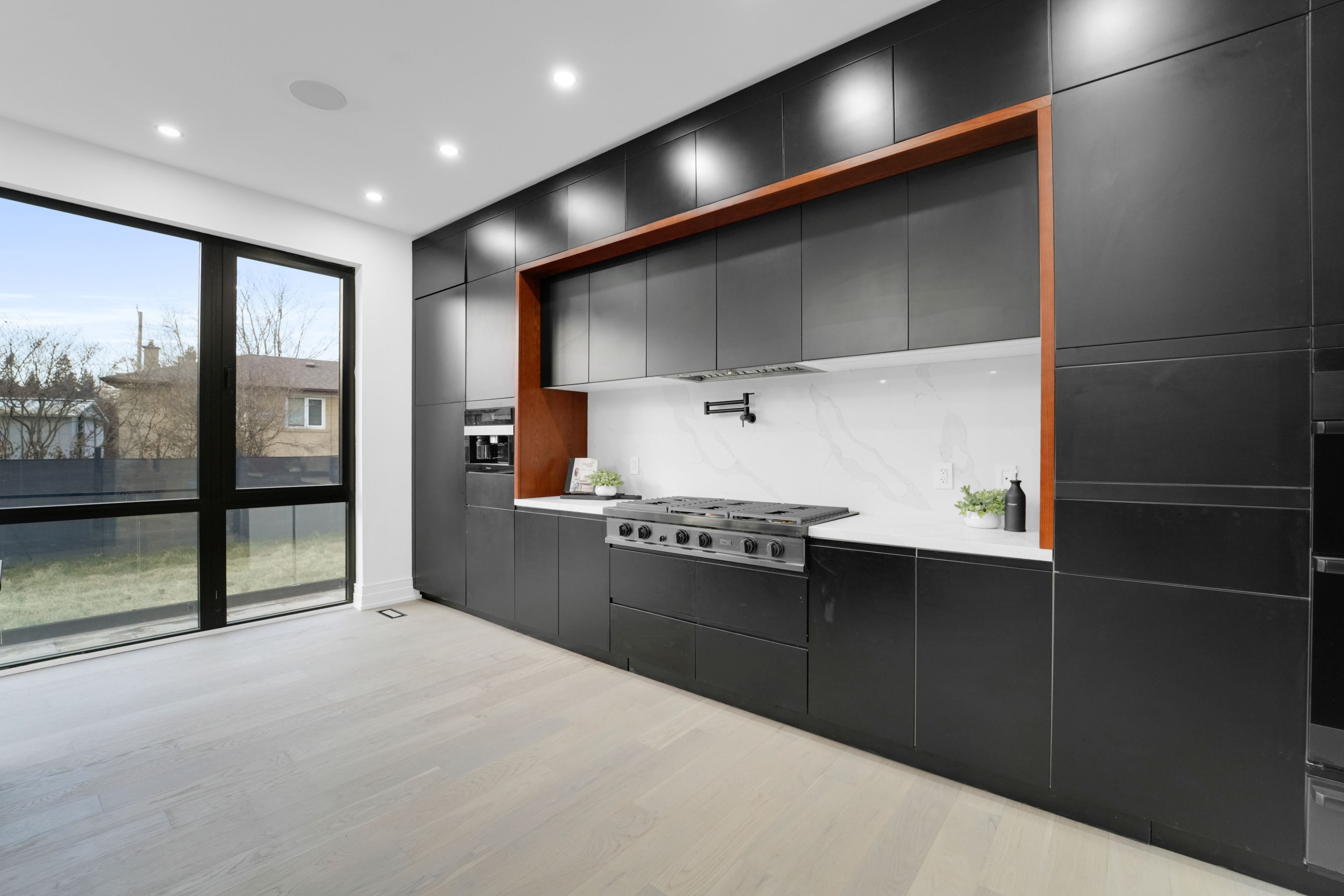 Architect-designed. Never lived in. Statement residence in bronte. Crafted by ni ni (b. C. I. N. #41885), this custom contemporary sits on a rare pie-shaped lot with exceptional rear width and privacy, minutes to lake ontario, bronte marina and waterfront trails. Not builder-grade-designed, permitted and executed to a cohesive architectural vision. The home offers 5 bedrooms, 6 bathrooms and a dedicated pet spa. A grand foyer opens to an open-concept living area anchored by a dramatic 23-ft floor-to-ceiling window wall. Premium aluminum gliding windows with german hardware, engineered white oak flooring and ambient pot lighting enhance the bright, airy feel. Chef-inspired kitchen with top-of-the-line dacor appliances, custom cabinetry, calacatta marble backsplash, pot filler and a waterfall island. Napoleon fireplaces in living and family rooms. Main floor guest suite with private ensuite; private office with separate backyard entrance. Cambridge hydraulic elevator to all levels. Upstairs: three bedrooms with spa-inspired ensuites, walk-in closets and 12 ft 3 in ceilings. Fully finished walkout lower level with radiant heated floors (ready), home theatre, recreation space, full kitchen/bar, guest suite, oversized cold storage and direct backyard access via premium aluminum doors. Exterior: fully fenced yard with aluminum perimeter and frameless glass railings; large inground pool with heating provisions; heated driveway permit approved. Systems and extras: control4 automation (3 ipads), whole-home audio, security system, central vacuum, 3 fireplaces, 4 skylights, bbq rough-in and parking for up to 8 vehicles. A rare, meticulously executed contemporary home offering luxury, functionality and proximity to bronte's waterfront lifestyle.