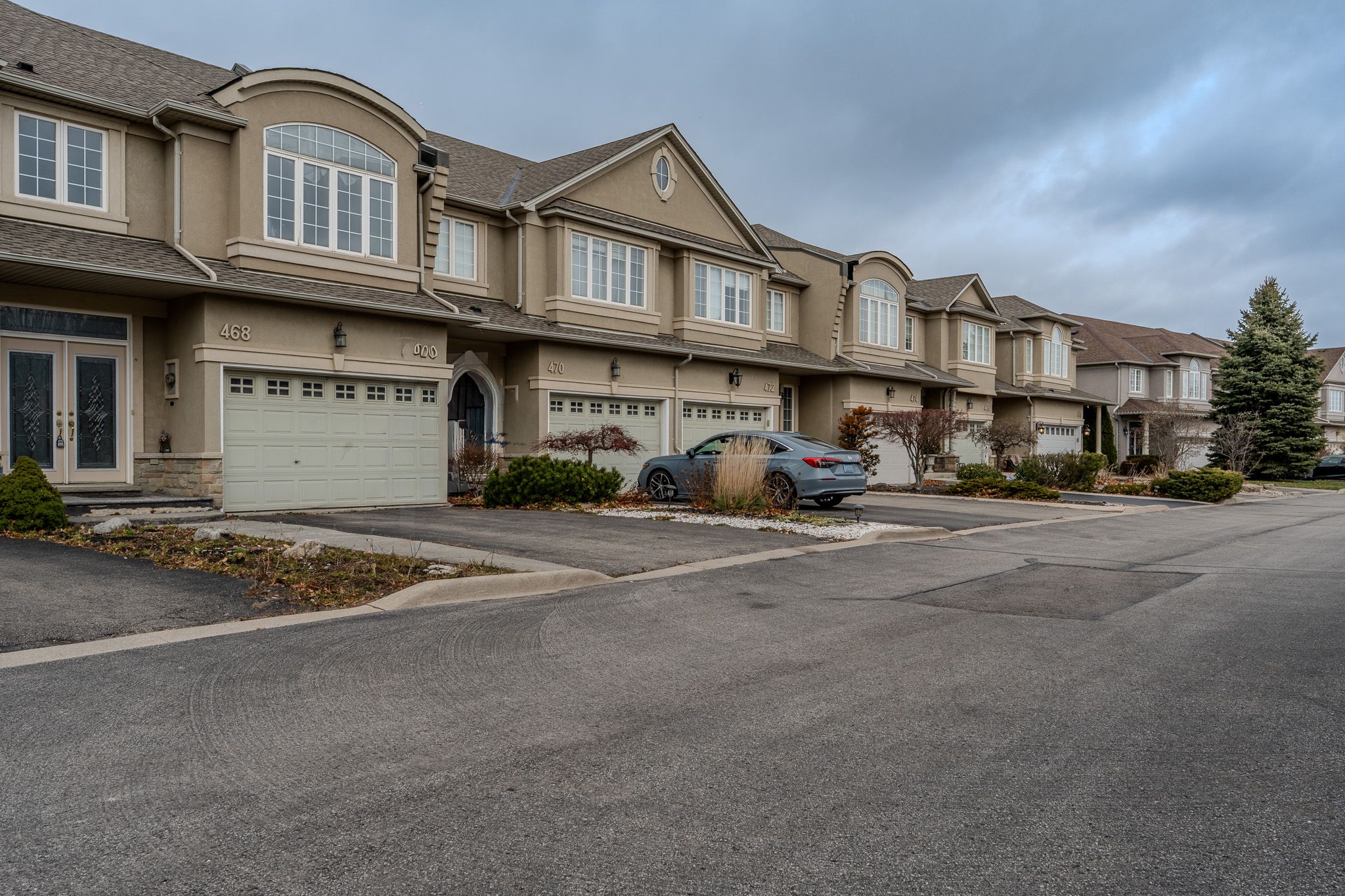 Welcome to 468 stonehenge drive, free hold with road maintenance , a beautifully freehold appointed townhome nestled in the prestigious ancaster meadowlands community. This spacious carpet free offer 3 bedrooms, 2+2 bath residence offers an open-concept main floor with rich hardwood flooring, perfect for family living and entertaining alike. The fully finished basement includes recreational and a bathroom, providing versatile space ideal for a guest suite, home gym, or media room. Step outside to enjoy a fully fenced backyard, offering privacy and room to relax or entertain. Located just minutes from top-rated schools, upscale shopping, fine dining, scenic trails and easy access to alexander lincoln and hwy 403.