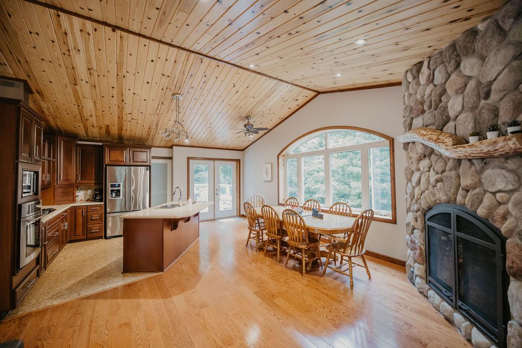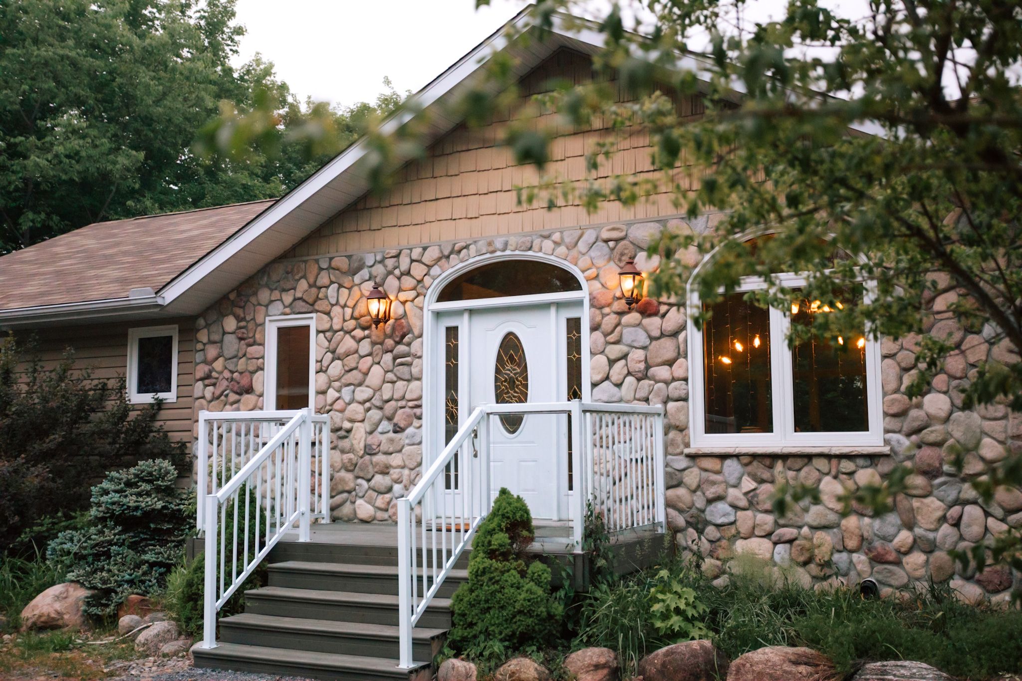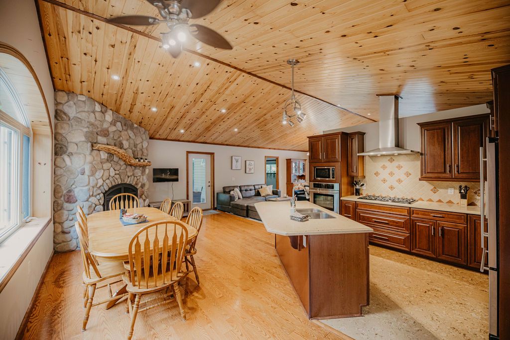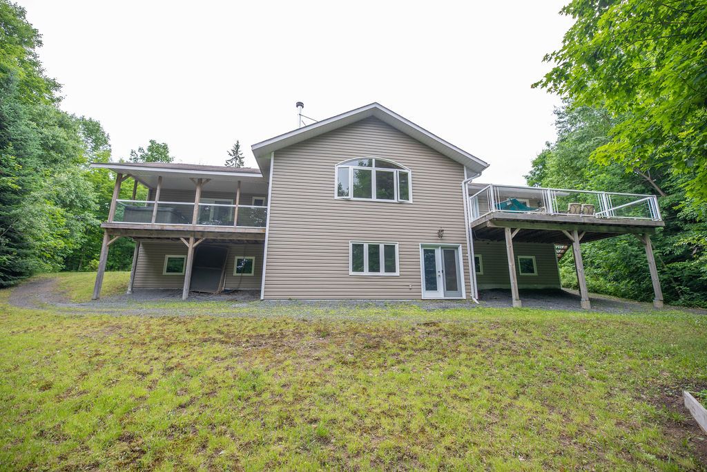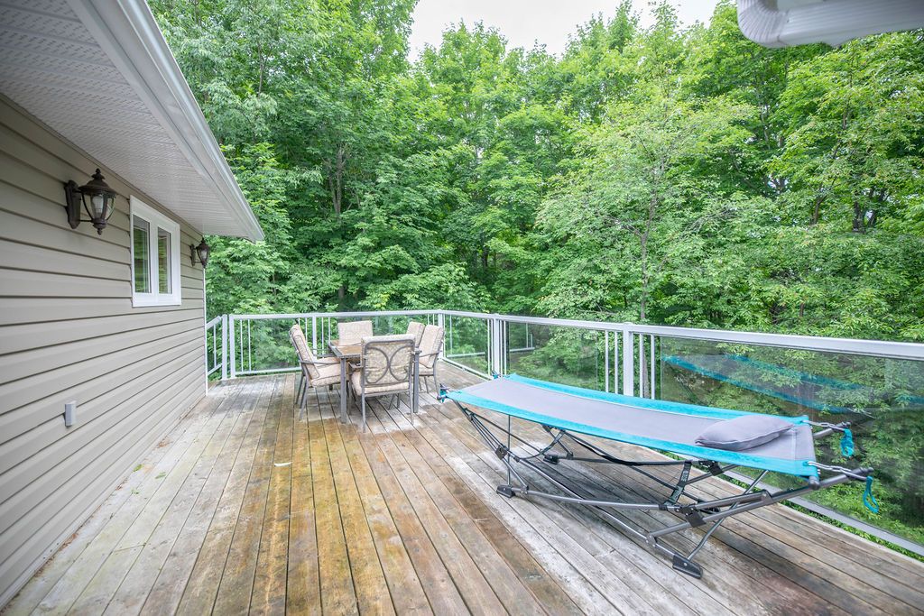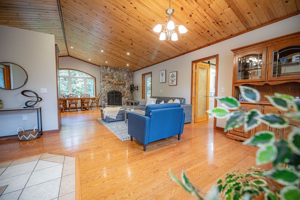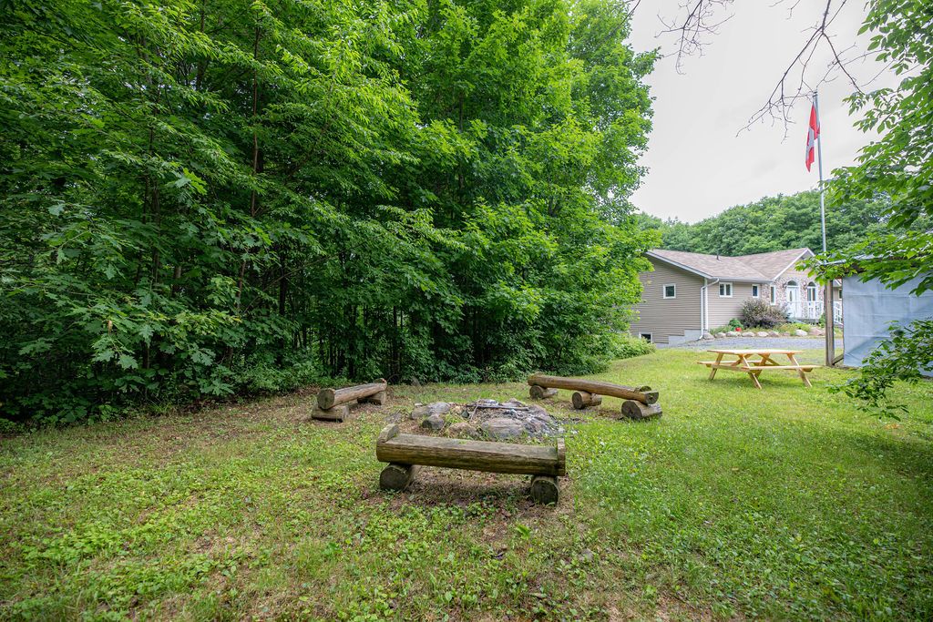Located on a private nearly 5-acre treed lot! This bungalow offers a quiet and comfortable lifestyle surrounded by nature! One of the main features is detached 35' 24' 3-car garage, well suited for use as a workshop, with wall-mounted carpenter benches already in place or storage of boats, atv's and all your toys! Main floor features hardwood and tile flooring, a custom kitchen with granite countertops, stainless steel appliances, a large island, and beautiful forest views, along with a walk-in pantry with a sink, main floor laundry, and an open living and dining area. There are 3 bedrooms on the main level, including a spacious primary bedroom with a walk-in closet, 3-piece ensuite, and walkout to a screened-in porch and hot tub. Finished walk-out basement includes 2 additional bedrooms, a 3-piece bathroom, a large rec room with a fireplace and wet bar, and a sauna. The home is built with energy efficient concrete foam construction, has newer windows. The cottage features a partial backup generator to supply power during outages, along with a water treatment system that includes filtration and a uv purification system. Close to trails, lakes, beaches, atv and snowmobile routes, and with easy access to highway 11 and 518. Ideal for those looking for space, privacy, and a peaceful setting! You will not be disappointed!