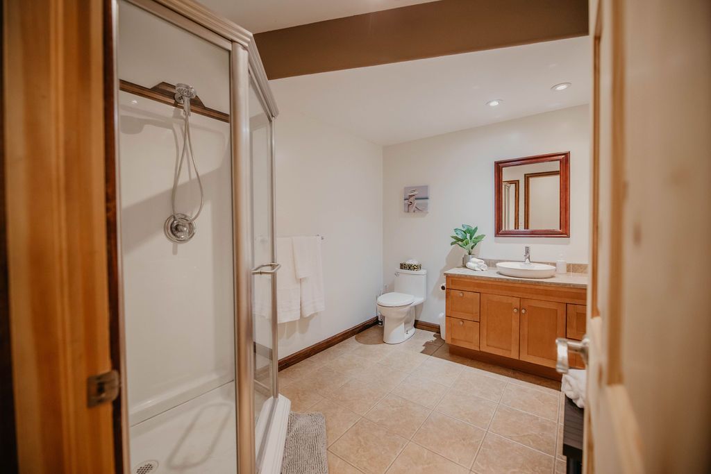 • Finished walk-out basement includes rec room, fireplace, and sauna.