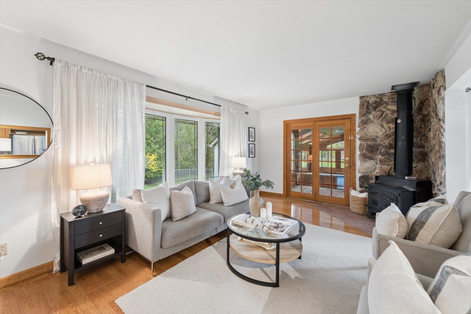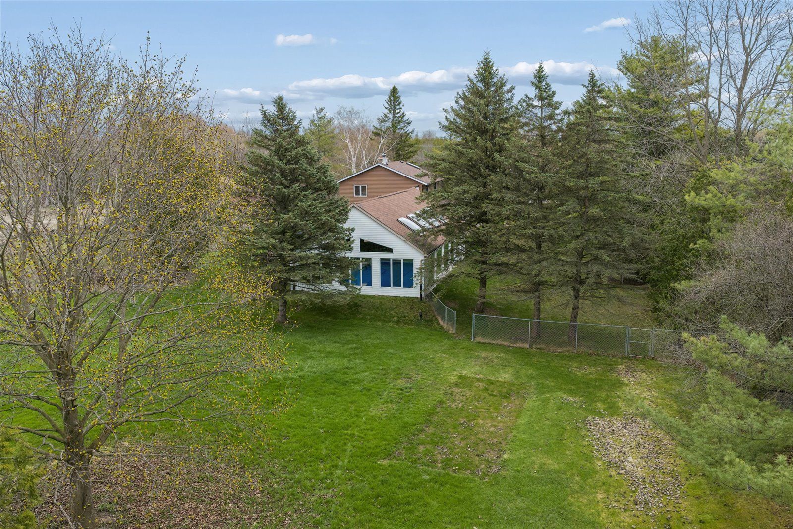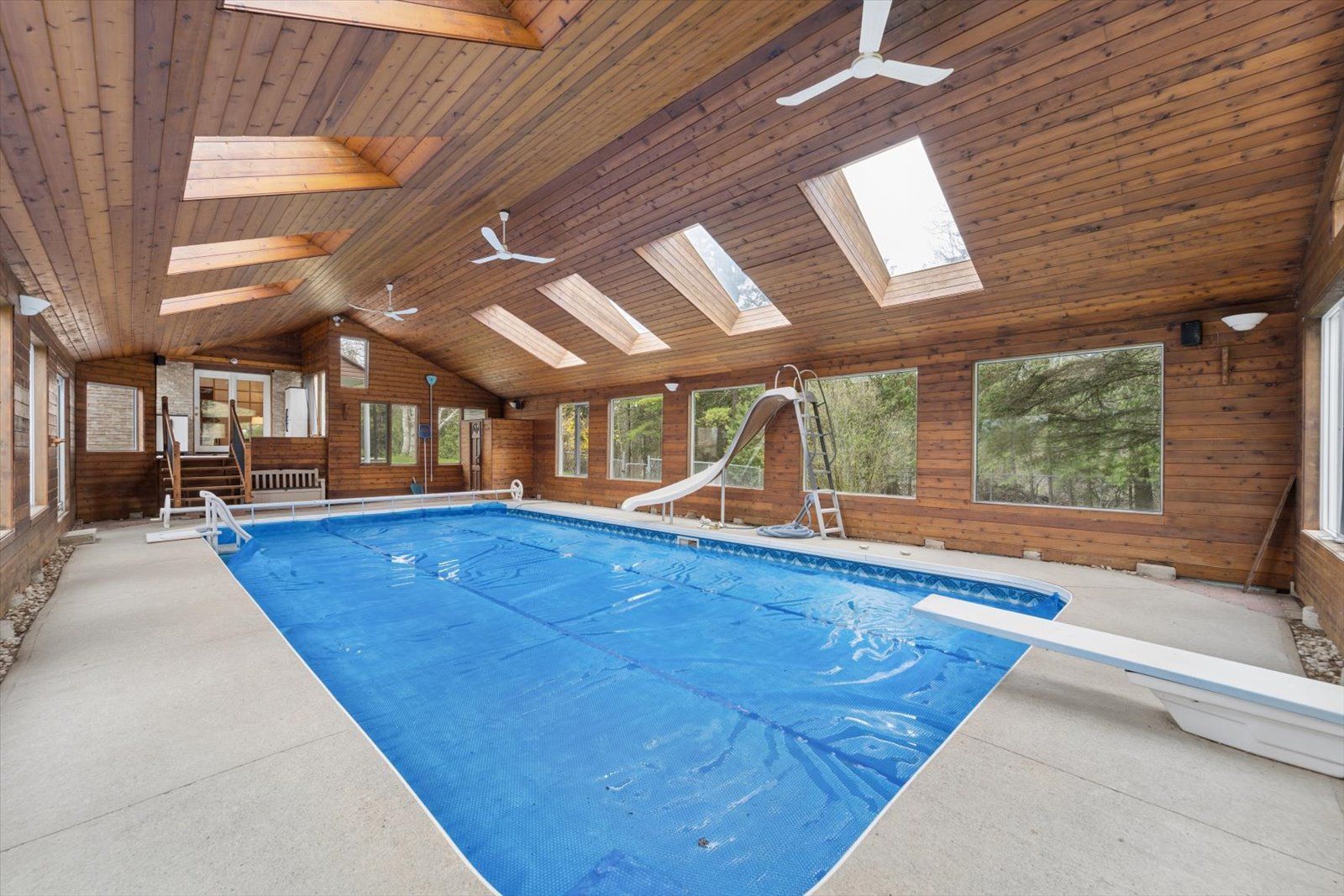 Incredible opportunity for peaceful country living with the convenience of nearby city amenities on this 2. 5 acre property! Offering privacy, space, and versatility, this unique home delivers a true "country in the city" lifestyle, just minutes from schools, shopping, and everyday essentials. The main floor features multiple walk-outs, heated kitchen/entry/bathroom floors, 2 wood burning fireplaces, and access to a 3-season pool area where you can stave off the summer sun. In the winter, there is lots of room to entertain or relax with the family in the oversized family room. When it's time to rest, an expanded primary bedroom features a sitting area and his 'n hers closets. The large driveway easily accommodates multiple cars and recreational vehicles. The multi-use outbuilding has power and supplementary heat, ideal for hobbyists, storage, workspace, or hobby farm use. If you've been searching for space, privacy, and rural charm without sacrificing proximity to amenities, this uncommon property offers the best of both worlds. Furnace 2023. Click the virtual tour link for a video tour.
