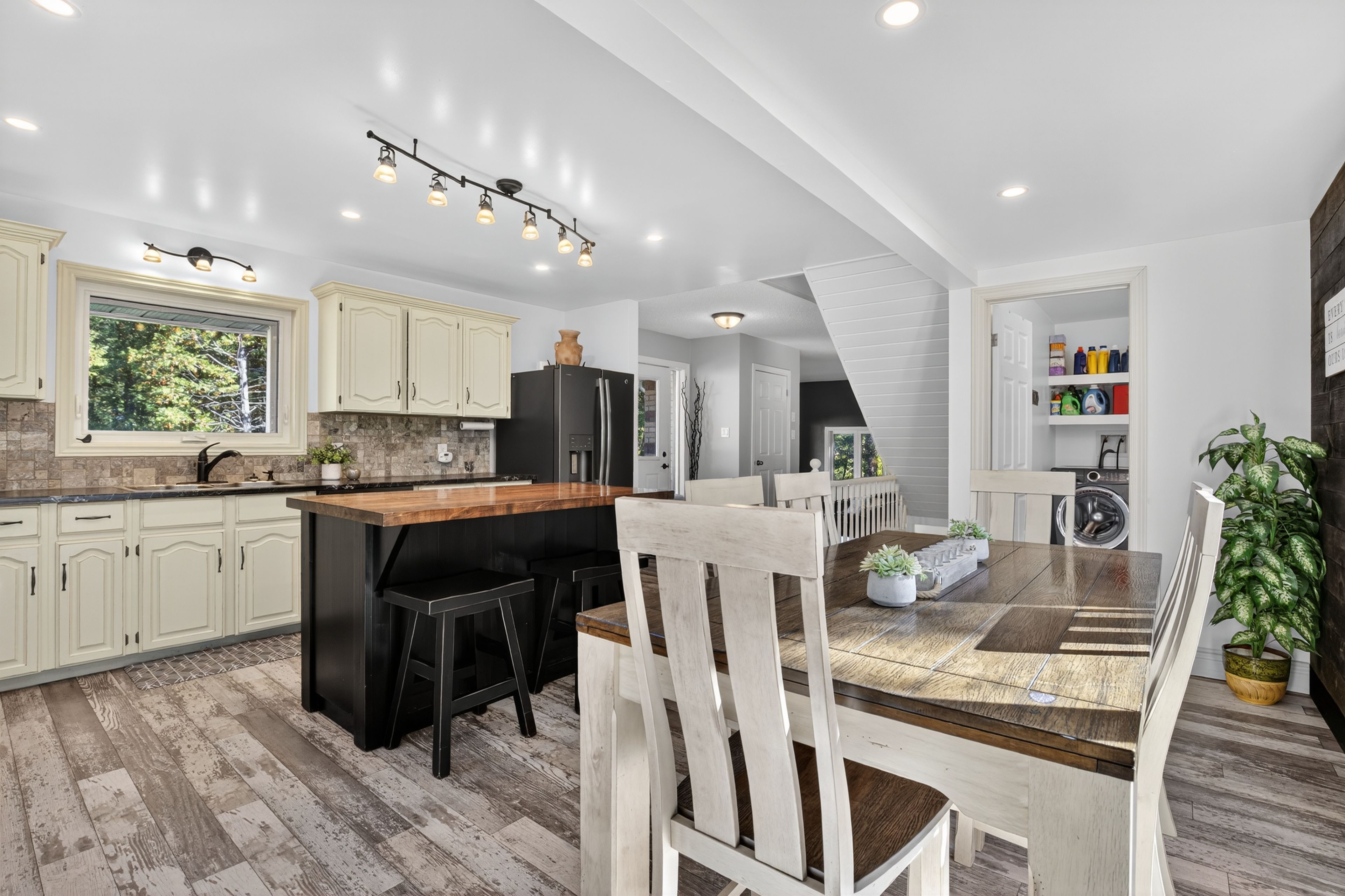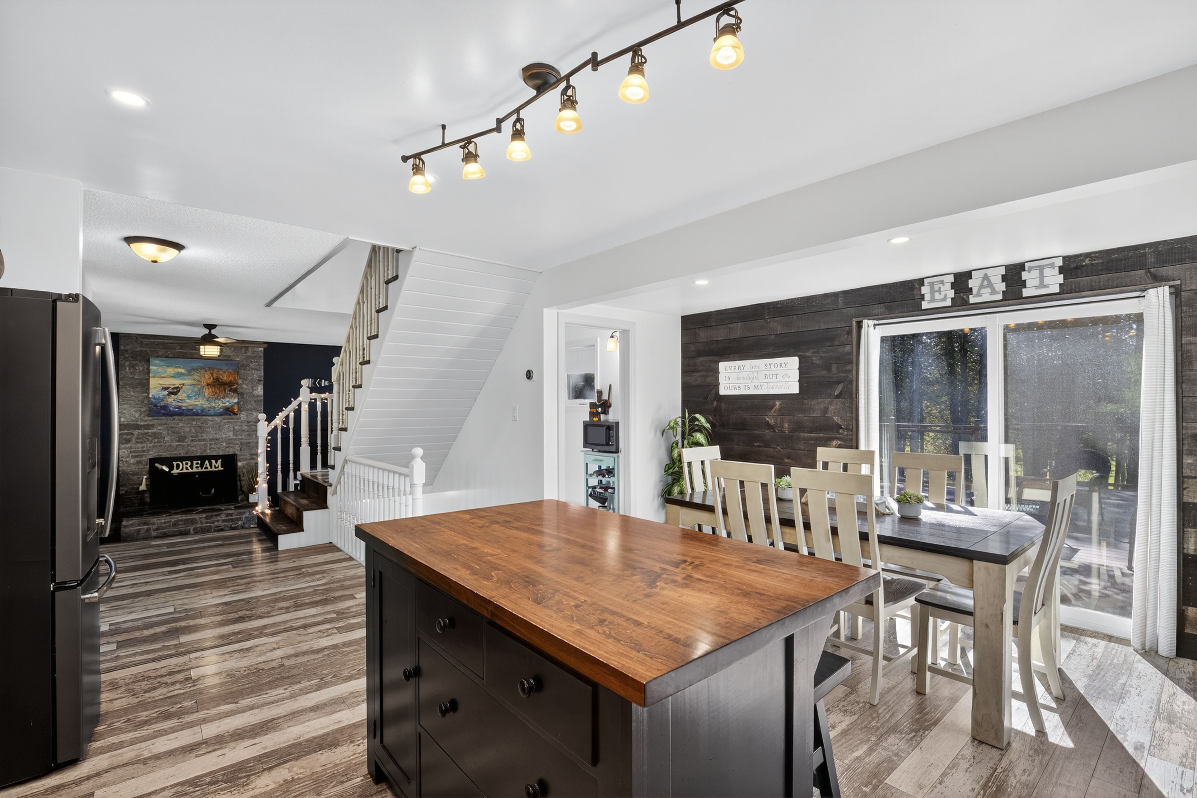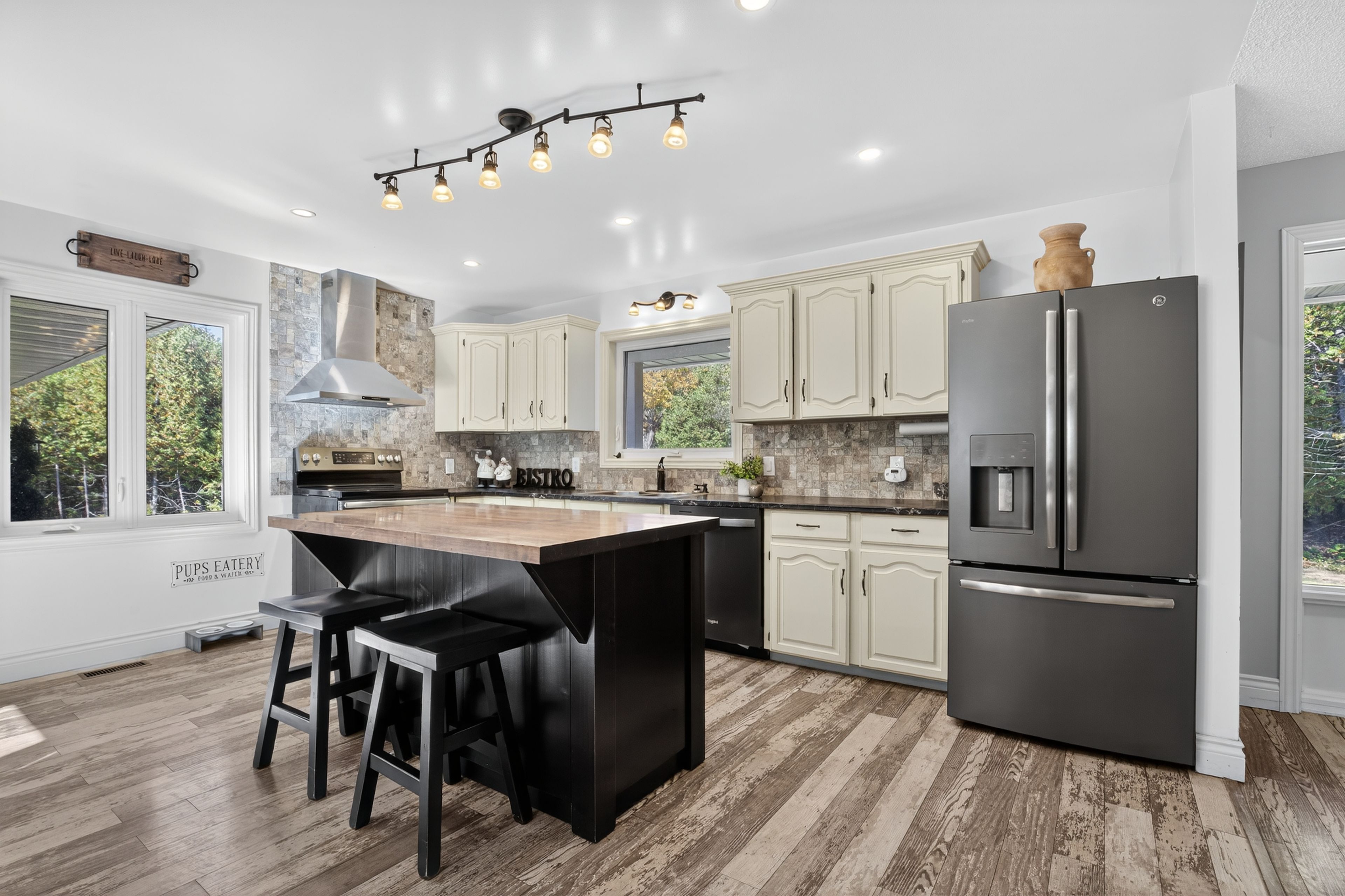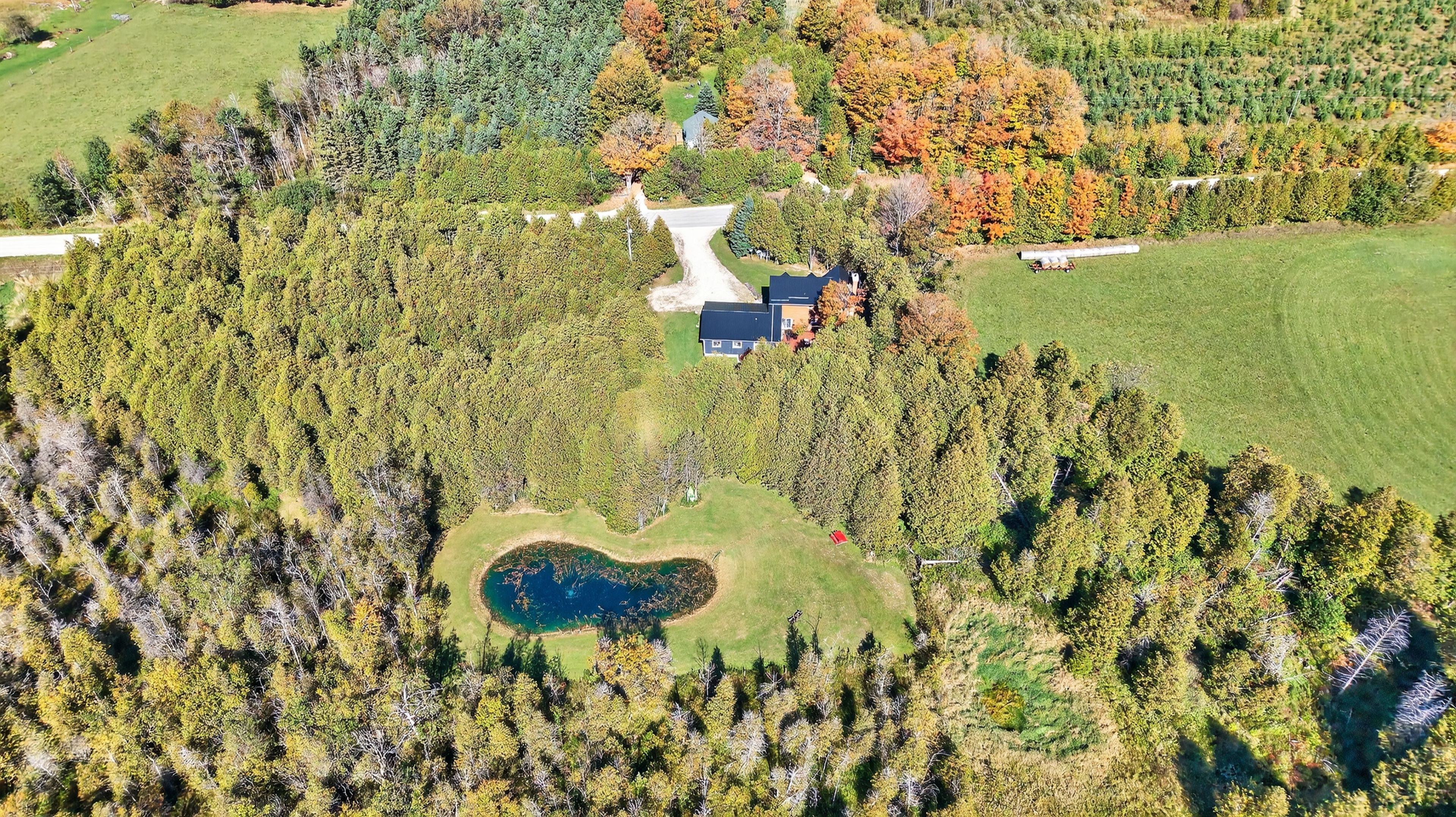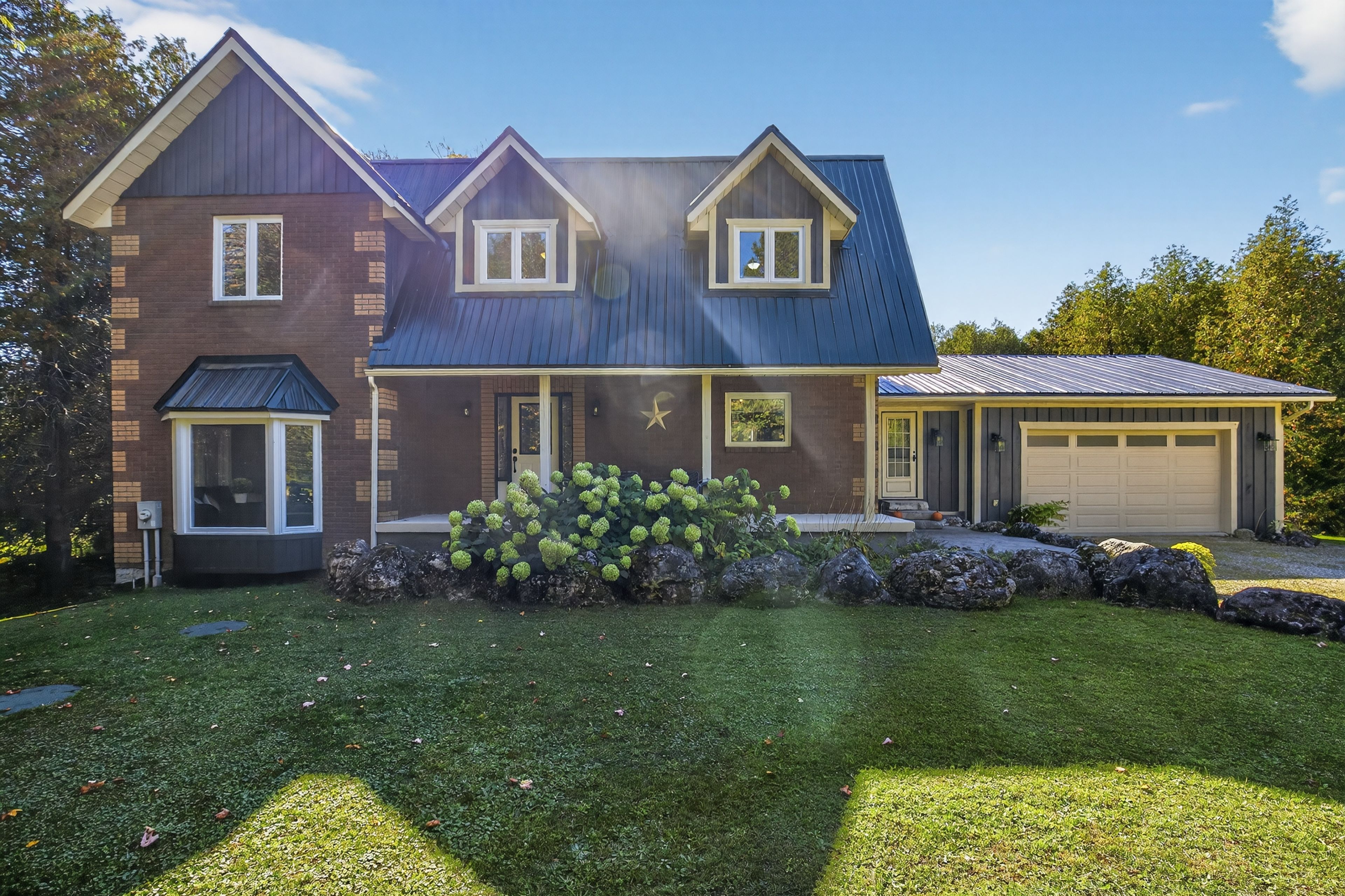 Discover the perfect blend of modern comfort and country charm, just 20 minutes from collingwood and minutes from lake eugenia. Situated on 2 acres, this 4-bedroom, 3-bathroom home features an open-concept kitchen and dining area overlooking your backyard oasis. A cozy sunken living room with a wood-burning fireplace sets the stage for ultimate relaxation, while the newly finished walkout basement provides endless possibilities for additional living space. The primary suite is equipped with an ensuite, walk-in closet, and picturesque windows. Unwind on the spacious, freshly stained deck with serene views of your very own pond. With a maintenance-free metal roof and tasteful finishes throughout, this home is truly move in ready. Steps from atv and snowmobile trails and close to ski hills and lakes, this four-season retreat is designed for both tranquility and adventure.