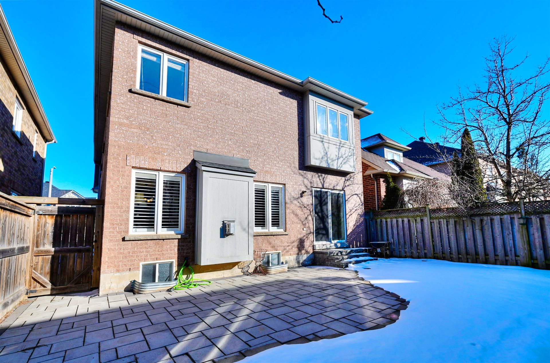 • Landscaped backyard features a large interlocking patio for outdoor enjoyment.