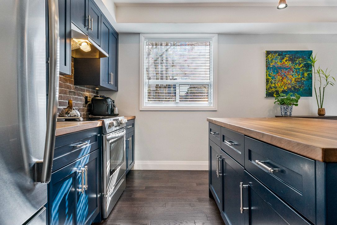 Looking for a true condo alternative? This newly and thoroughly renovated 2-bedroom corner unit townhome in burlington's sought-after roseland offers it all. Redesigned with an eye-catching aesthetic to fit any taste, this move-in-ready home welcomes you with a beautifully laid-out main floor and a view of the private fully fenced backyard, which includes bonus rear access for year-round enjoyment. The bold custom kitchen is a true centerpiece, featuring stunning cabinetry, quality hardware w/ the added bonus of a sink/bar prep area in addition to the butcher block island. Upstairs, you'll find 2 spacious bedrooms filled with natural light, an updated 4-piece bathroom, and a gleaming laundry area that will take the chore out of wash day! A newly installed high efficiency furnace ensures year-round comfort. Close to trails, water, highways and transit - you don't want to miss this one!