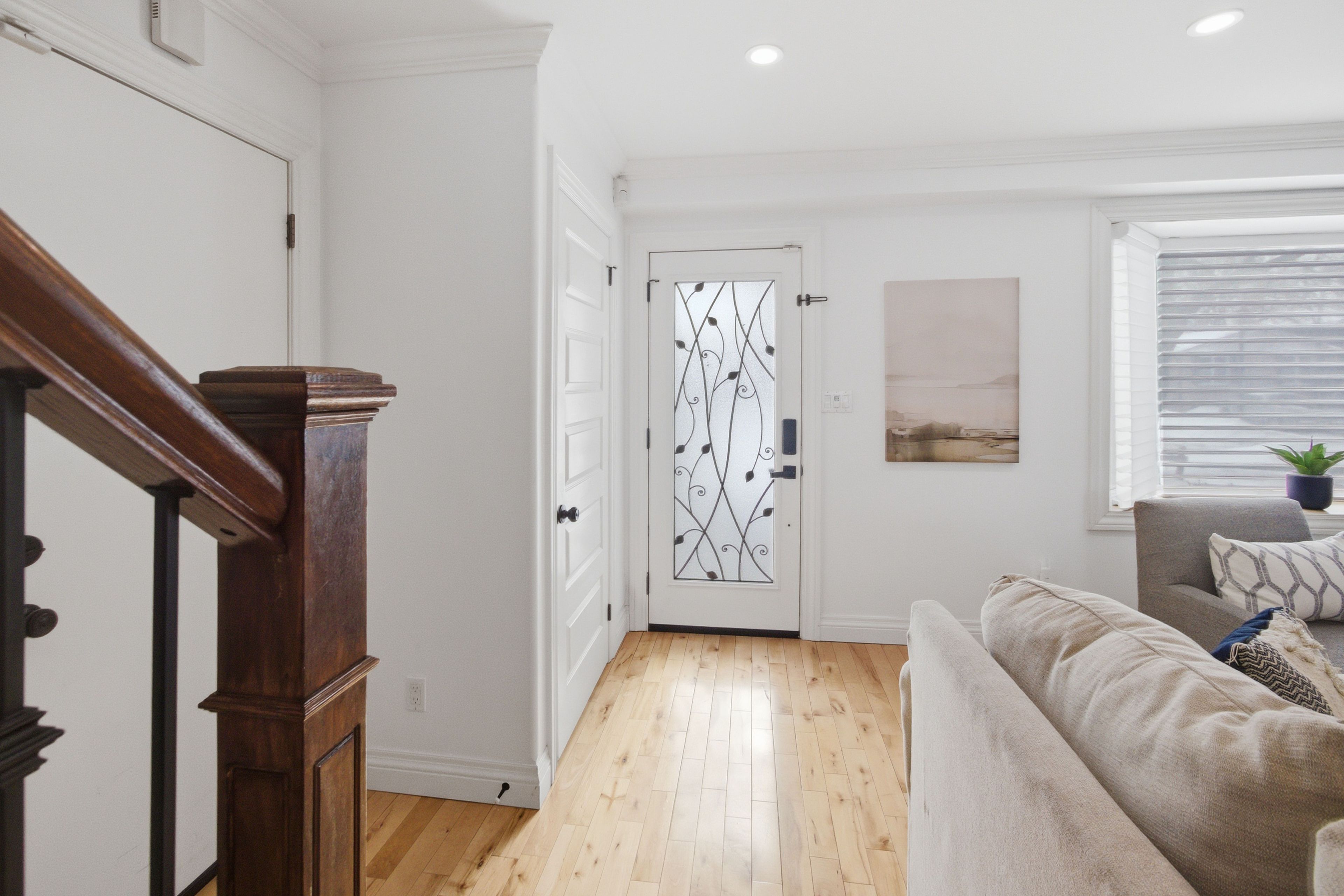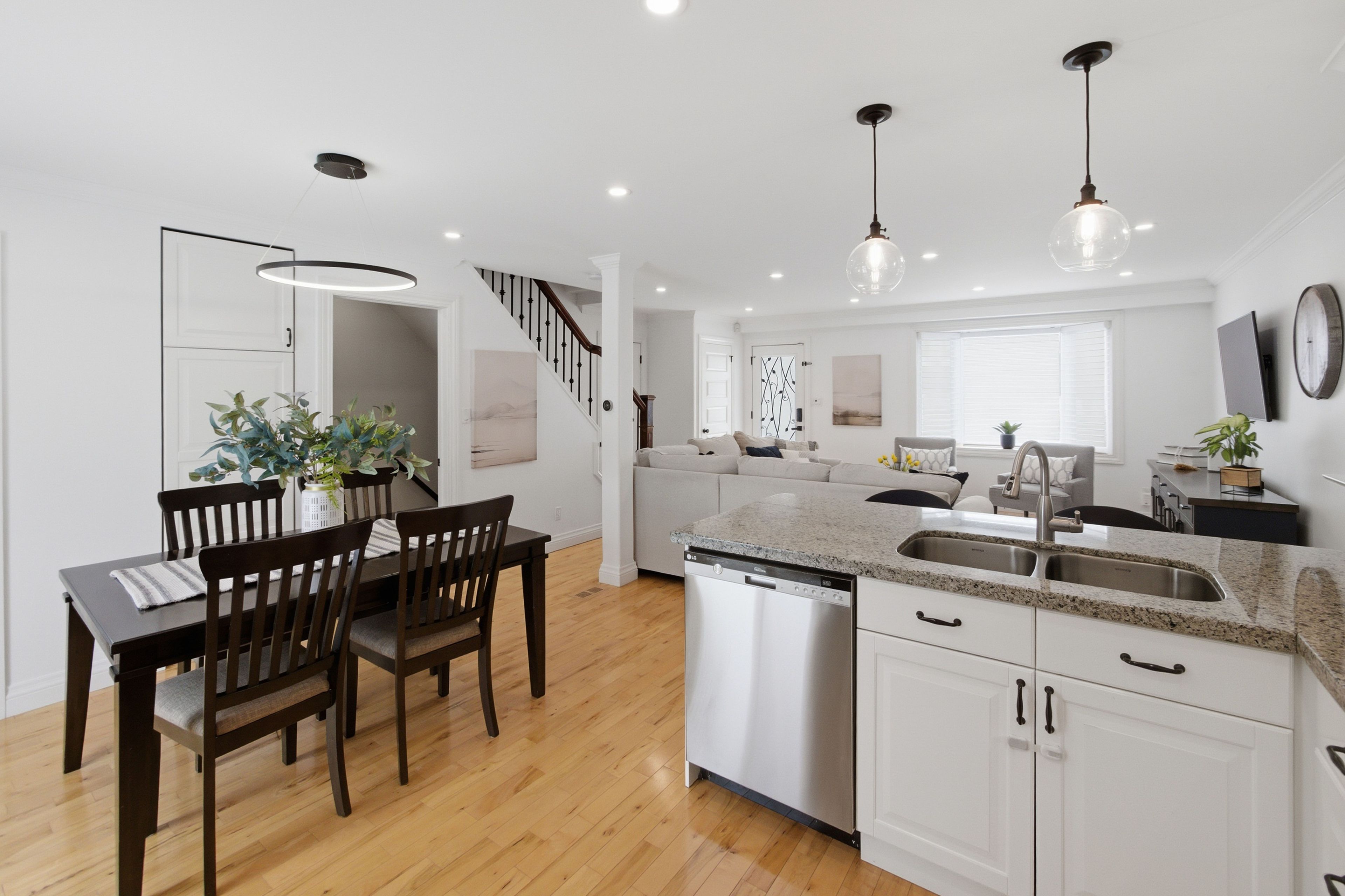 • Bright open-concept main floor with hardwood floors and spacious living area.