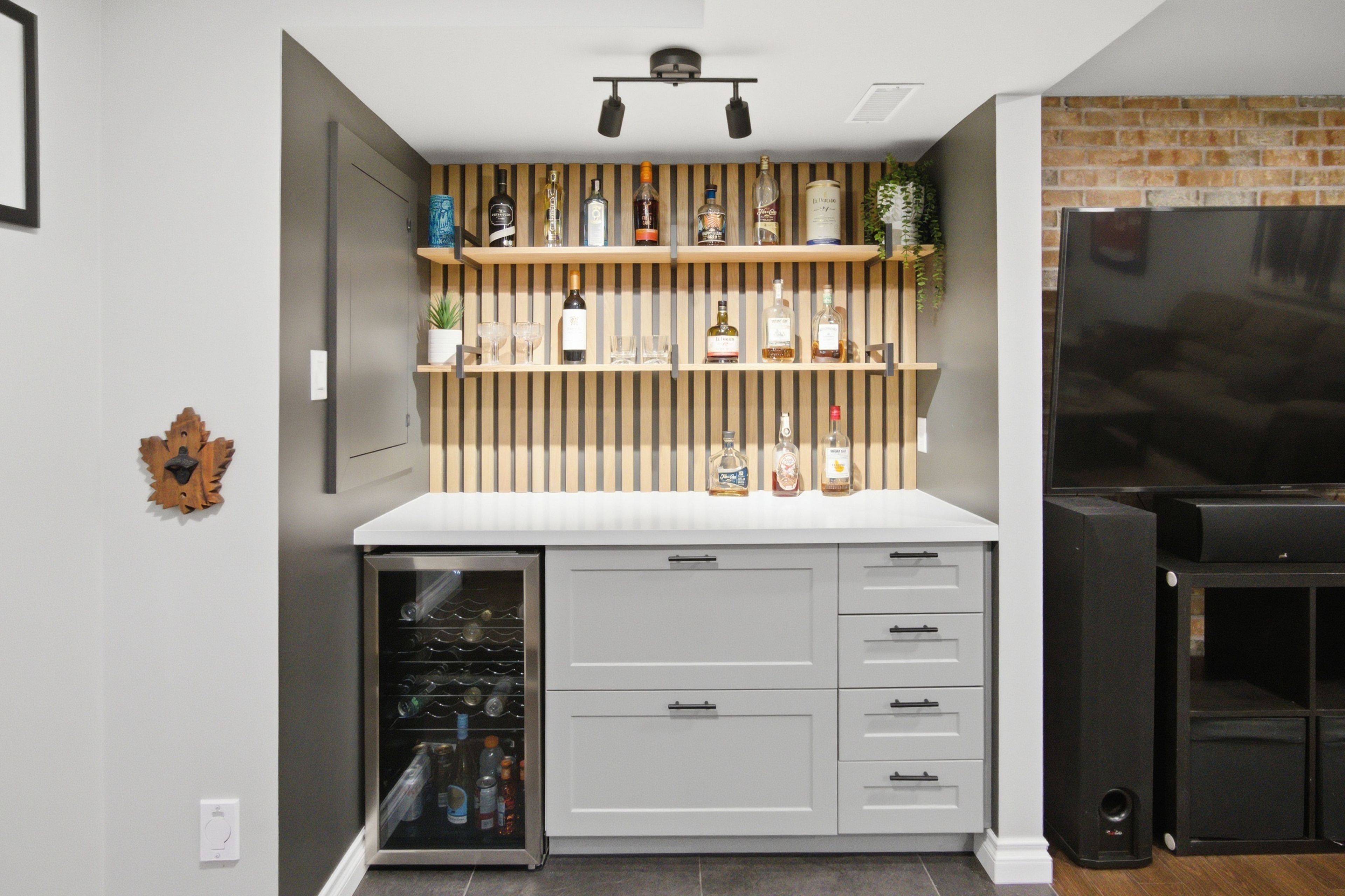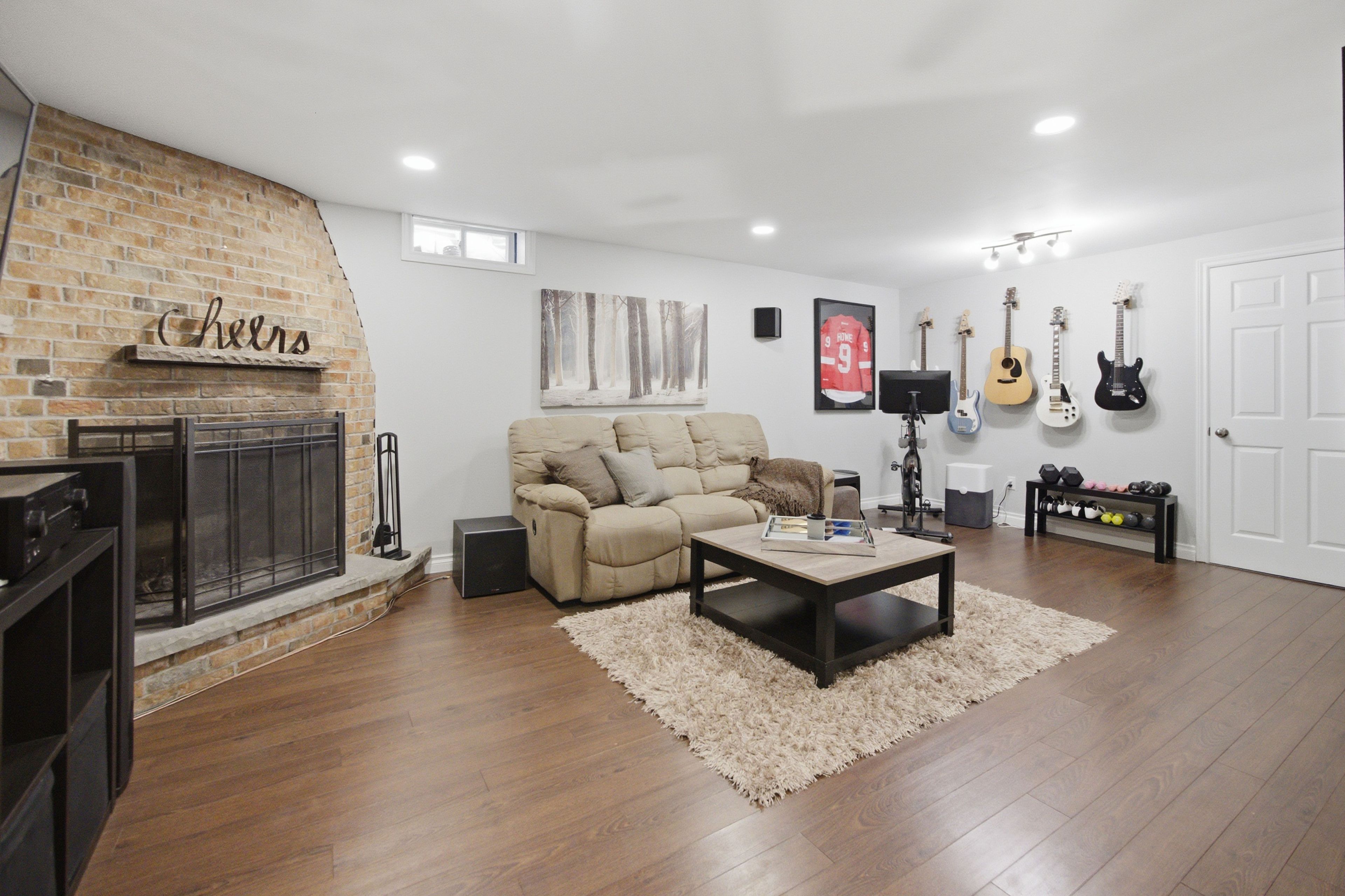 • Finished lower level with fireplace, dry bar, and extra living space for entertainment.