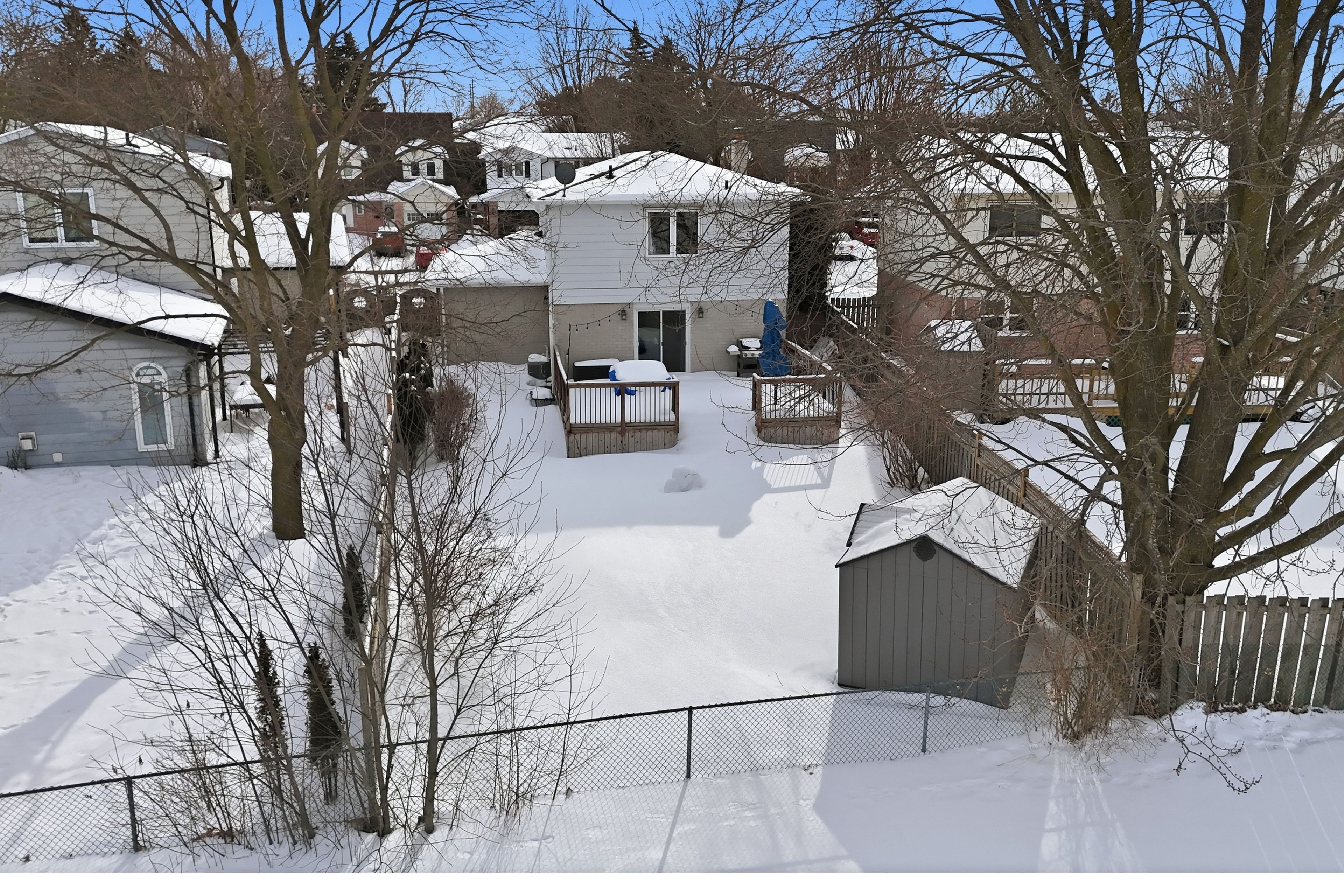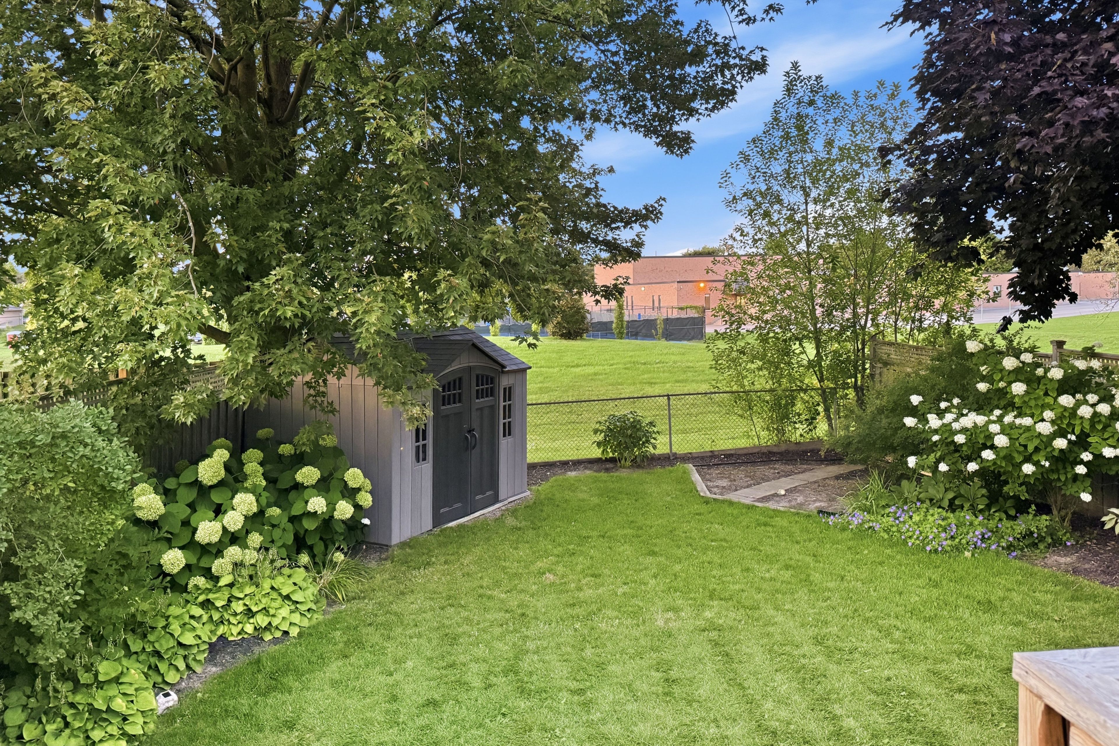• Elevated deck with views of the fully fenced backyard and no rear neighbors.