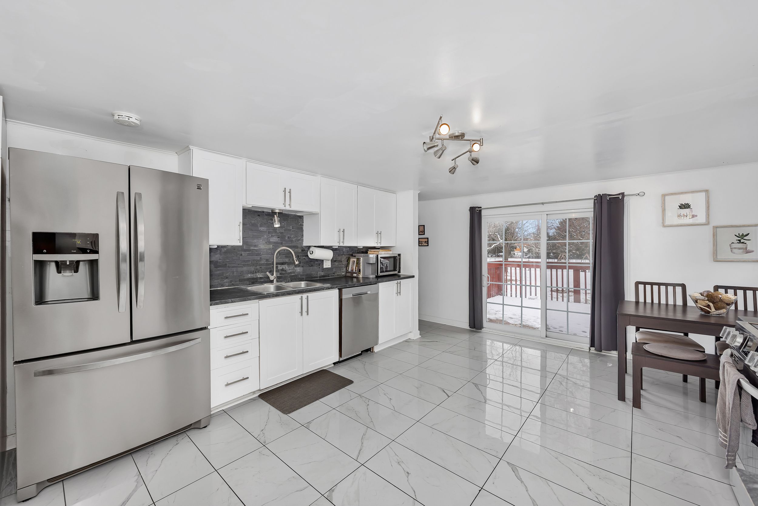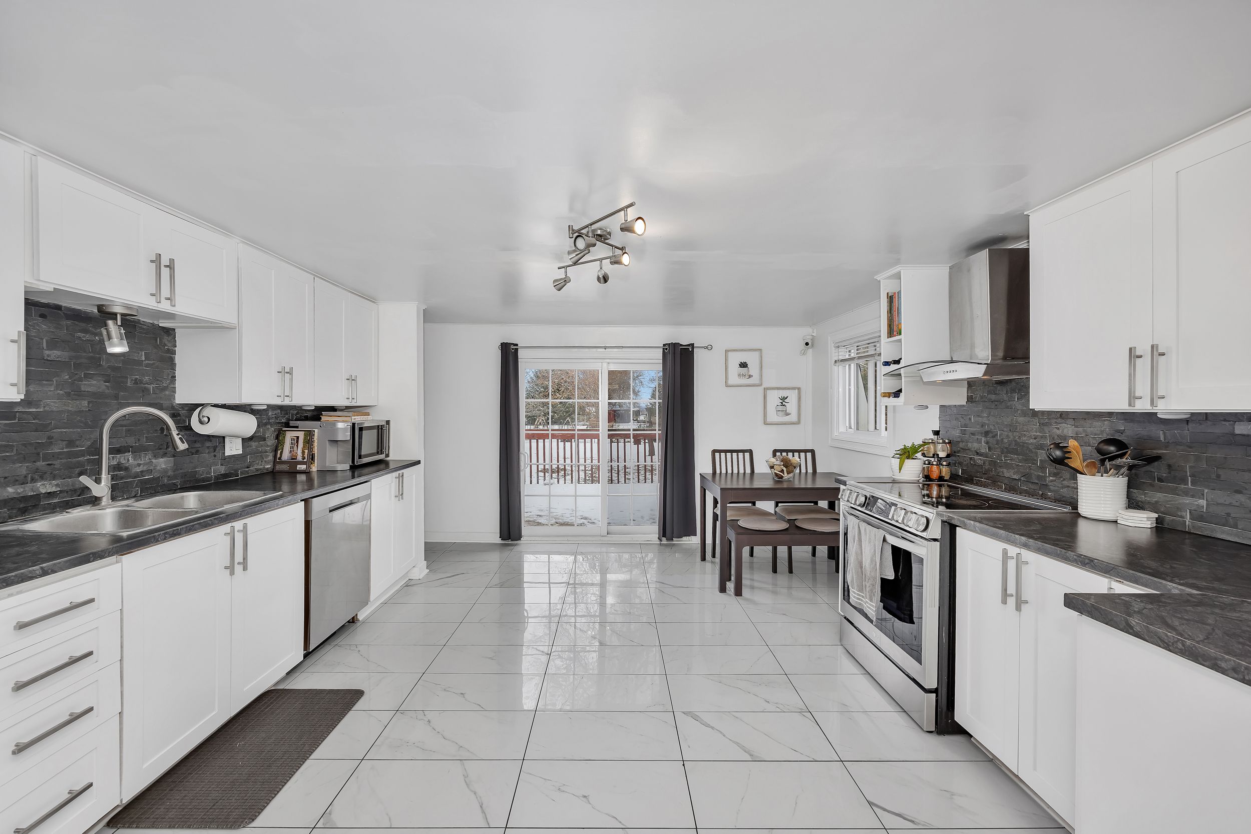 • Updated open-concept kitchen and dining area overlooking a cozy living room.