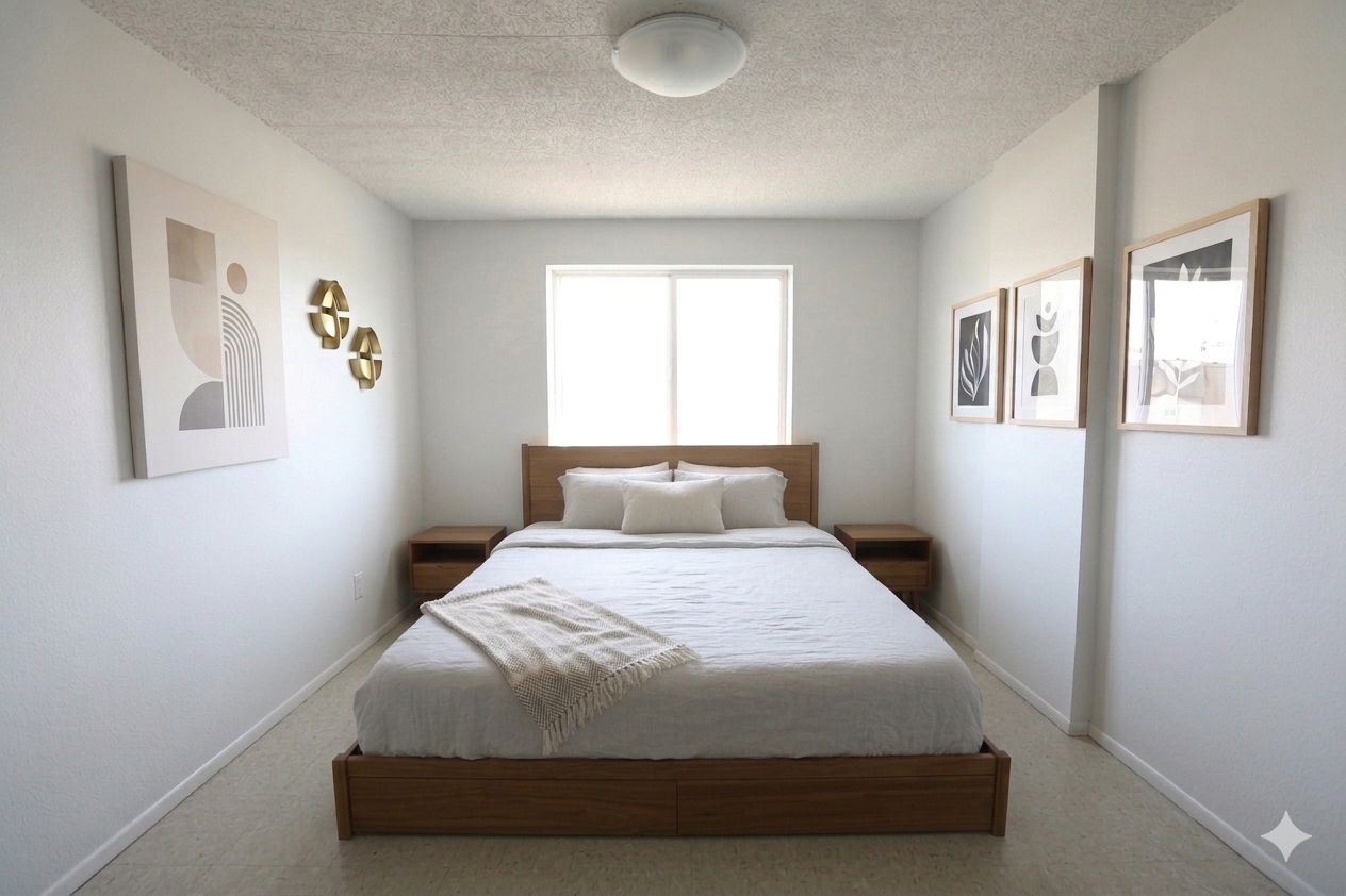 • Two spacious bedrooms paired with a bright living area.