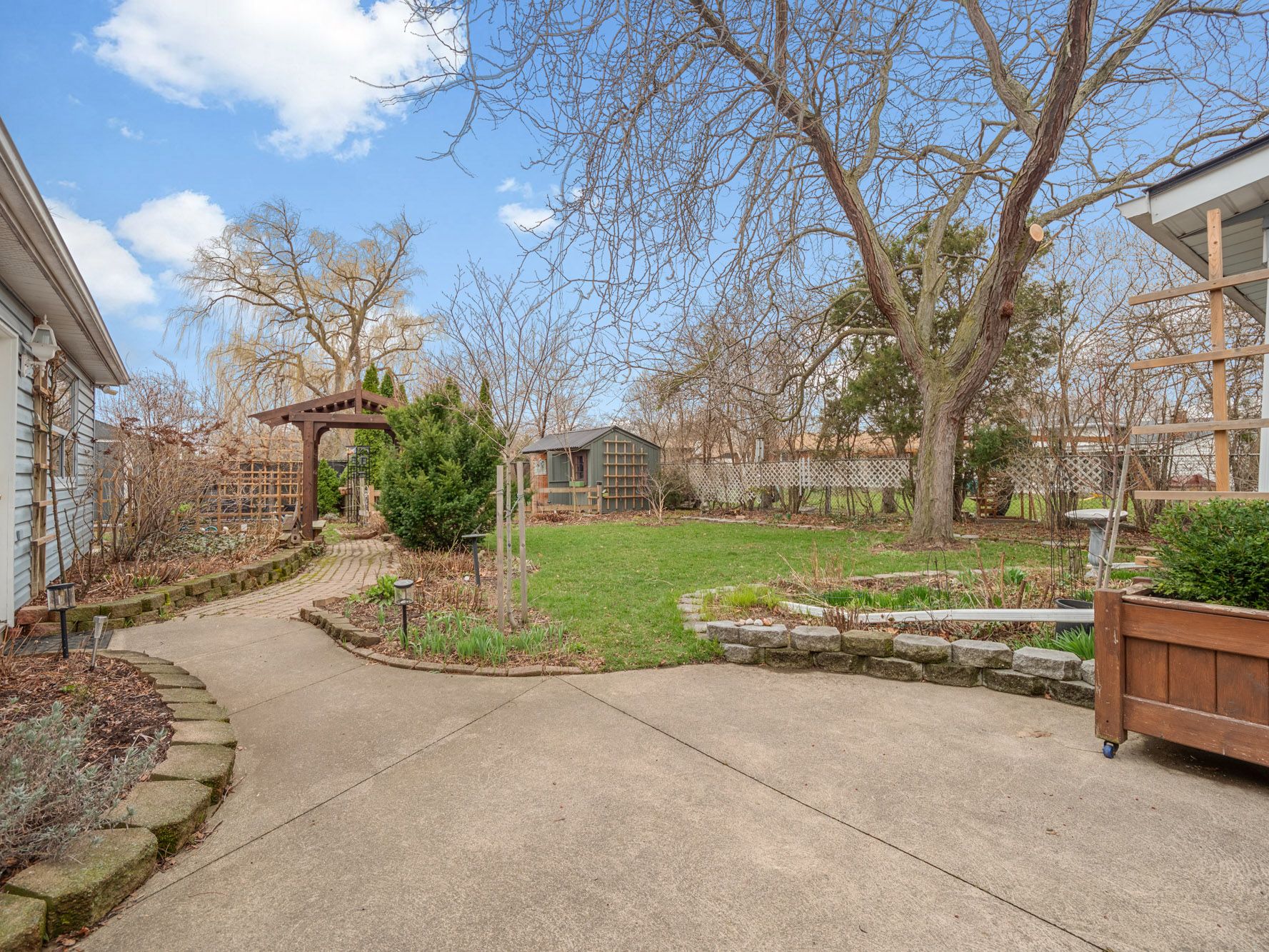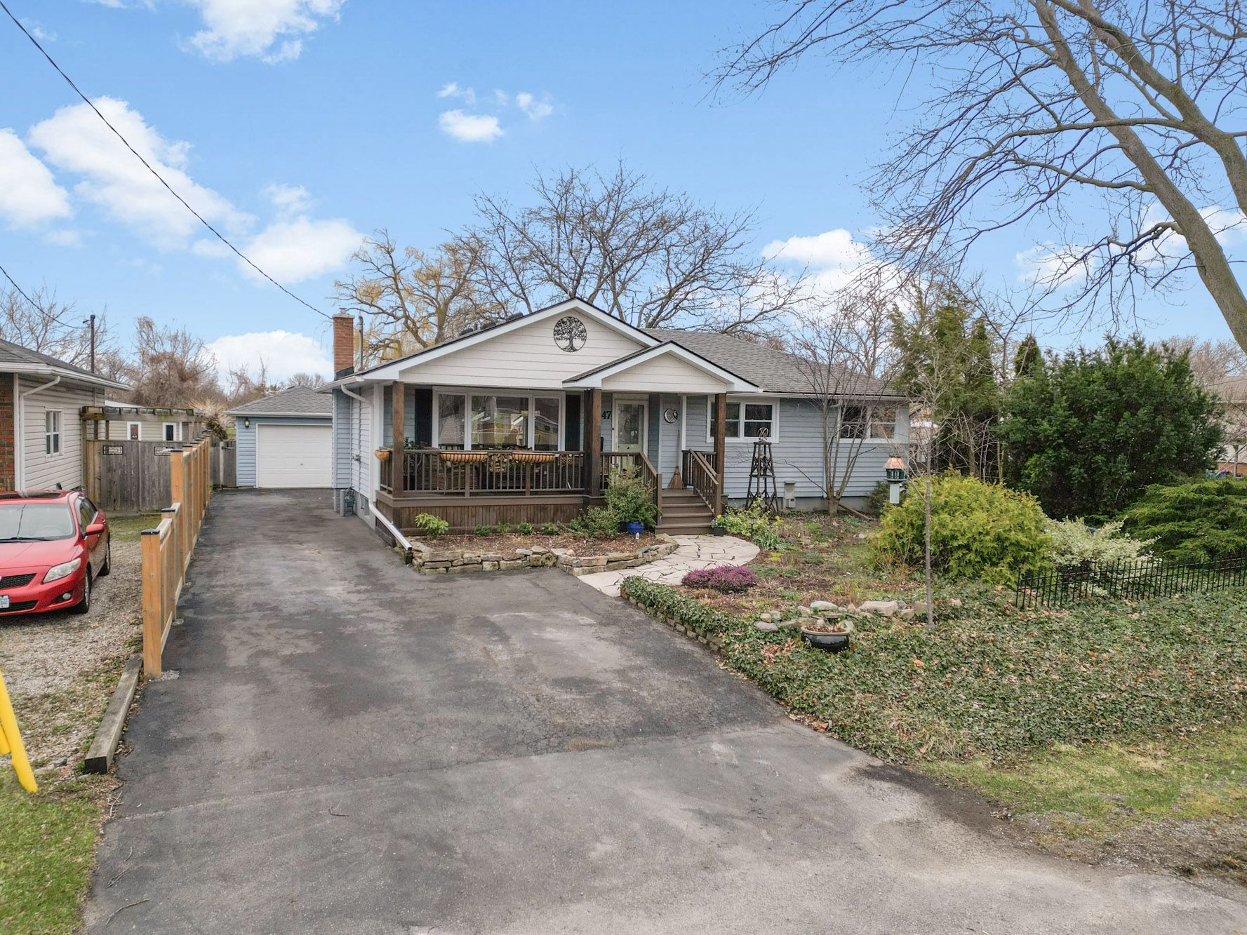While many homes and neighbourhoods in the far north-end of st. Catharines may look similar, 47 albany drive is anything but a typical bungalow. Sitting on a 60' x 130' property that backs onto the rear corner of a primary school's grounds, the home has many features that set it apart from other homes on the market. Our top 5: (1) tucked in the back corner of the property, you'll find a cozy shed finished as a quiet space to read, craft, or whatever you desire. (2) the larger-than-expected property looks out to a majestic weeping willow tree in the back corner of the neighbouring schoolyard. Privacy and views await! (3) the nearly 30' deep detached garage offers a wide range of options. Workshop? Artist space? Home gym? Or you could actually park your car in there! (4) the front roofline was re-built (fully permitted) to allow for the addition of a 22' wide covered porch. It's the perfect spot to sit back and enjoy a chat, or a good book. (5) the main living area was opened up to create a bright and fresh new look. Engineered hardwood runs throughout, with an updated kitchen featuring an island and stone counters, dining area with a bay window looking out back, and a few steps down to the family room addition off the back of the home. There is a lot more to love about 47 albany drive, including a rec room with gas fireplace, two updated full bathrooms, and updated major mechanicals. Be sure to check out the youtube video for a full walk-through.