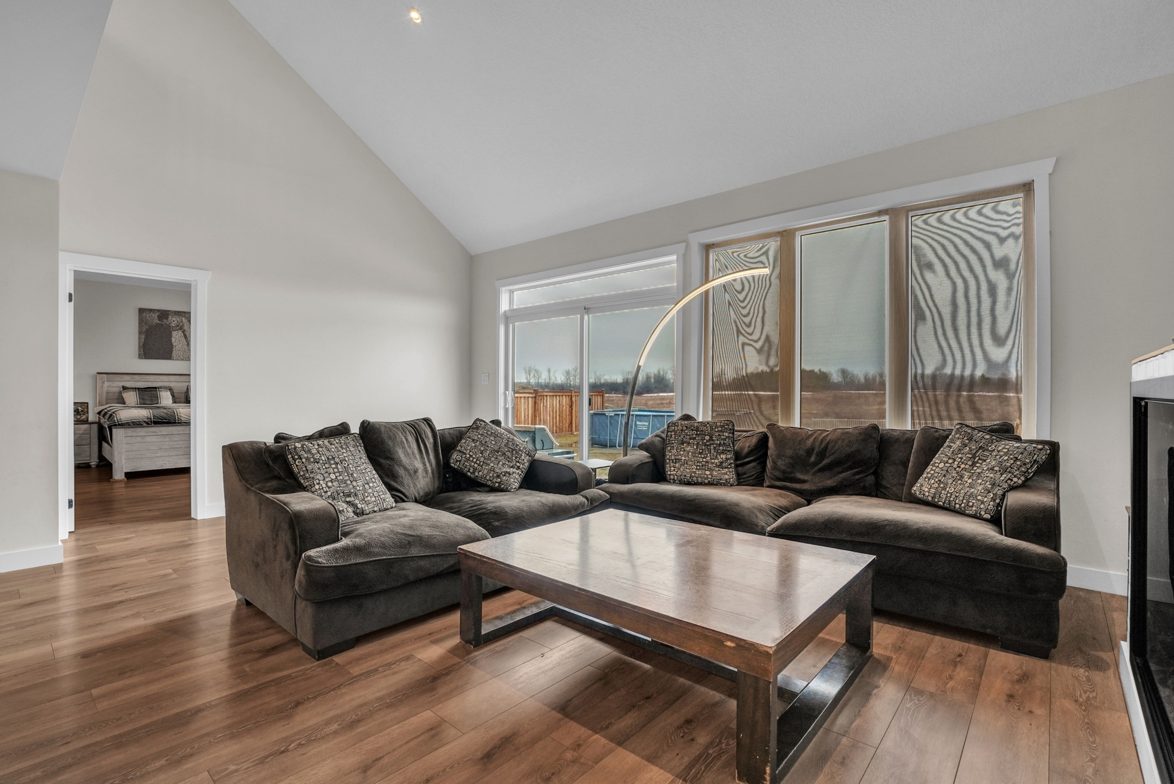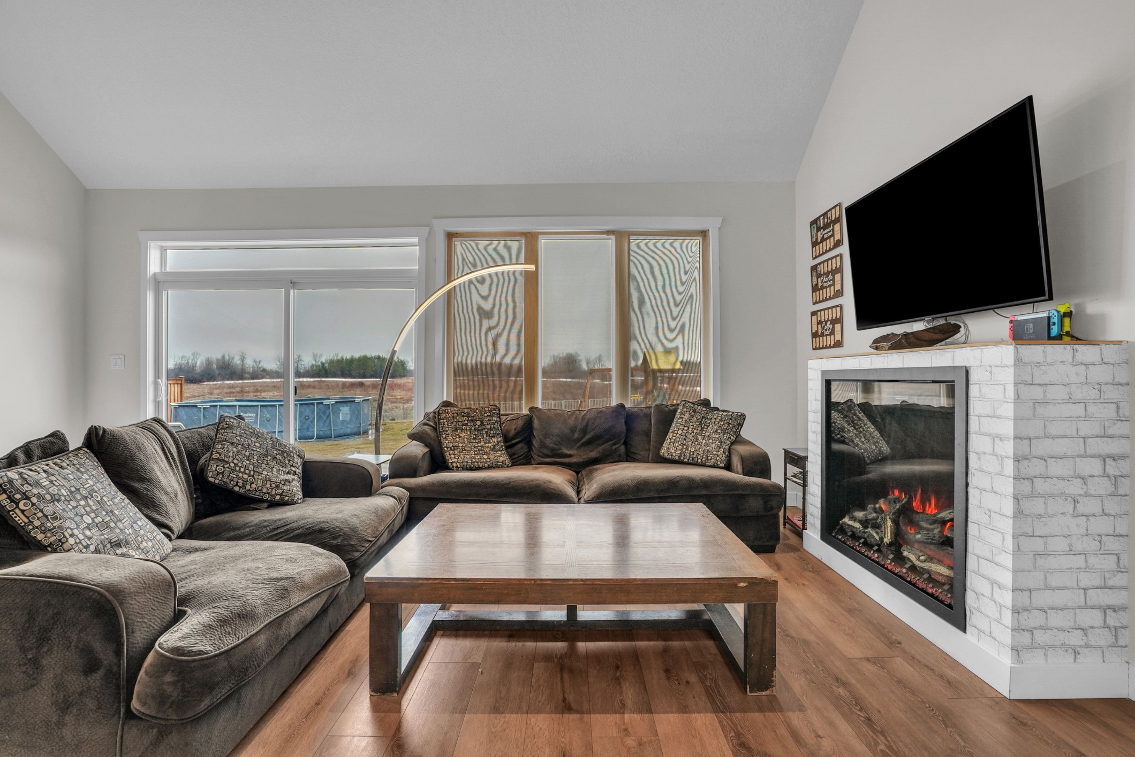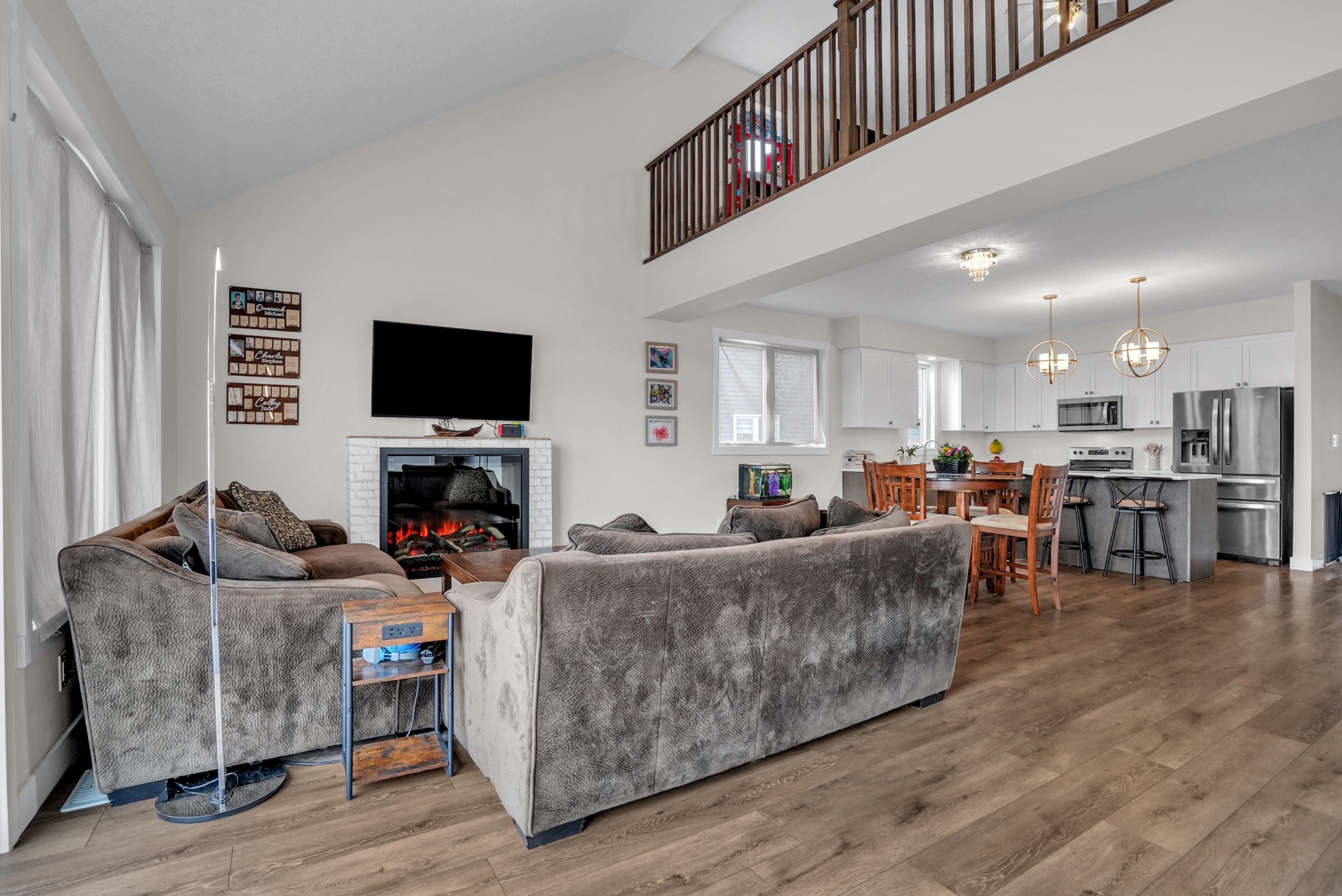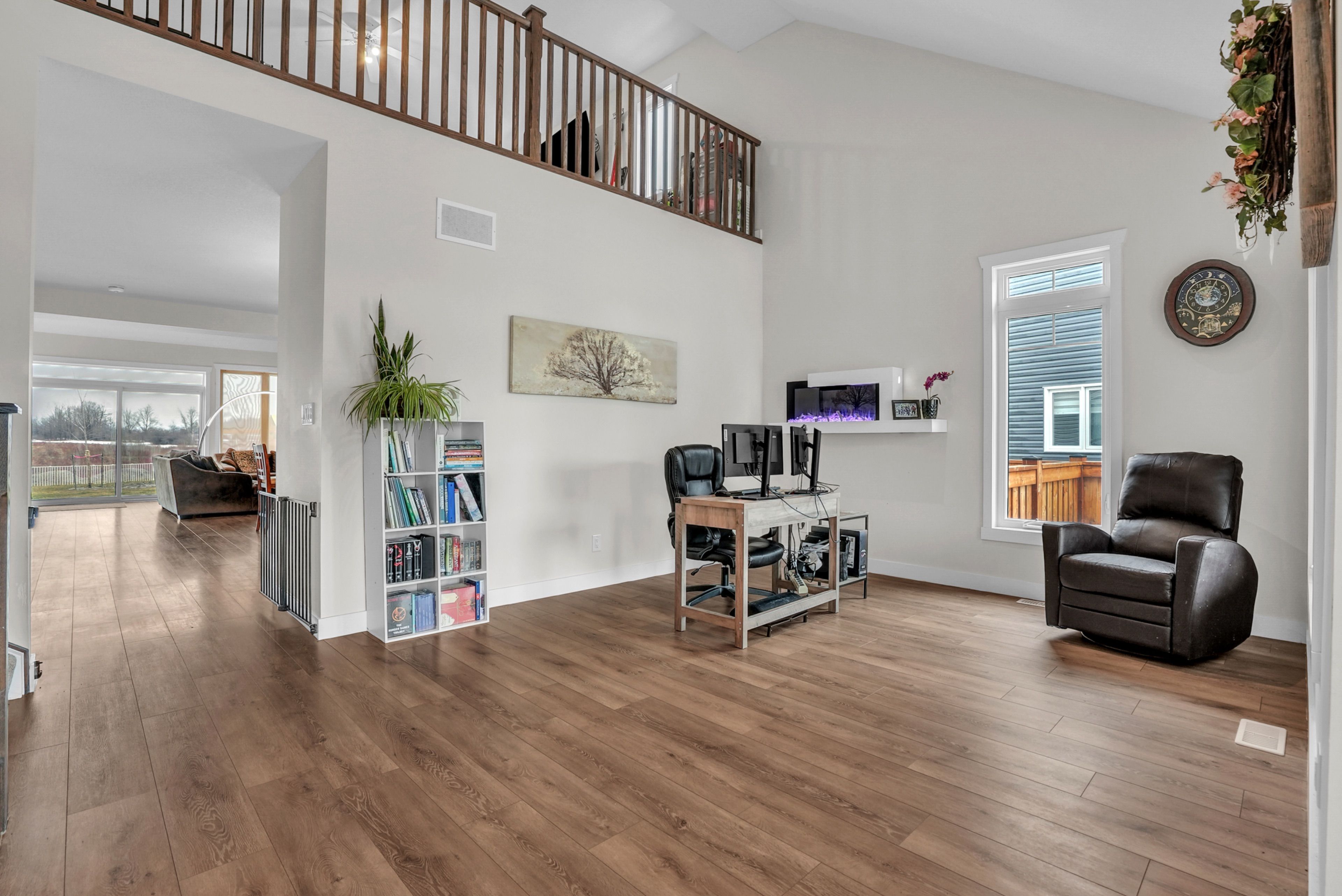 If you've been waiting for something a little different, this (over 2700sqft) 2023 bungaloft by huron creek delivers. Rarely offered and thoughtfully designed. This home blends open concept living with just the right amount of separation for today's families. Step inside to soaring vaulted ceilings that elevate both the front office and the main living areas, filling the home with natural light and creating an airy, inviting feel. The kitchen is the heart of the home complete with quartz counters, two-tone cabinetry, stainless steel appliances, a large island, and a walk-in pantry - flowing seamlessly into the living/dining room featuring an oversized (30") napoleon electric fireplace. Enjoy the ease of main floor living in the spacious primary suite, complete with a walk-in closet and 4-piece ensuite with soaker tub and separate shower, ideal for long-term comfort and convenience. Upstairs, the loft-style second level is ideal for families, offering a large open family room, 2 bedrooms, and a full bath - giving kids or guests their own dedicated space. The unfinished basement offers nearly 1,700 sq ft with large windows and a bathroom rough-in, ready for your vision. Relax and entertain outdoors on this premium lot with newly installed patio, thoughtfully reinforced and ready for a future hot tub. Extras: 9' ceilings, large covered porch w/soffit lights, 200amp panel, main floor laundry w/access to garage, california knockdown ceilings, napoleon heat pump for efficient cooling.
