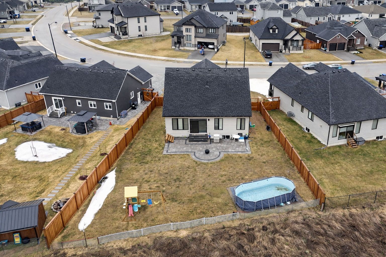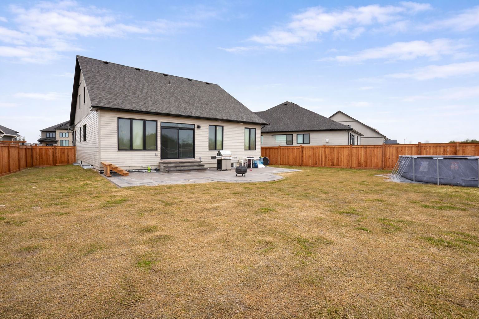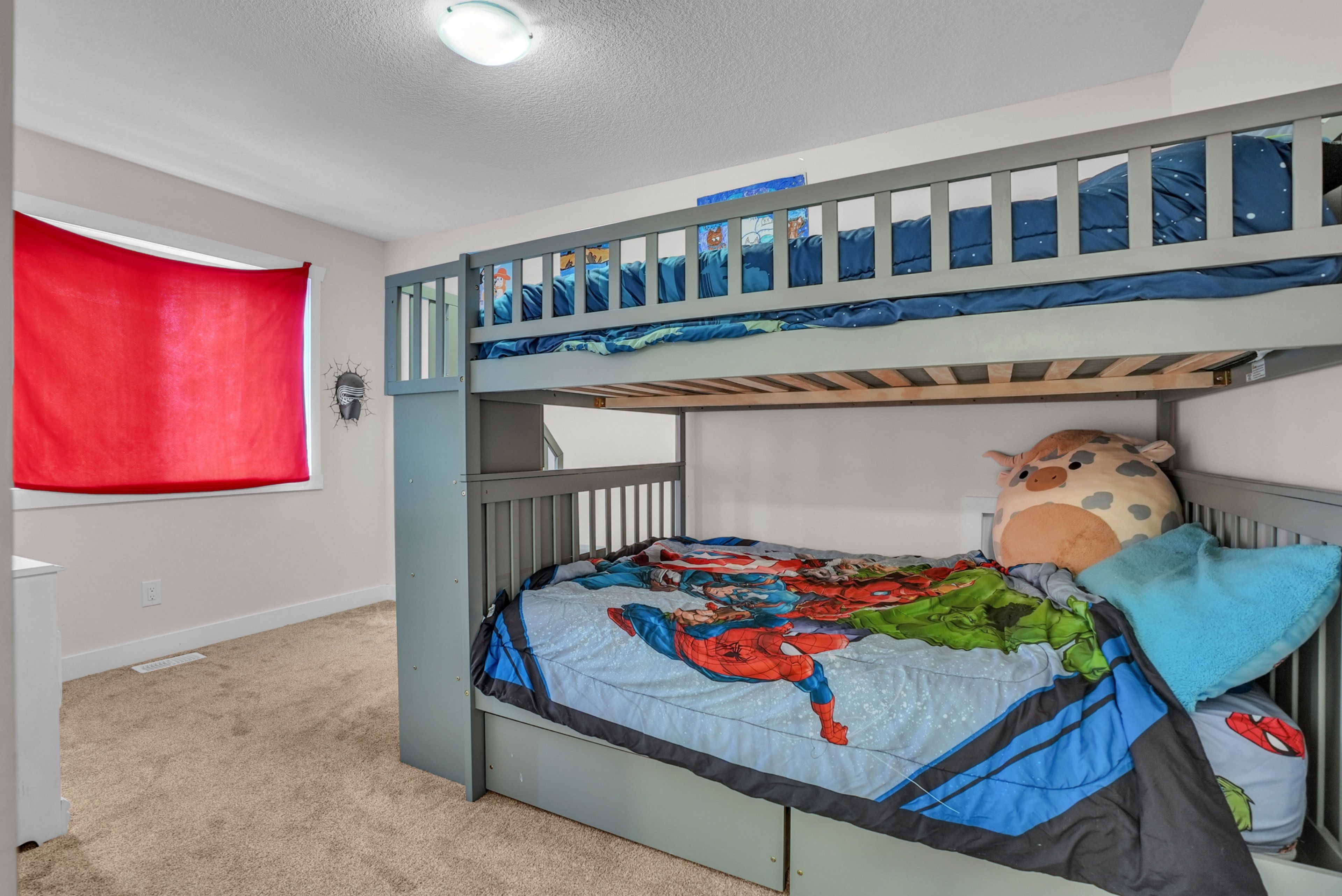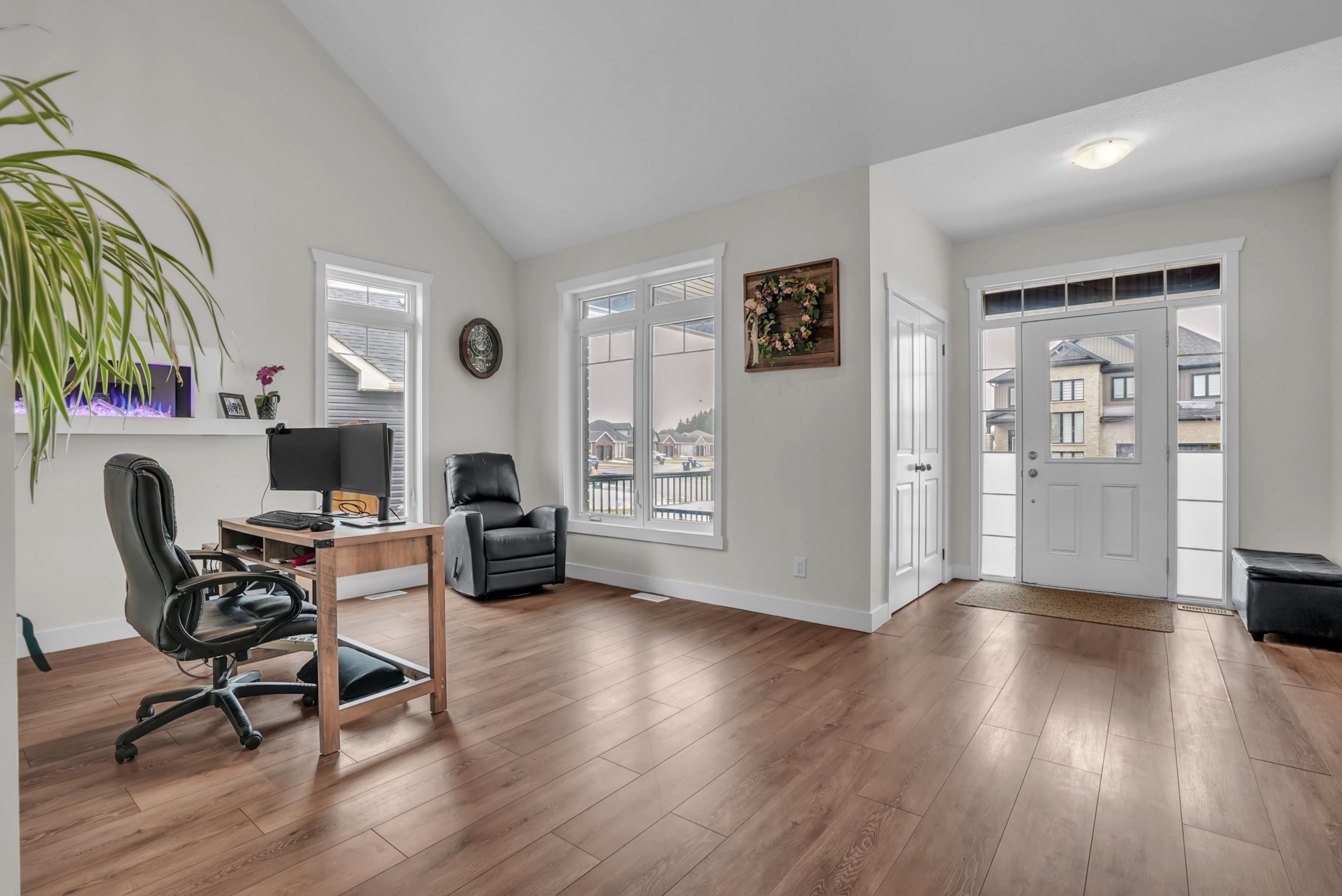 If you've been waiting for something a little different, this (over 2700sqft) 2023 bungaloft by huron creek delivers. Rarely offered and thoughtfully designed. This home blends open concept living with just the right amount of separation for today's families. Step inside to soaring vaulted ceilings that elevate both the front office and the main living areas, filling the home with natural light and creating an airy, inviting feel. The kitchen is the heart of the home complete with quartz counters, two-tone cabinetry, stainless steel appliances, a large island, and a walk-in pantry - flowing seamlessly into the living/dining room featuring an oversized (30") napoleon electric fireplace. Enjoy the ease of main floor living in the spacious primary suite, complete with a walk-in closet and 4-piece ensuite with soaker tub and separate shower, ideal for long-term comfort and convenience. Upstairs, the loft-style second level is ideal for families, offering a large open family room, 2 bedrooms, and a full bath - giving kids or guests their own dedicated space. The unfinished basement offers nearly 1,700 sq ft with large windows and a bathroom rough-in, ready for your vision. Relax and entertain outdoors on this premium lot with newly installed patio, thoughtfully reinforced and ready for a future hot tub. Extras: 9' ceilings, large covered porch w/soffit lights, 200amp panel, main floor laundry w/access to garage, california knockdown ceilings, napoleon heat pump for efficient cooling.