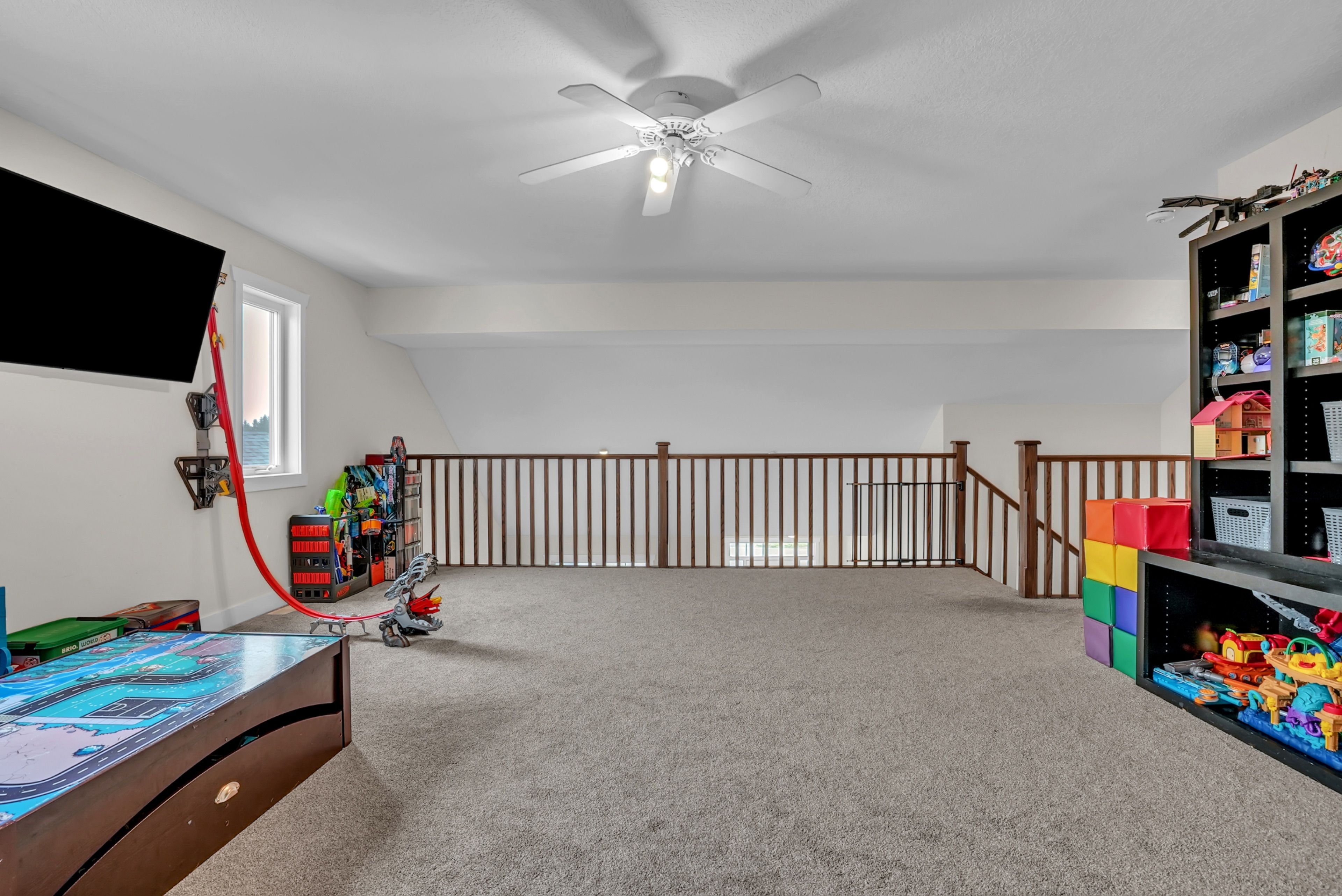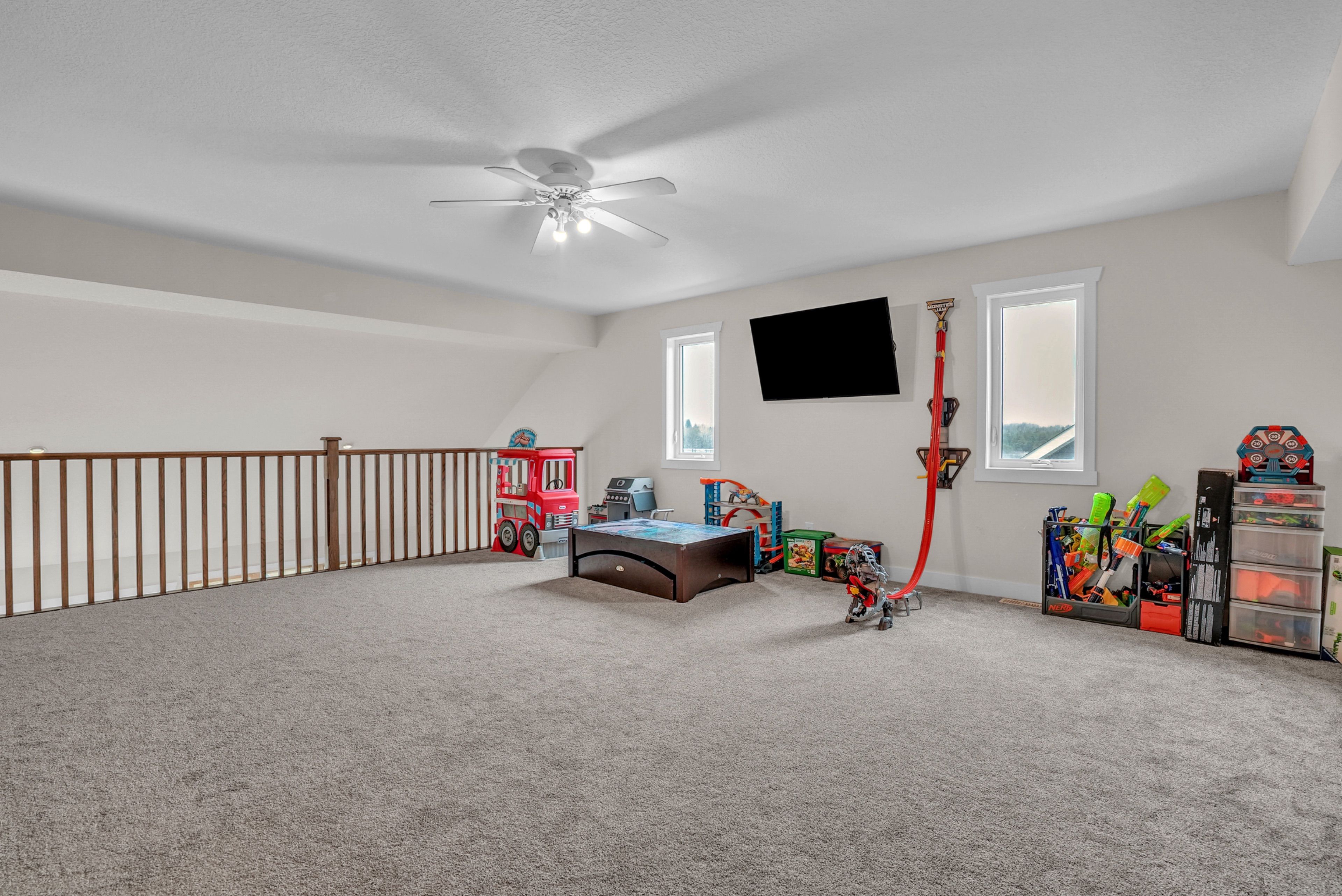 • Loft-style second level offers dedicated space for family or guests.