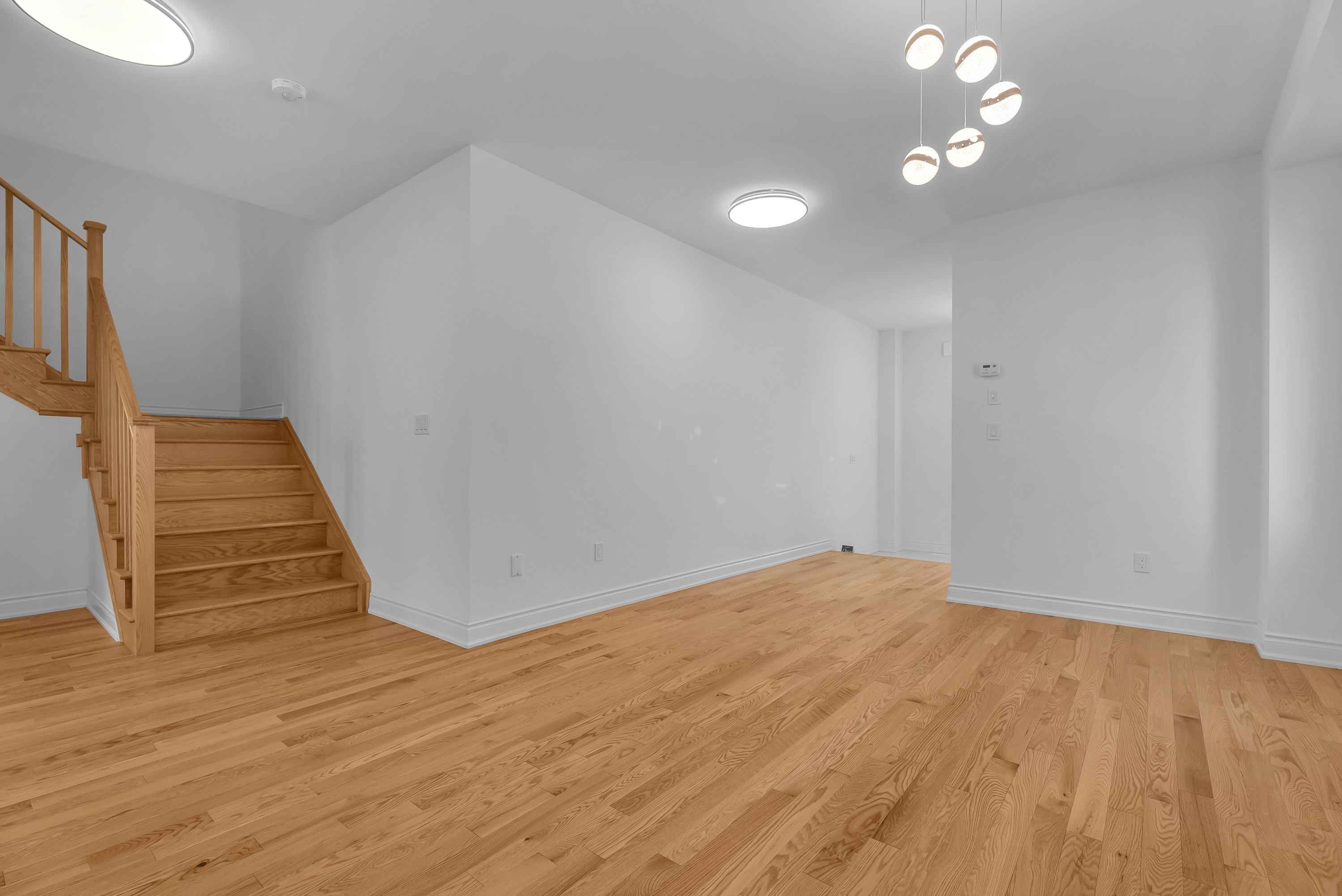 • Bright, open-concept layout with high ceilings and hardwood flooring.