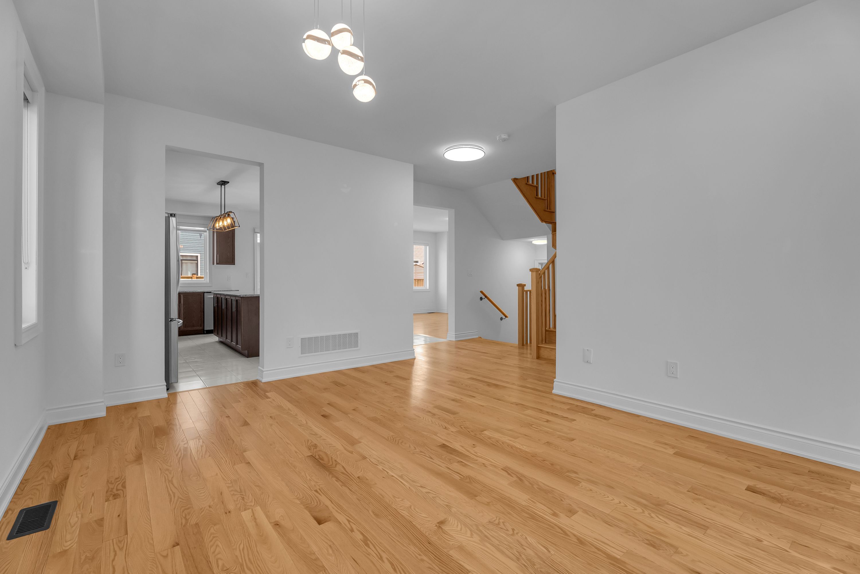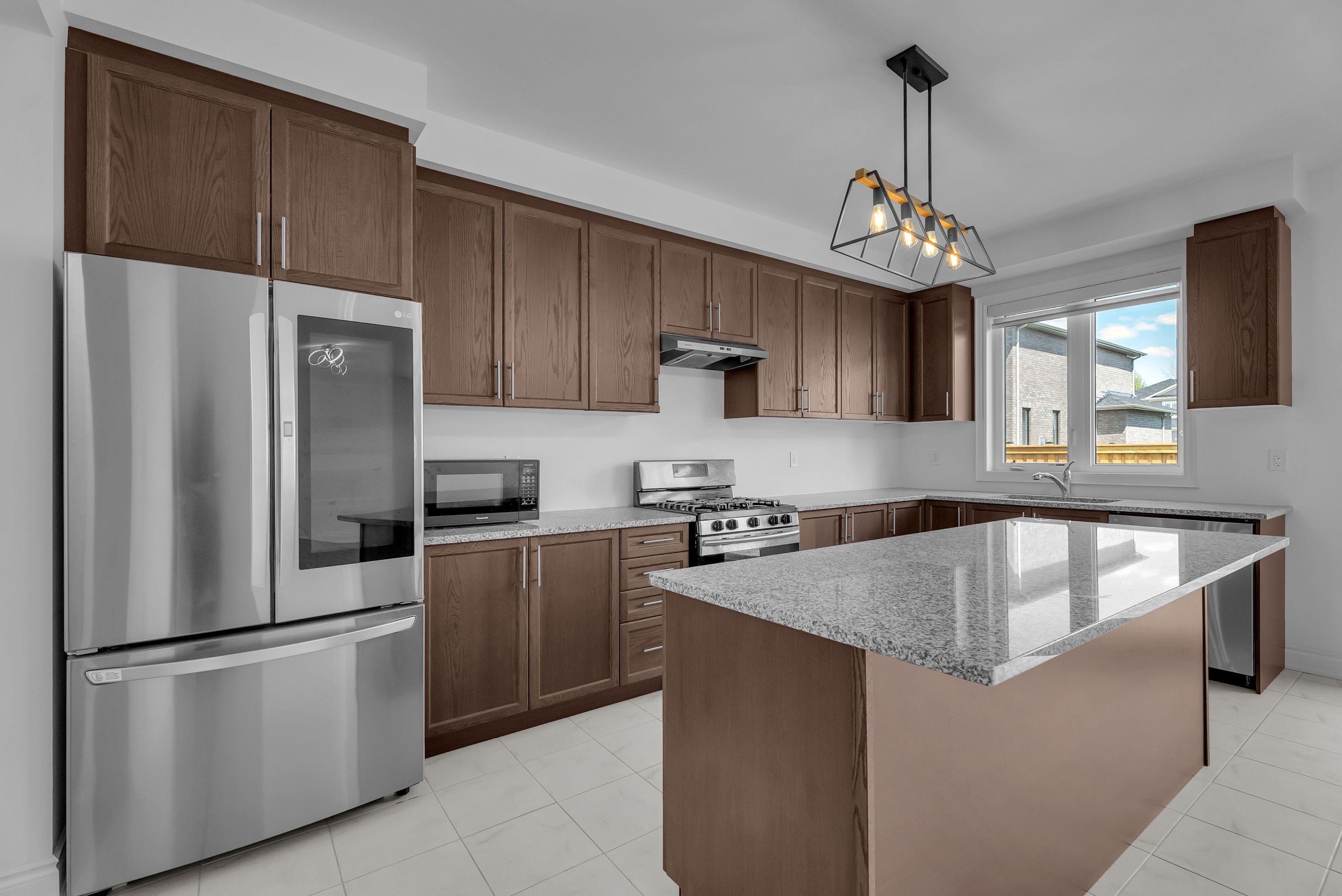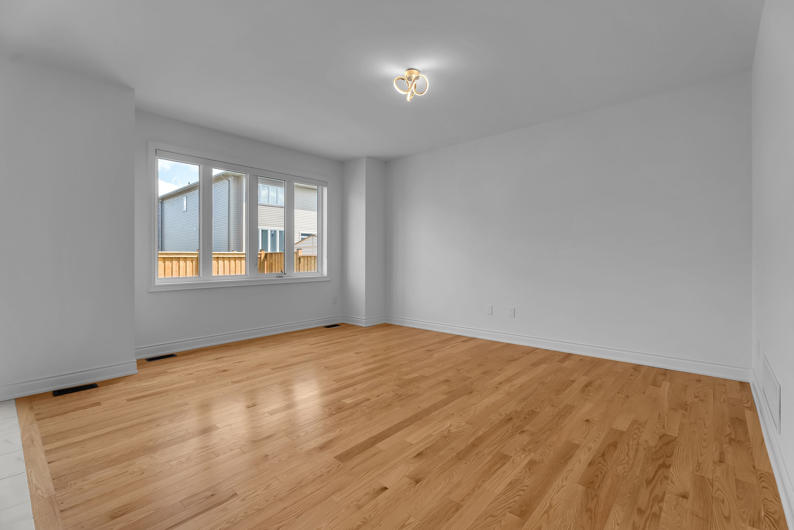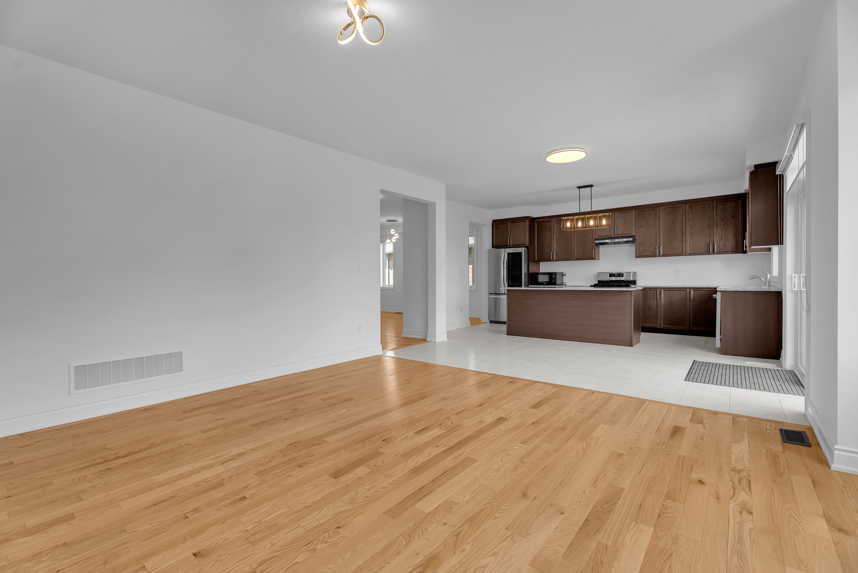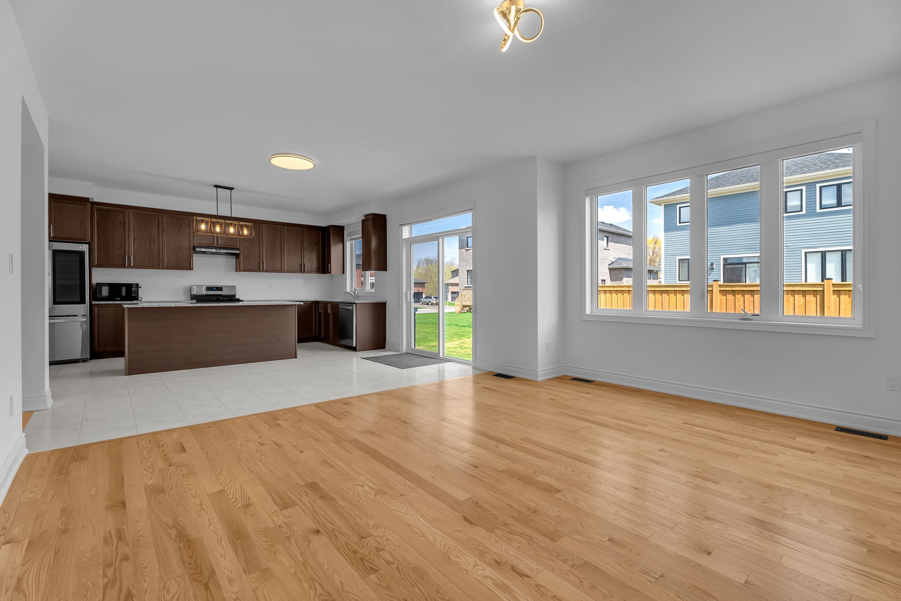 Welcome to this stunning 4-bedroom, 2-storey home built in 2022, ideally nestled in a prestigious newly developed area! This spectacular residence offers a functional and elegant layout, featuring a spacious foyer that opens into a bright, open-concept dining area with soaring ceilings and upgraded engineered hardwood flooring throughout. The modern kitchen showcases upgraded cabinetry, quartz countertops, and a large centre island overlooking the inviting family room - perfect for entertaining or family gatherings. Enjoy seamless indoor-outdoor living with a convenient walkout to the backyard.