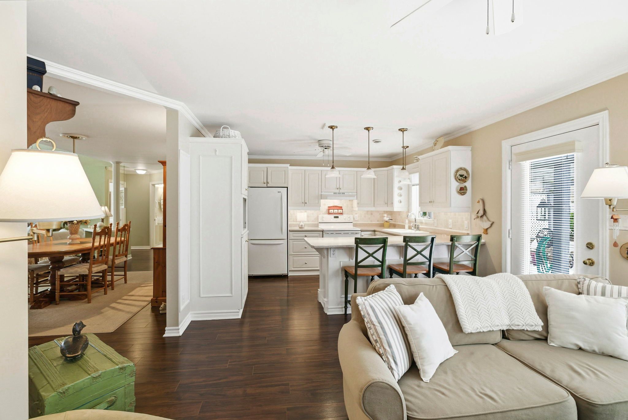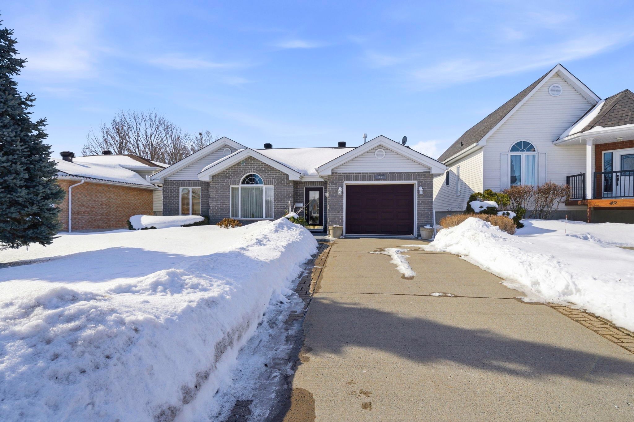 Welcome to 47 barnhart drive in the quaint village of long sault. This beautifully maintained slab-on-grade home is the perfect opportunity for those looking to downsize or enjoy the convenience of single level living. Offering 1,360 sq ft, the home features a bright, functional layout filled with natural light and evident pride of ownership throughout. Nestled in a quiet residential neighbourhood, this property offers comfort, simplicity, and ease of living. Upon entering, you are welcomed into an inviting living room highlighted by cathedral ceilings that enhance the sense of space and light. The adjoining dining area provides an ideal setting for hosting family gatherings or entertaining guests. For more relaxed evenings, the cozy sitting room with a fireplace is located just off the kitchen, creating a warm and comfortable space to unwind. Patio doors lead directly to the backyard where you will find a large pergola overlooking a private, fully fenced and beautifully landscaped yard. Whether enjoying morning coffee, summer barbecues, or tending to your garden, this outdoor space is both peaceful and practical, complete with a garden shed for additional storage. Additional features include in-floor radiant heat for consistent year round comfort, ductless air conditioning, and an attached garage. A convenient workshop and utility room located off the garage includes a shower and wash tub, offering a thoughtful bonus space ideal for hobbies. If you are seeking low maintenance living in a welcoming community, 47 barnhart drive is ready to welcome you home. Click on the multi-media link for virtual tour & floor plan. The seller requires 24 hour irrevocable on all offers.