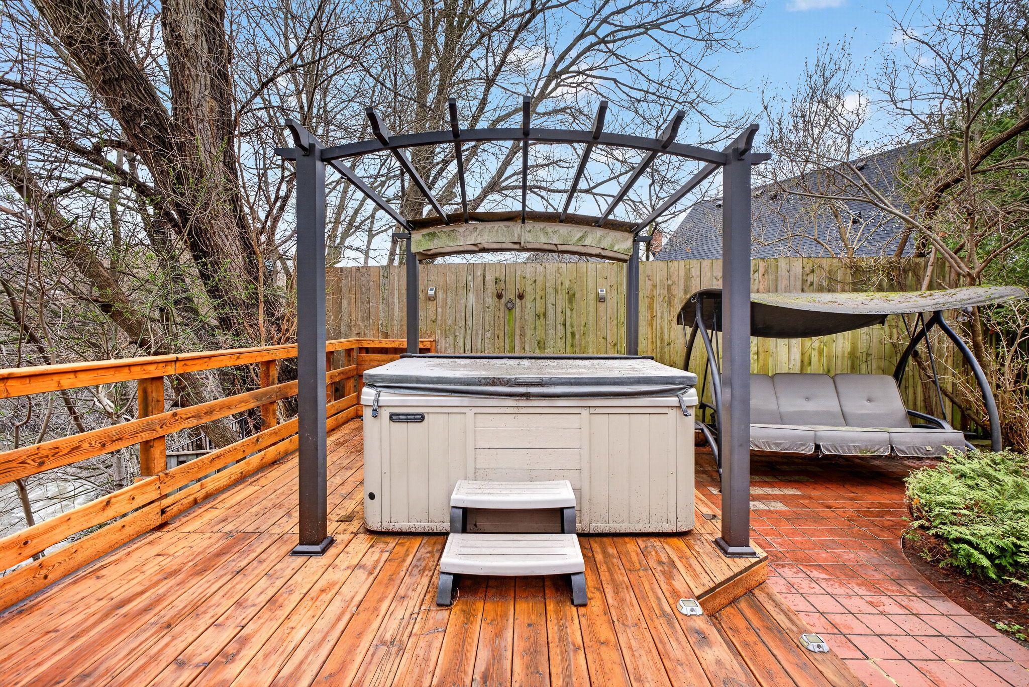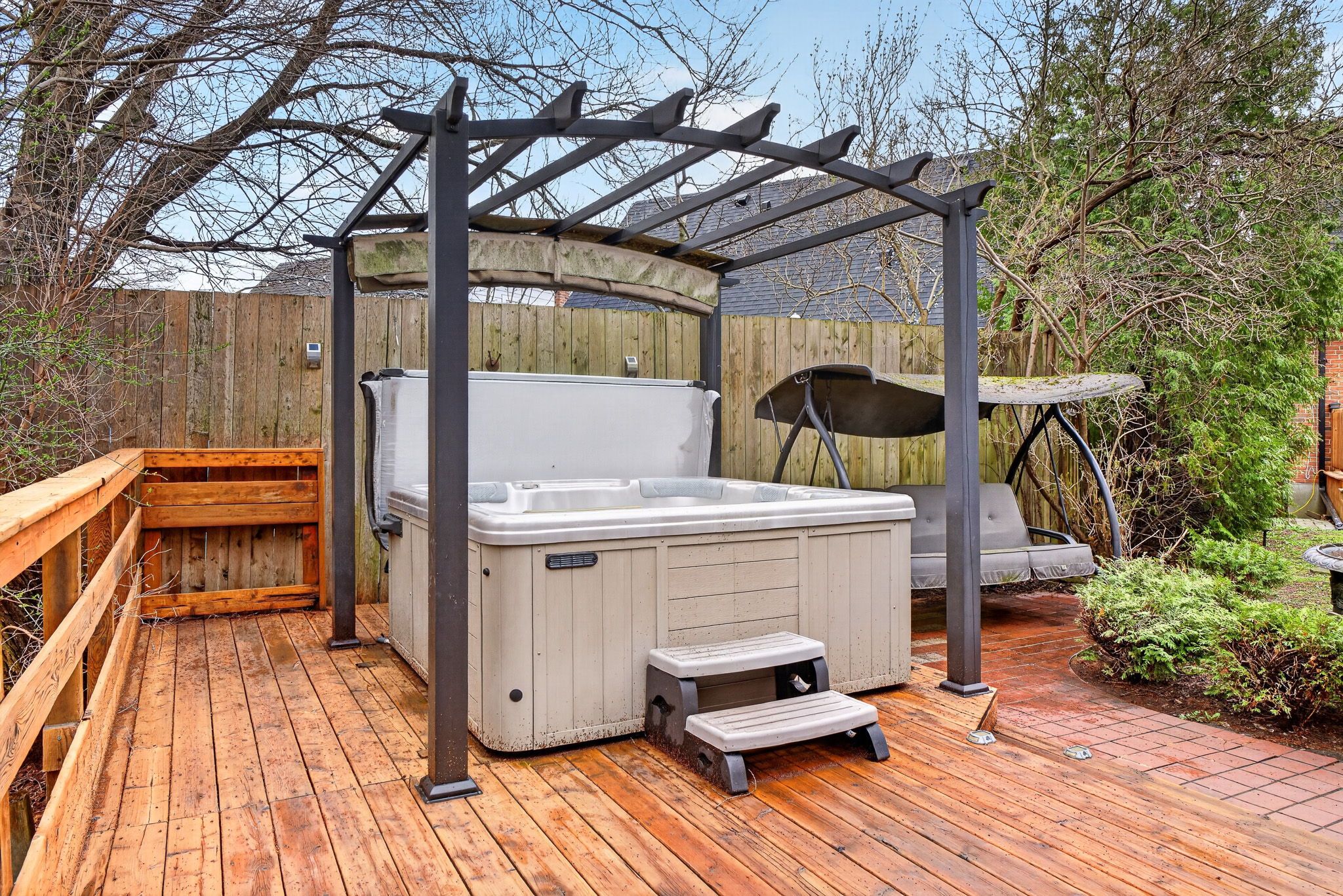 • Fully fenced yard provides privacy and a safe space for pets or kids.