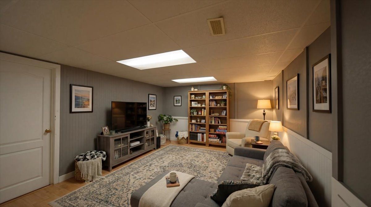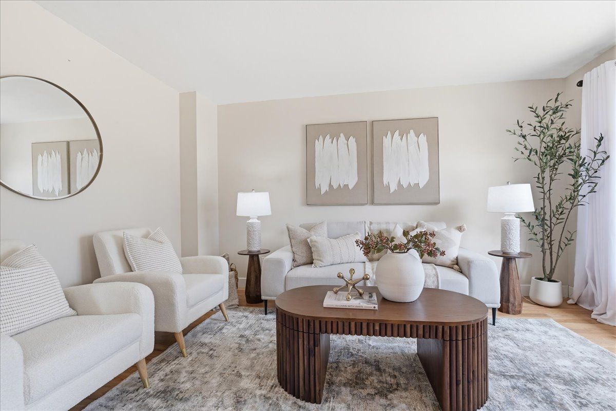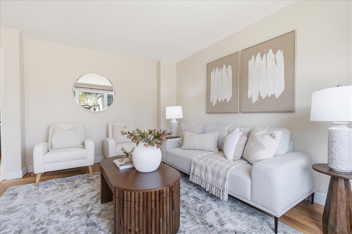 • Bright living room with large bay window for natural light.