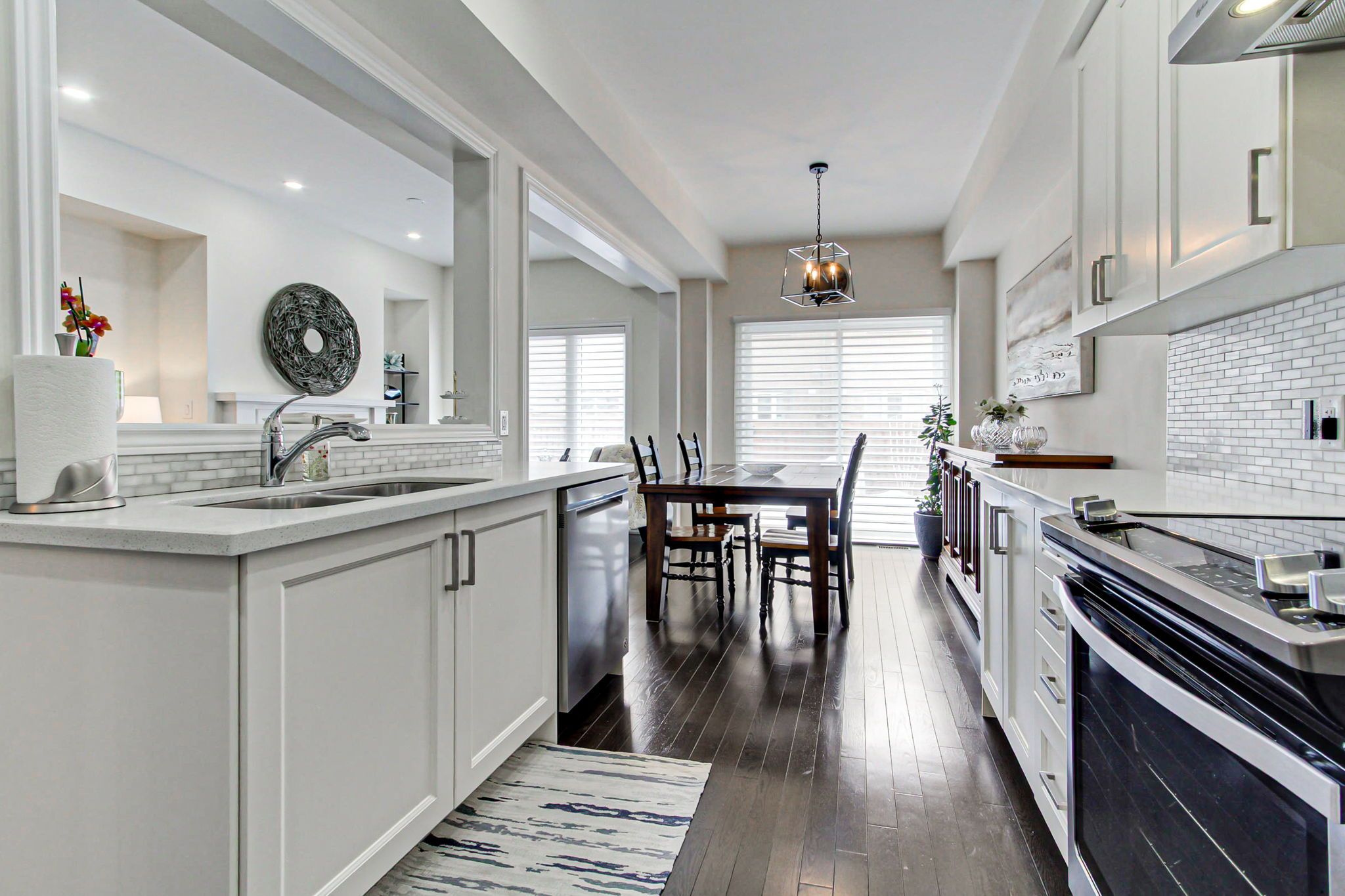 Welcome to this impeccably cared-for 5-year-old, 1847 sq. Ft. Freehold townhouse in the thriving, family-friendly community of bradford west gwillimbury. From the moment you step inside, the pride of ownership is unmistakable. Thoughtfully designed to balance modern style with everyday practicality, this home delivers quality finishes, tasteful upgrades, and a layout perfectly suited for today's busy lifestyle. The bright, open-concept main floor seamlessly connects the kitchen, dining, and living spaces-ideal for both relaxed family living and effortless entertaining. At the heart of the home is a stunning white kitchen featuring sleek quartz countertops, a spacious island, and abundant cabinetry. Whether you're preparing a casual meal or hosting friends, this space offers both beauty and function. The dining area flows naturally into the inviting living room, where a cozy gas fireplace anchors the space. Large windows fill the room with natural light, creating a warm and welcoming atmosphere throughout. Upstairs, you'll find three generously sized bedrooms, including a serene primary retreat complete with a walk-in closet and a luxurious 5-piece ensuite. Unwind in the deep soaker tub or enjoy the convenience of a separate glass-enclosed shower. The additional bedrooms are versatile and spacious-perfect for children, guests, or a home office-and are complemented by a well-appointed main bathroom. Step outside to a professionally landscaped backyard designed for both style and low maintenance. Elegant interlocking stone provides a functional outdoor living space, perfect for relaxing or entertaining. Conveniently located close to schools, parks, shopping, and transit, this home offers the perfect blend of comfort, convenience, and community. Don't miss your chance to make it yours.