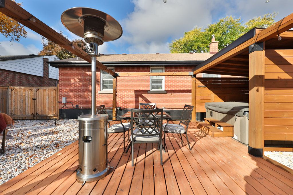 • Access to a backyard featuring a hot tub, fire pit, and deck.